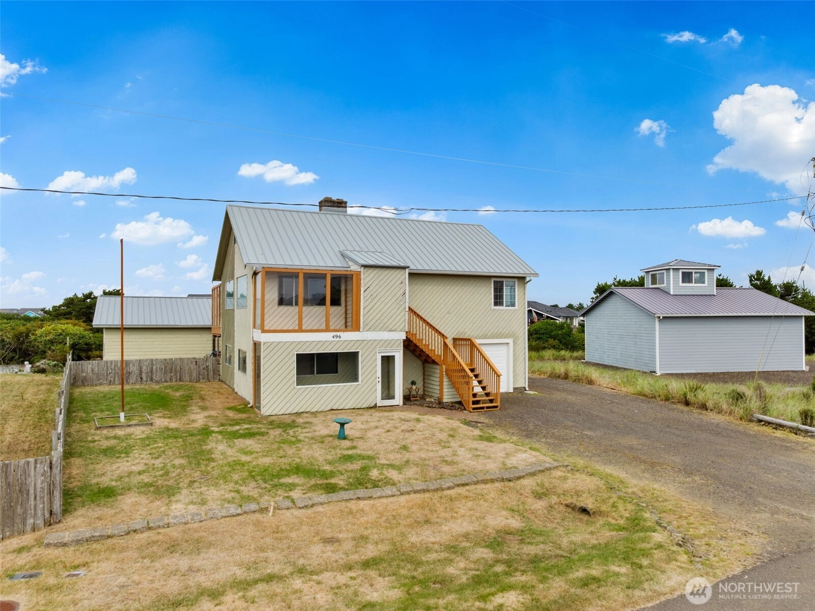 Multigenerational/ Investor Alert Opportunity to have two rentals in Ocean Shores. Home is surrounded by large windows w/ plenty of natural Light. 3 Bedroom 1.75 Bath w/ a detatched 4 car garage/shop 1200 sq ft. Large living room with a partial view of ocean & a wood burnin fireplace .Kitchen with dining area & extra bar seating. Attic is 12 feet wide by 36 feet the length of the house! Lower level has a separate entrance with a living room,bedroom, bath, Kitchen & 1 car attatched garage. Walking distance to the Beach & smell the fresh air! Plenty of Bicycle and ocean trails, with a community clubhouse, gym, golf, indoor & outdoor pool. Great shops & restaurants close by! A Bit of TLC will make this place shine!