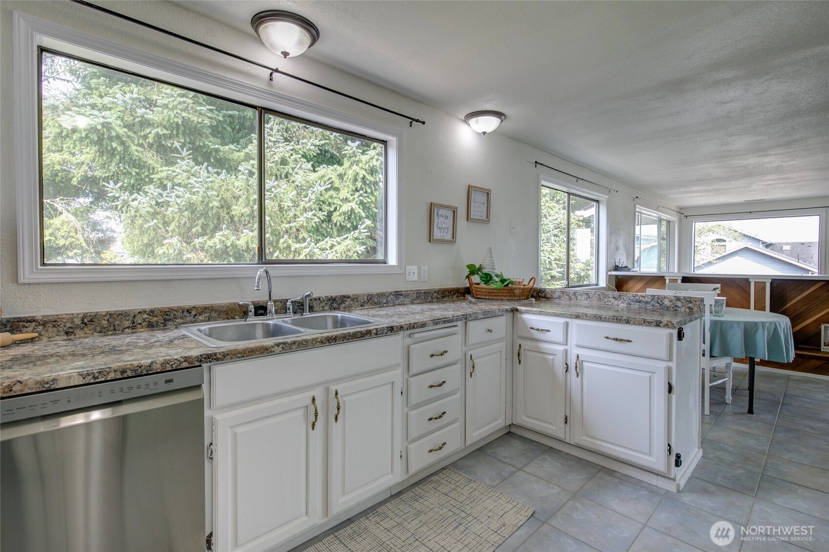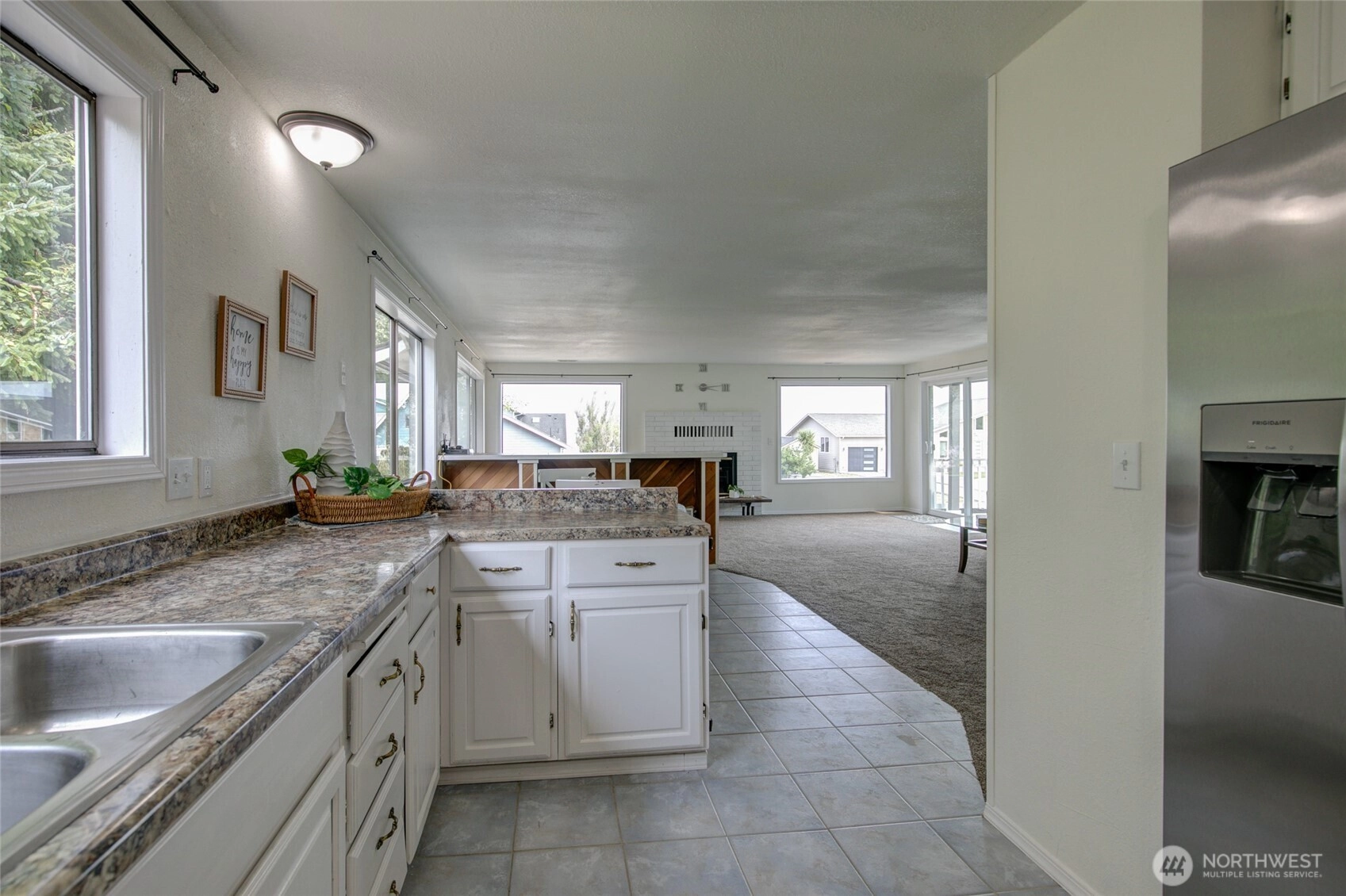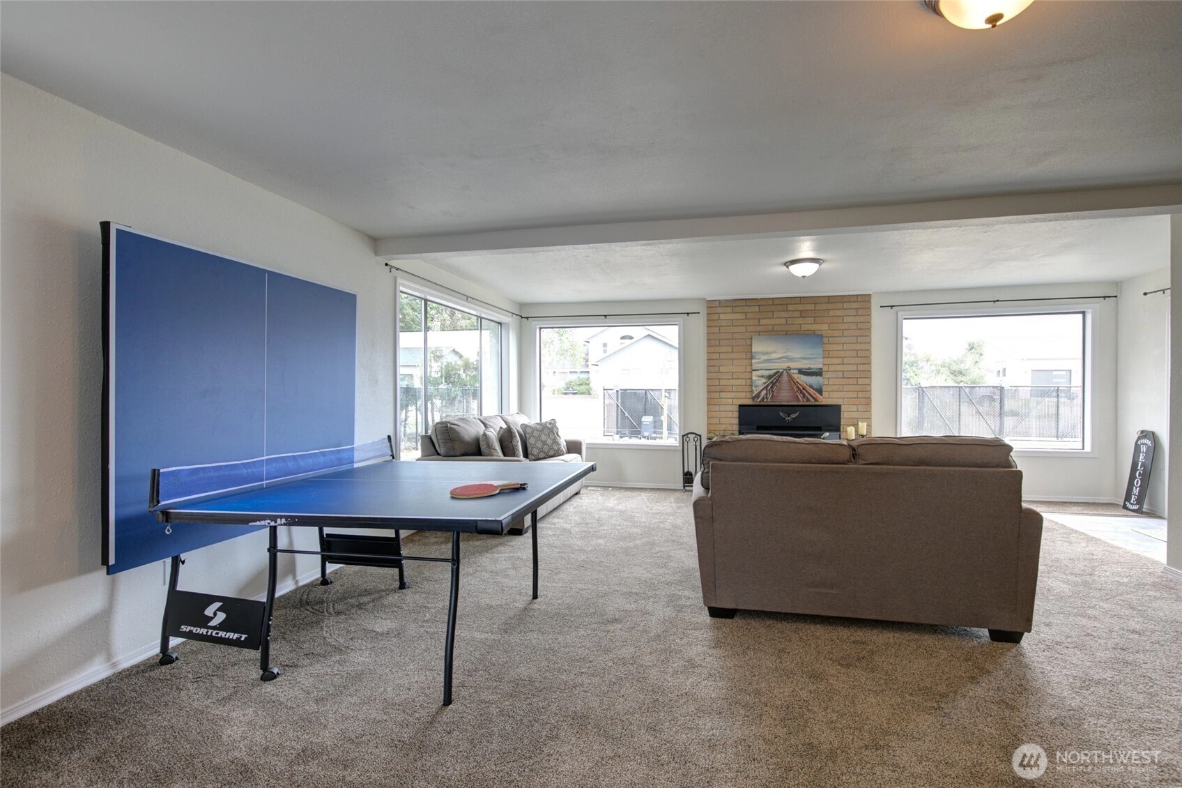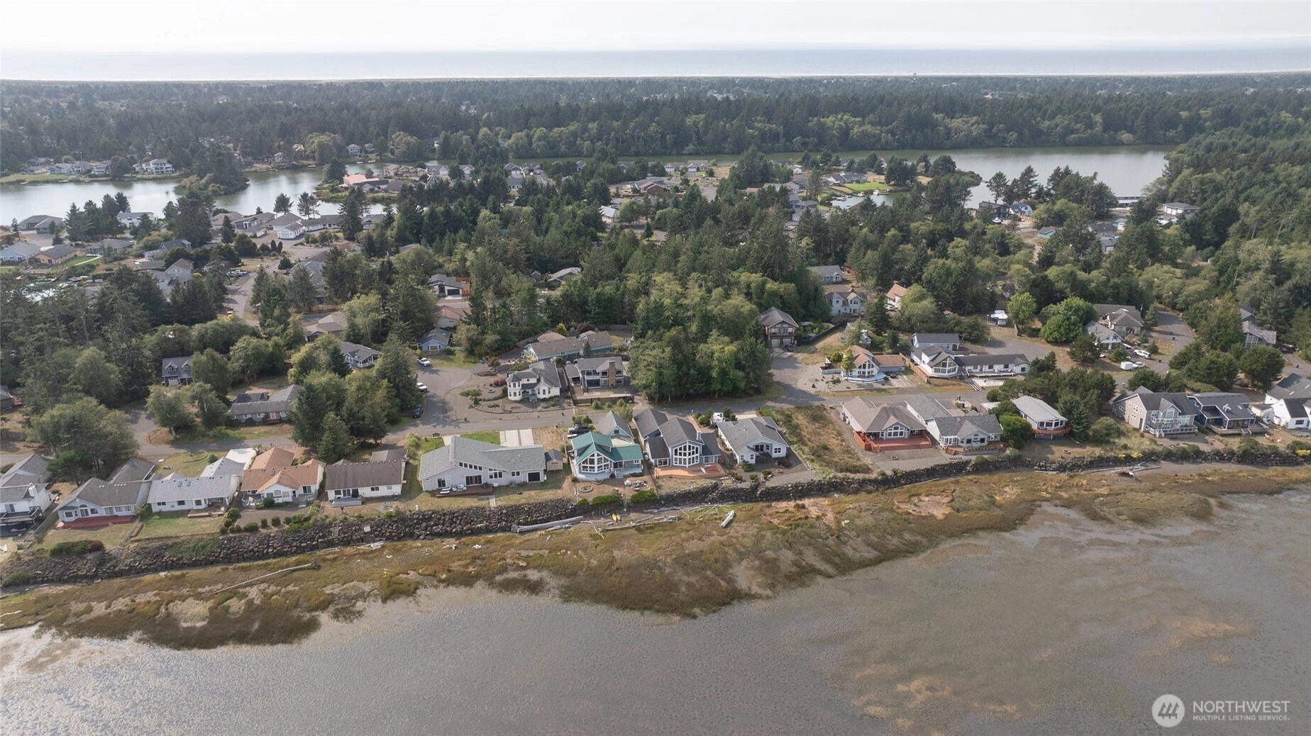 Sellers offering $5000 buyer closing cost credit-W/full price offer. A very unique home in Ocean Shores offering 2,508 sq ft, partial bay views, and an open layout filled with natural light from very large windows throughout. The floor plan includes a huge downstairs rec room with two bedrooms on the lower level. Upstairs features the main bedroom, an additional bedroom, and a bar—ideal for entertaining. Outdoor spaces include upper and lower decks, a firepit and entertainment area, and a fully fenced yard with electric gate. Updated with newer paint inside and out, the property also provides a massive amount of parking, including RV space and a two-car garage, with low-maintenance rock landscaping.