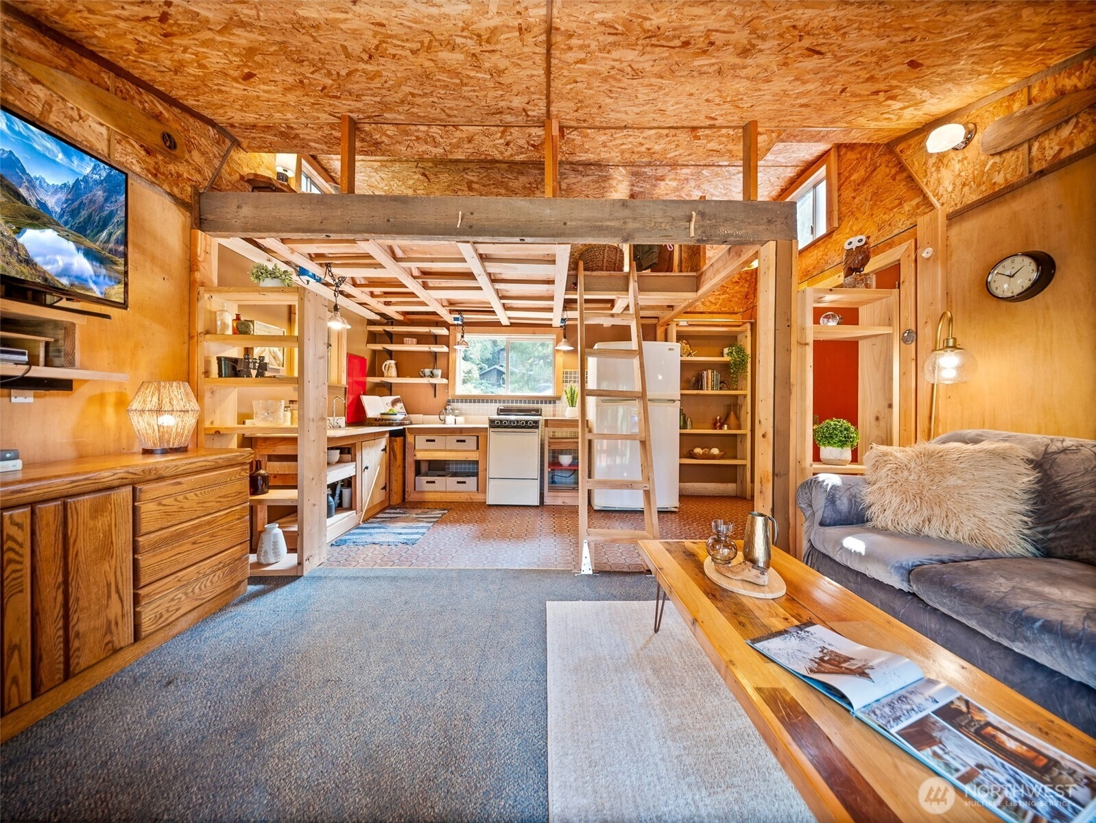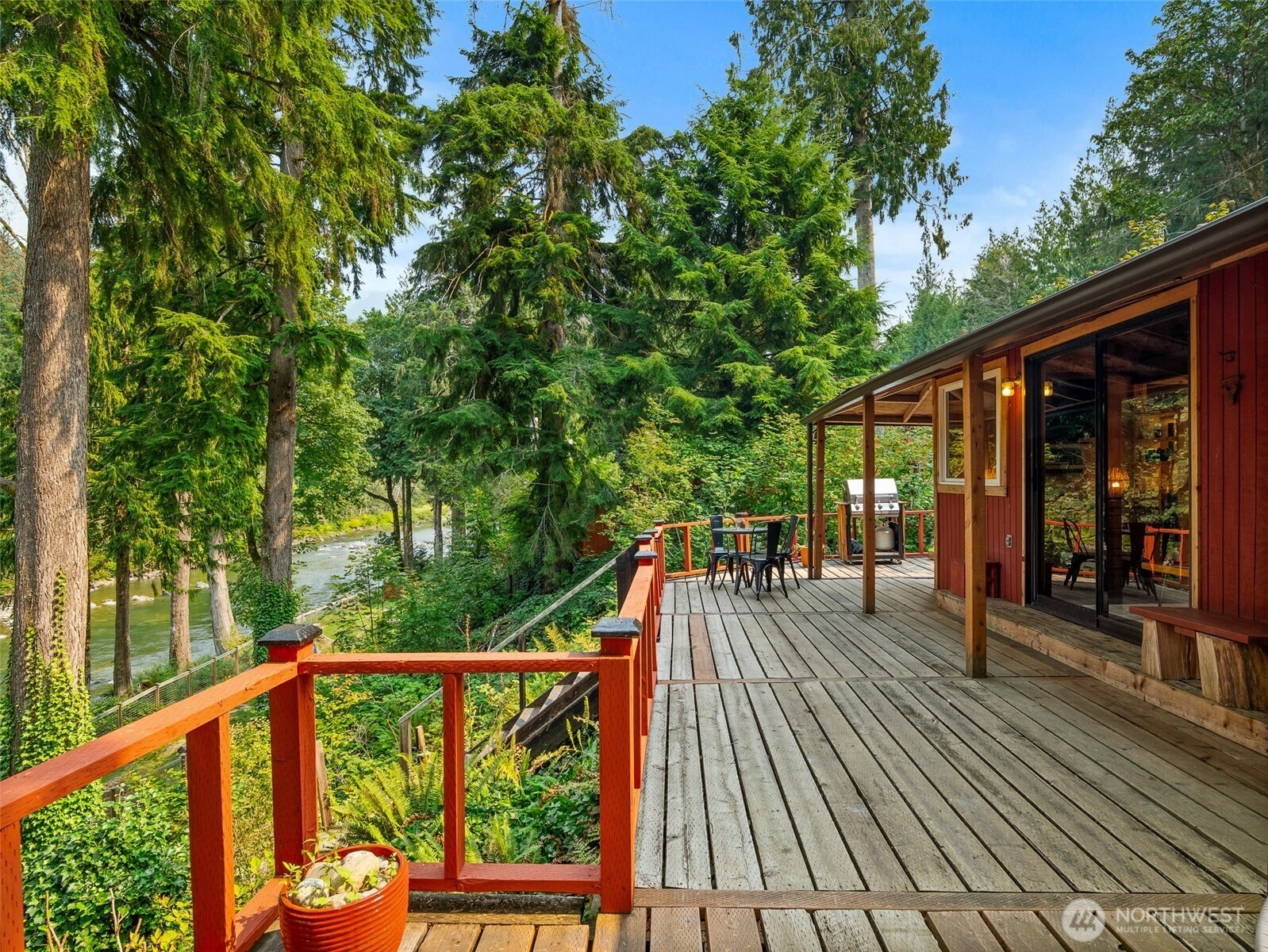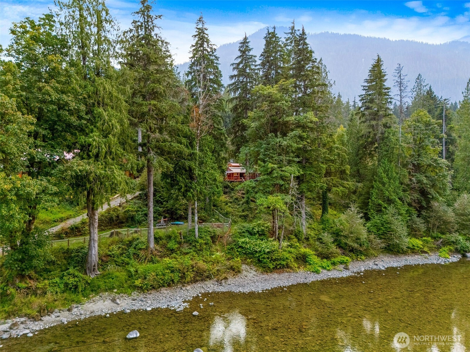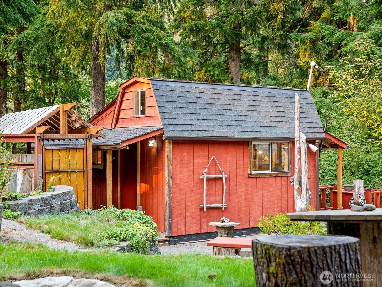 SELLER FINANCING!! Your Skykomish Riverfront retreat awaits! Just outside Index, in a gated community, this rustic tiny cabin is the opportunity you’ve been waiting for. Expansive wraparound decks showcase serene views, while the charmingly landscaped terraced property offers space to relax and entertain. Inside, the cozy cabin features a sleeping loft and mini-kitchen—perfect as a ready-to-enjoy getaway or a canvas for creating your luxe tiny home Airbnb. Multiple outbuildings with outhouse and water delivery storage tank complete the off-grid set-up. With 50+ feet of Skykomish River frontage, you’ll enjoy swimming, tubing, and fishing right from your doorstep—all just 30 minutes from Stevens Pass in the heart of the Cascades Sky Valley!