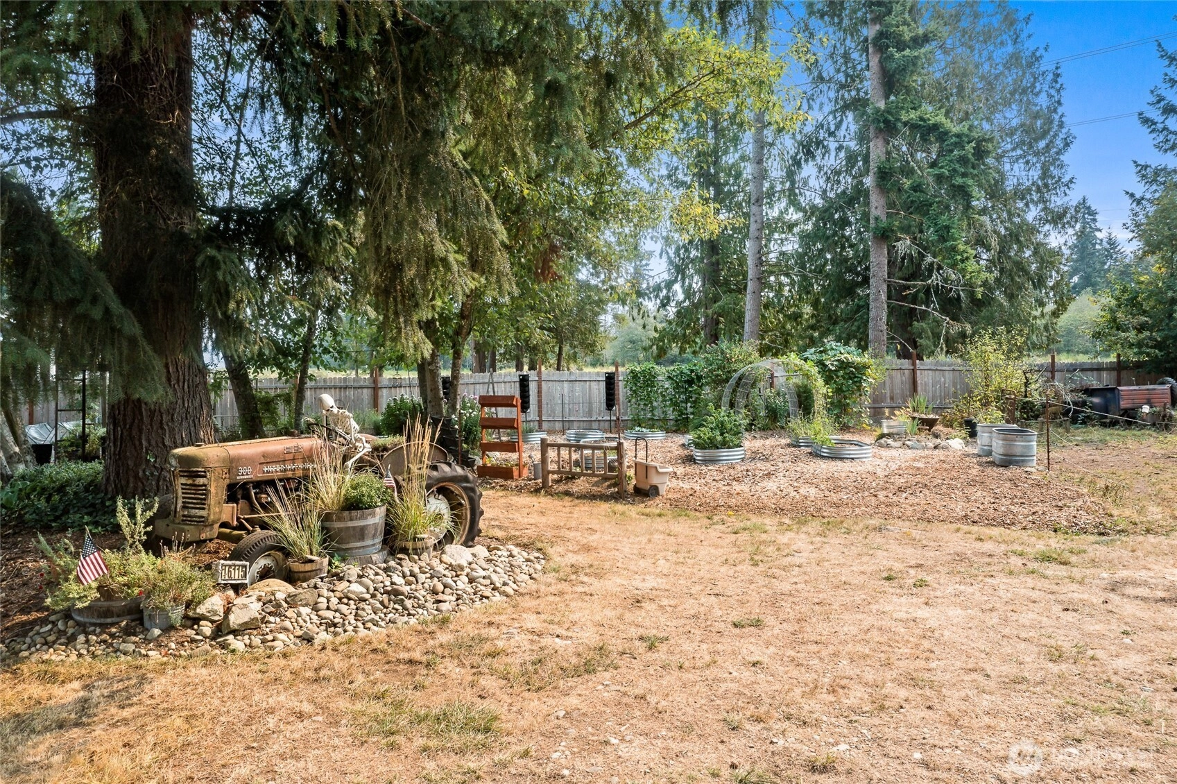 Experience refined country living on this private 5-acres. The updated home features a designer kitchen w/ custom cabinetry, granite counters, premium appliances, new flooring, efficient mini-split, and a 46x20 entertaining deck with views of Mount Rainier. Outdoors you’ll find landscaped grounds, gardens, orchard with apples, pears, plums, figs, a thriving raspberry patch, greenhouse, chicken coops, two-stall barn, and covered kennel—perfect for hobby farm living. The 40x66 shop is a showpiece with three oversized bays (including 14’ RV door), 220V power, RV hookups, a 20x40 multipurpose room for your ADU ideas, and expansive storage. A rare opportunity to own a property combining privacy, beauty, and functionality.