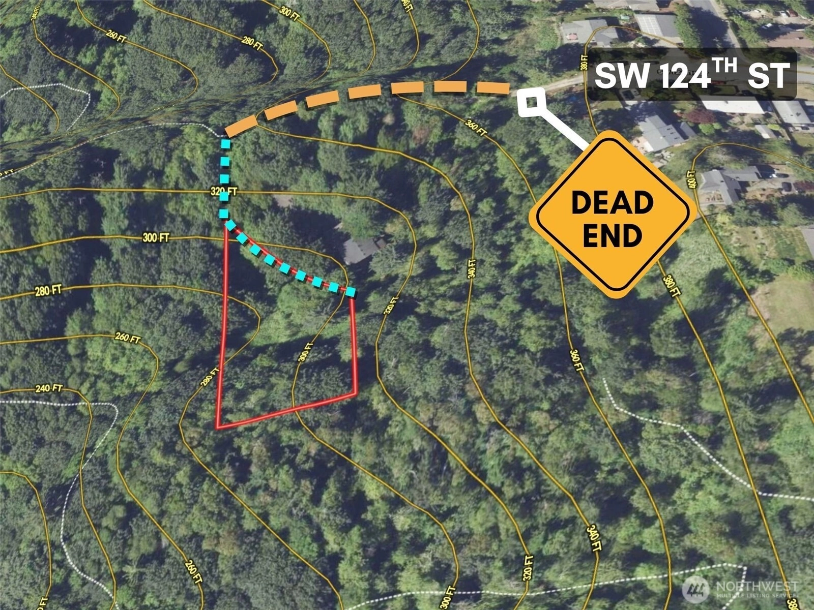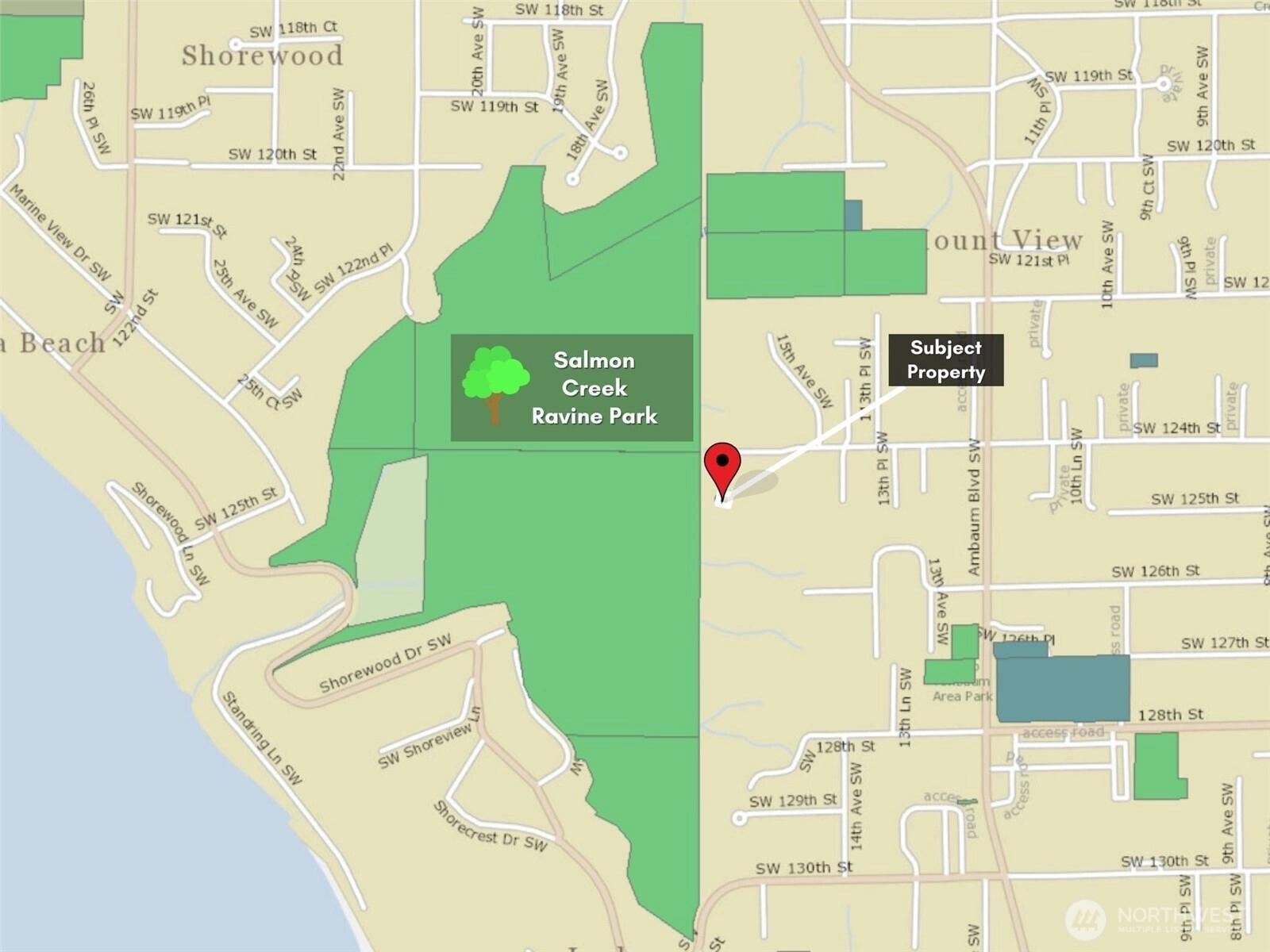 0.58-acre lot in the City of Burien next to Salmon Creek Ravine Park. Geotech report complete showing property is buildable on the NW portion. An existing driveway is in place but currently overgrown. Located at the end of a dead-end road with public water, sewer, and electric available in the street. The neighborhood features a blend of mixed-age homes, including new construction selling well over a million dollars. Enjoy peek-a-boo views of the Sound and the Olympic Mountains as you drive in. The bordering park offers scenic hiking trails and a natural privacy buffer. While this property isn't the easiest to develop, it’s in a desirable area and priced accordingly. Come check it out!