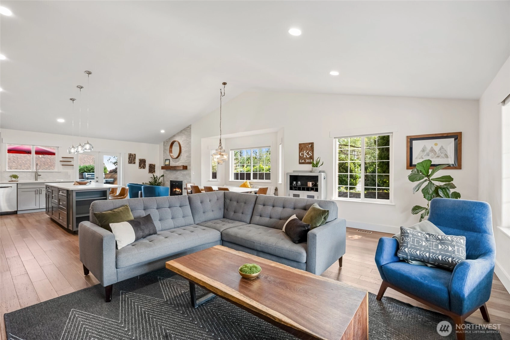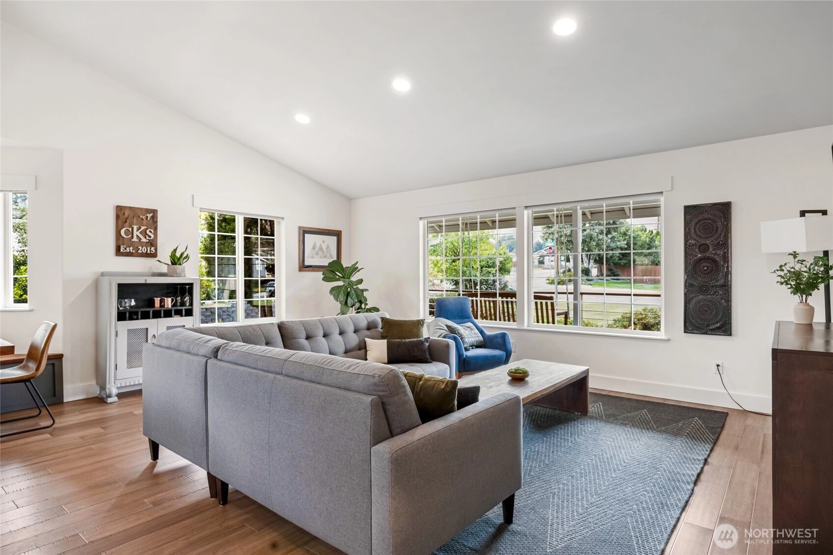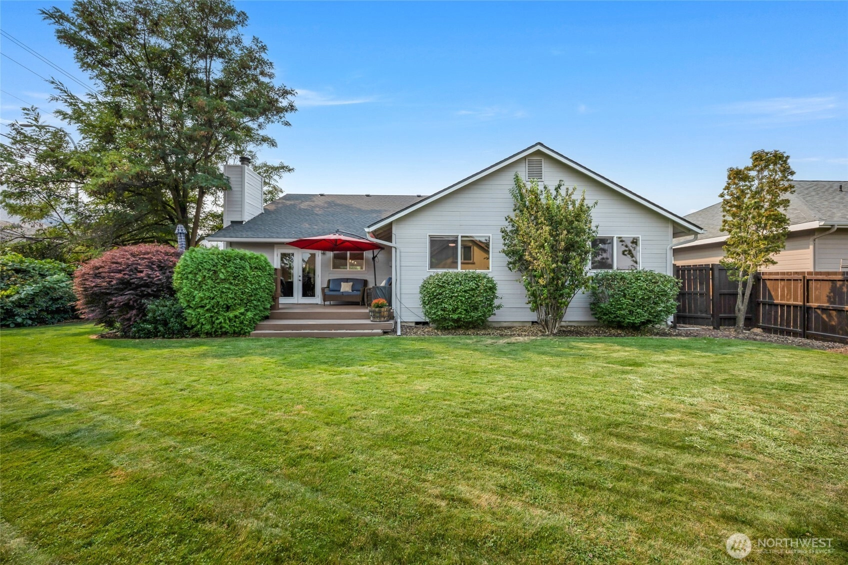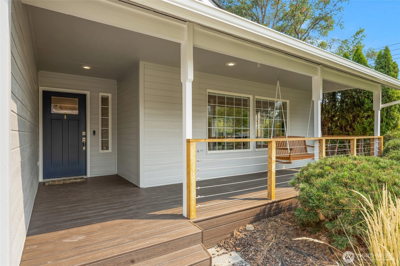 Style and function come together in this single-level 3 bed, 2 bath home with thoughtful details at every turn. The newly remodeled open kitchen boasts a large island, vaulted ceiling, and a cozy sitting area with a gas fireplace. The open floor plan can host a crowd, flowing easily through double doors to the back deck. Creative storage solutions are expertly integrated - so this home lives bigger than its square footage. The new flooring (bamboo plank), roof, exterior paint, and newer HVAC and hot water tank, make this home move in ready. Relax on the charming front porch swing or enjoy the fenced level back yard with shade trees. The garage does double duty with a custom-built workbench and storage. Wen Rec irrigation water.