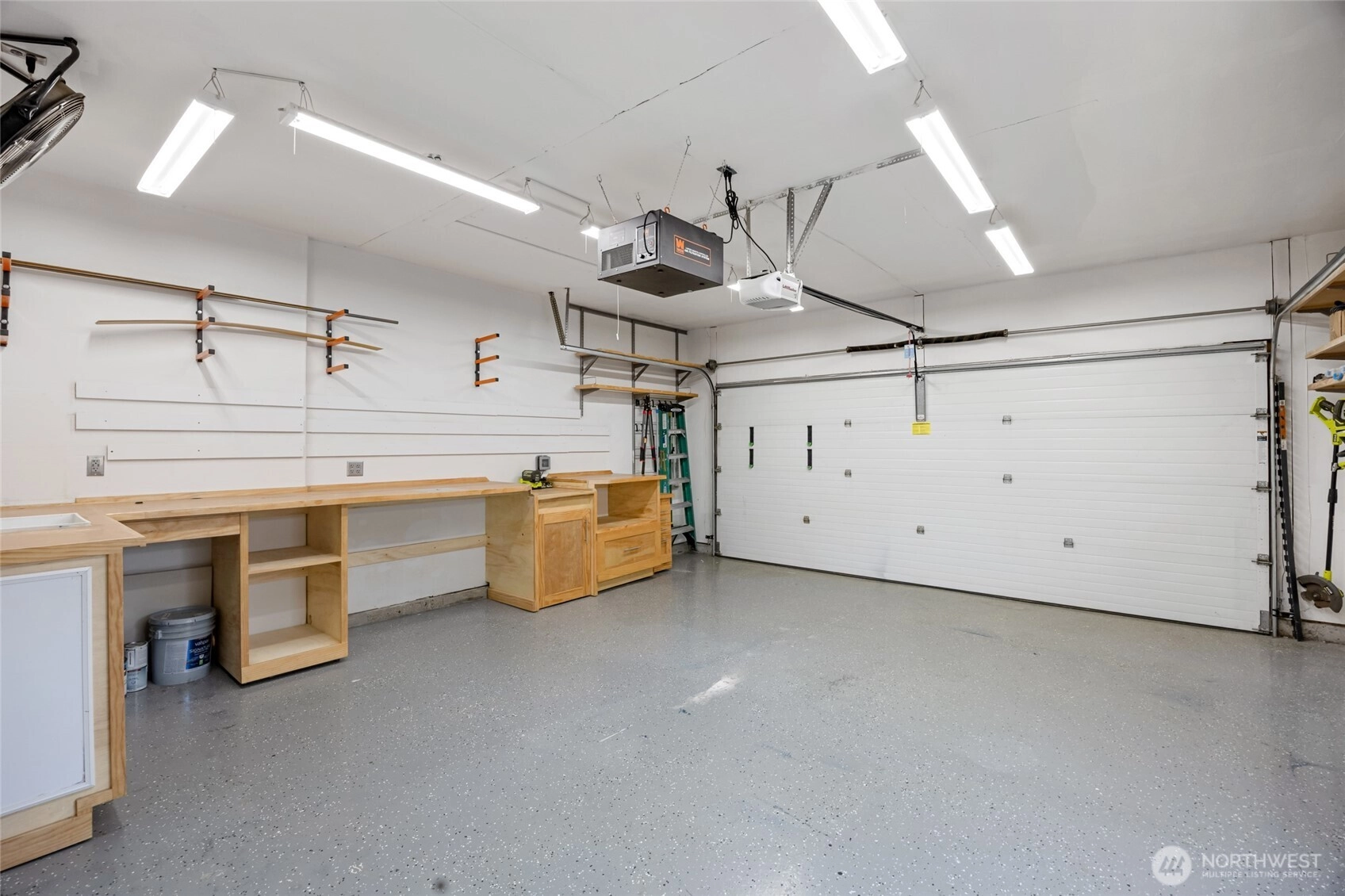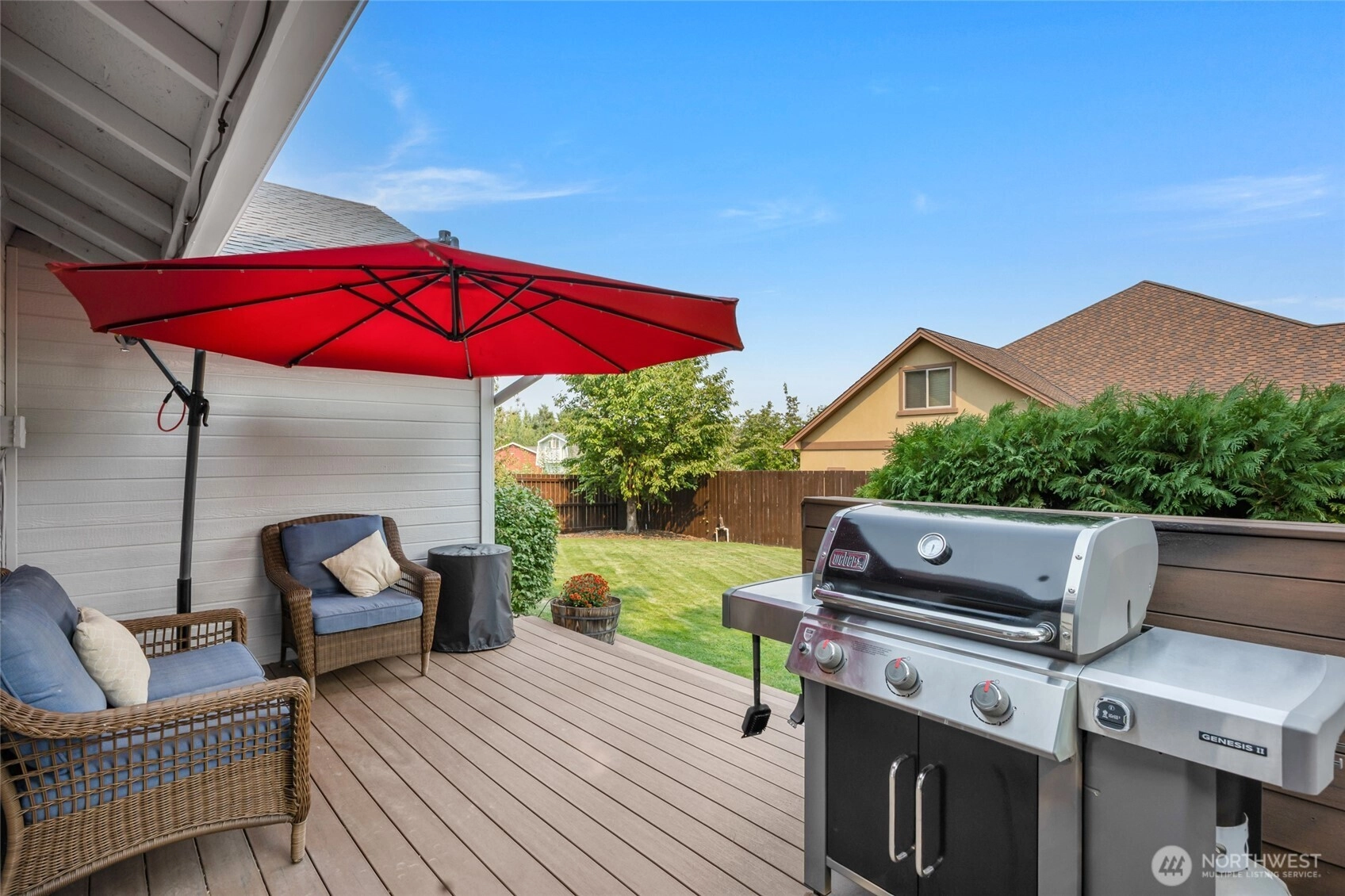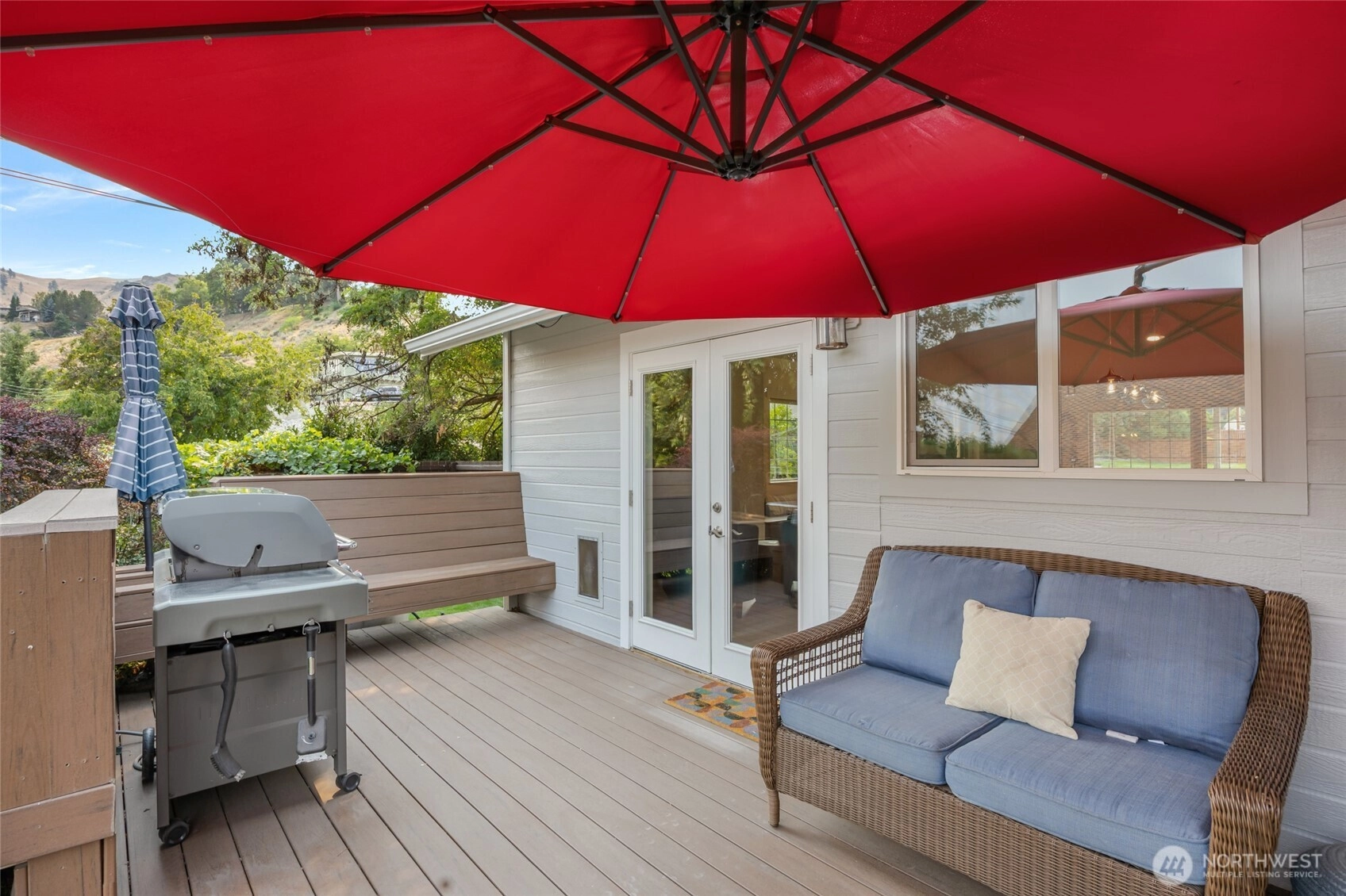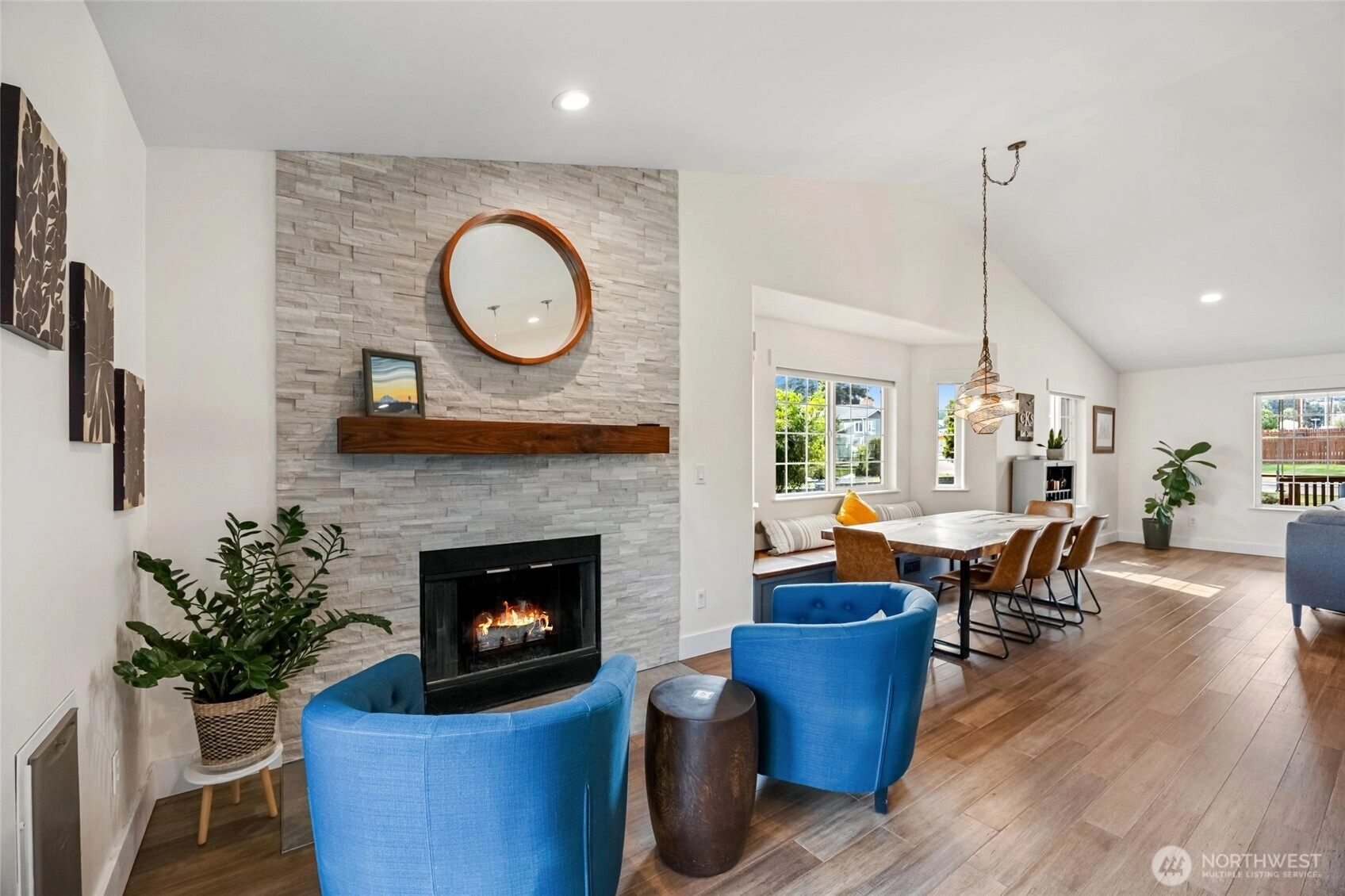 Style and function come together in this single-level 3 bed, 2 bath home with thoughtful details at every turn. The newly remodeled open kitchen boasts a large island, vaulted ceiling, and a cozy sitting area with a gas fireplace. The open floor plan can host a crowd, flowing easily through double doors to the back deck. Creative storage solutions are expertly integrated - so this home lives bigger than its square footage. The new flooring (bamboo plank), roof, exterior paint, and newer HVAC and hot water tank, make this home move in ready. Relax on the charming front porch swing or enjoy the fenced level back yard with shade trees. The garage does double duty with a custom-built workbench and storage. Wen Rec irrigation water.