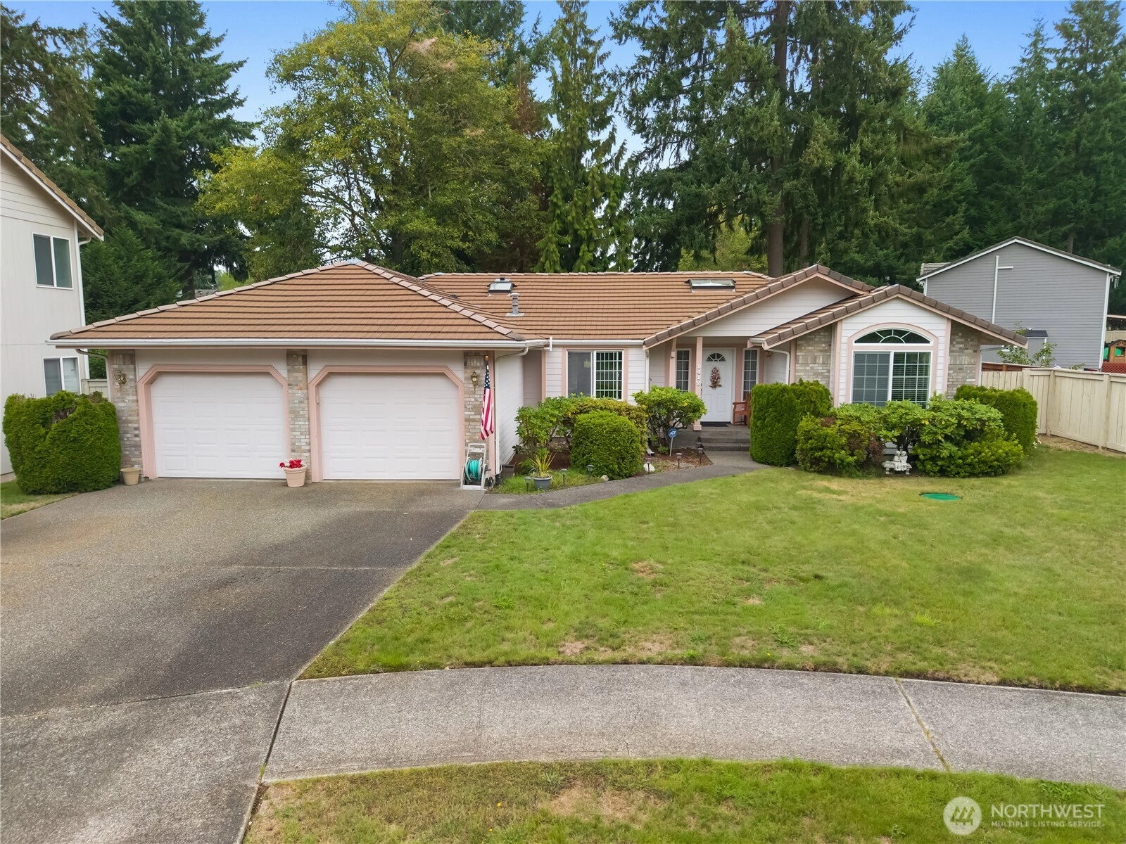 If you are looking for a quality built home, look no further! Attention to detail in every room. Wainscoting in the dining room, coved ceilings, vaulted ceilings, skylights and extensive trim work throughout. Large primary bedroom with a deep soaking tub, double sinks & large walk in closet. Two more bedrooms are located at the other side of the house. Superbly maintained by the original owners for 30 years. Tile roof has added frost protection and gutter guards. Air conditioning. Fully fenced level back yard located on a quiet cul de sac. Imagine being just 2 minutes away from two 18 hole golf courses!- The Links and The Woods. What a wonderful neighborhood and location! Minutes to shops, restaurants and easy I-5 access.15 minutes to JBLM.