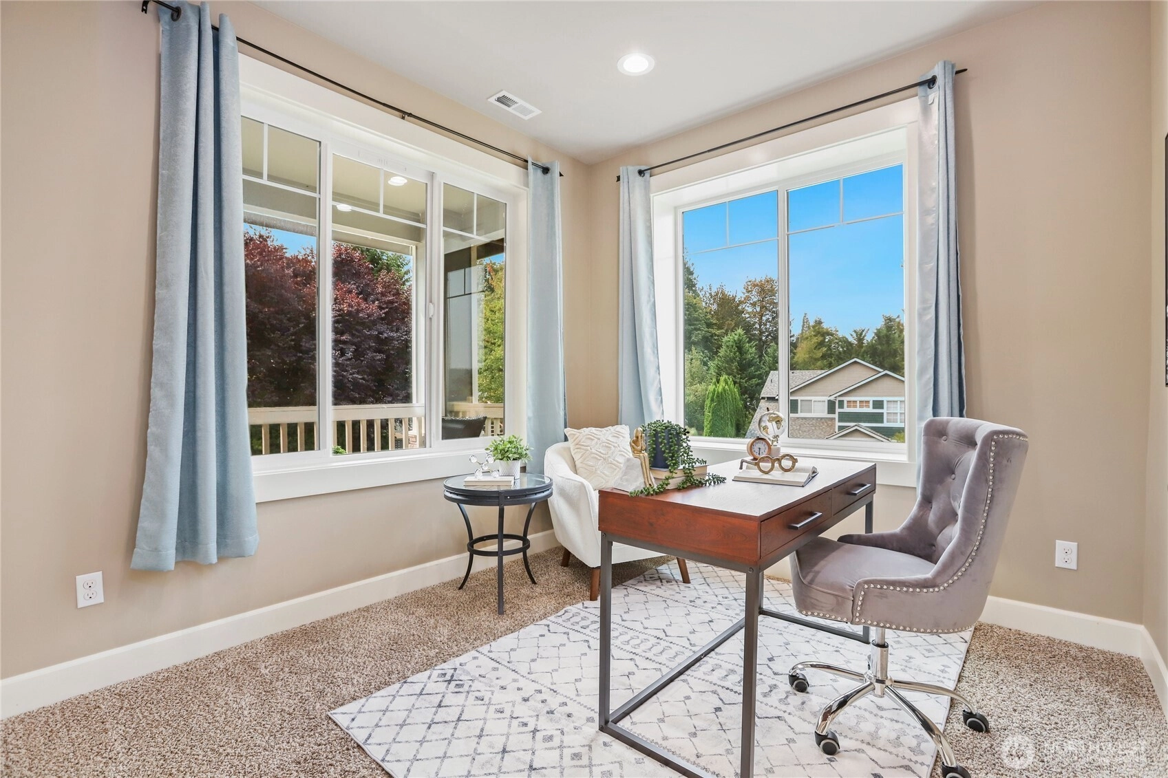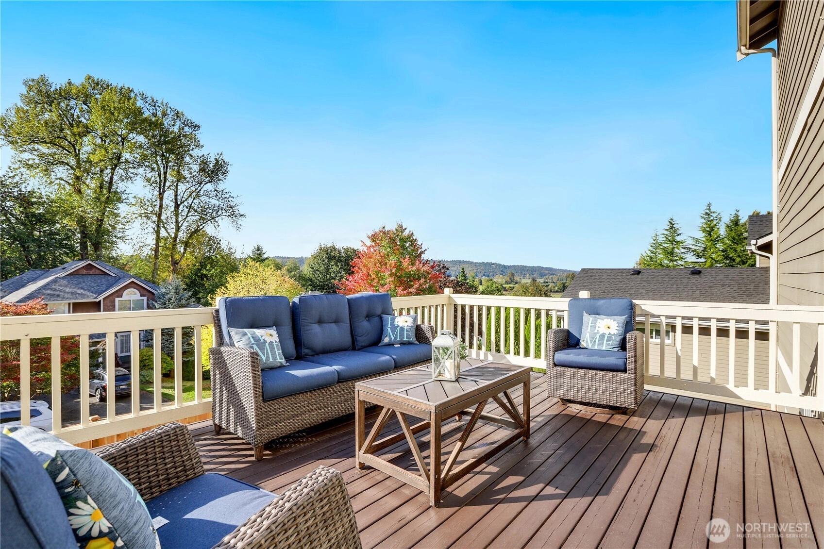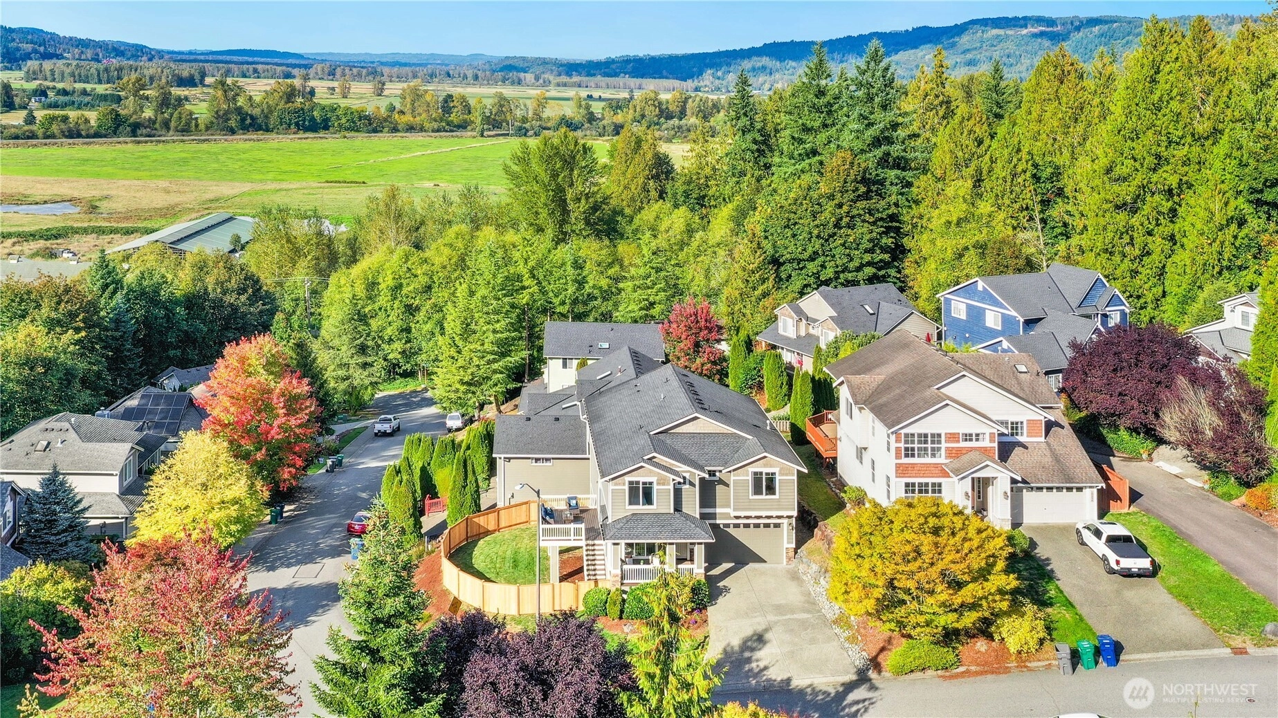 Perched on a sunny corner lot with sweeping valley views, this Duvall home invites comfort, style & connection. Gather in the open great rm with cozy fp & bright windows, or cook & entertain in the gourmet kitchen w/ oversized island. Step onto the expansive deck & enjoy the new fenced yard, ideal for fall gatherings, play or sunsets over the valley. Upstairs, the serene primary suite offers a spa-like retreat, while the theater/game room w/ projector, bar & wine fridge sets the stage for memorable evenings. With space for guests or office, plus central A/C, EV charging & direct trail access, this home blends everyday ease w/ small-town charm. Close to shops, dining, parks, schools & the Microsoft shuttle.