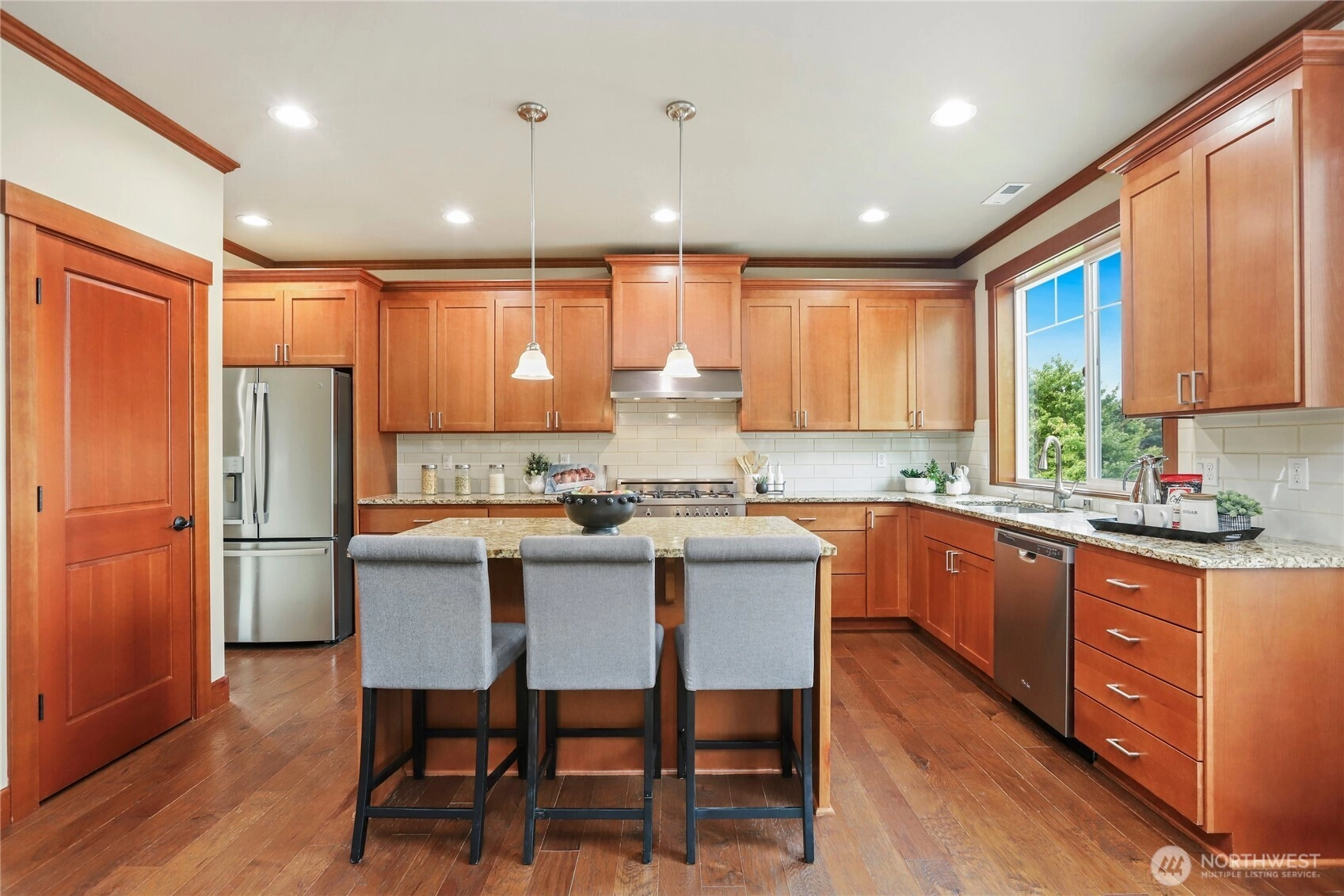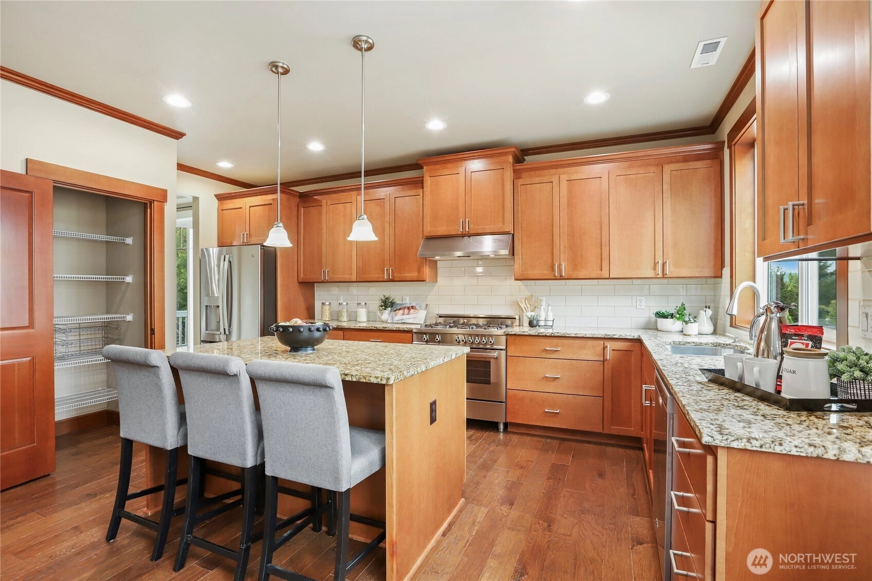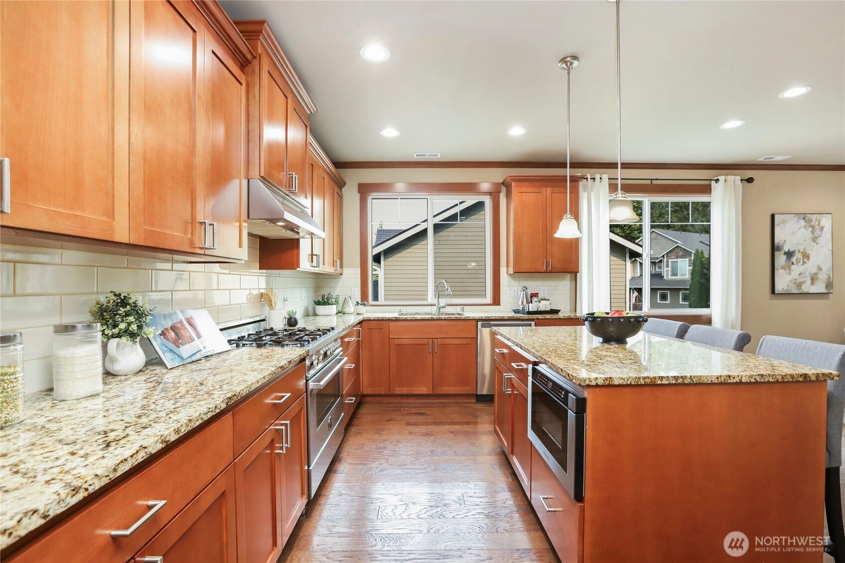 Perched on a sunny corner lot with sweeping valley views, this Duvall home invites comfort, style & connection. Gather in the open great rm with cozy fp & bright windows, or cook & entertain in the gourmet kitchen w/ oversized island. Step onto the expansive deck & enjoy the new fenced yard, ideal for fall gatherings, play or sunsets over the valley. Upstairs, the serene primary suite offers a spa-like retreat, while the theater/game room w/ projector, bar & wine fridge sets the stage for memorable evenings. With space for guests or office, plus central A/C, EV charging & direct trail access, this home blends everyday ease w/ small-town charm. Close to shops, dining, parks, schools & the Microsoft shuttle.