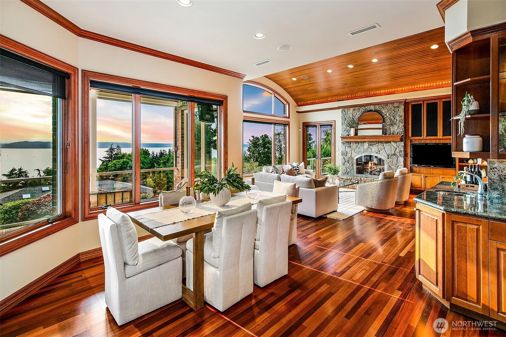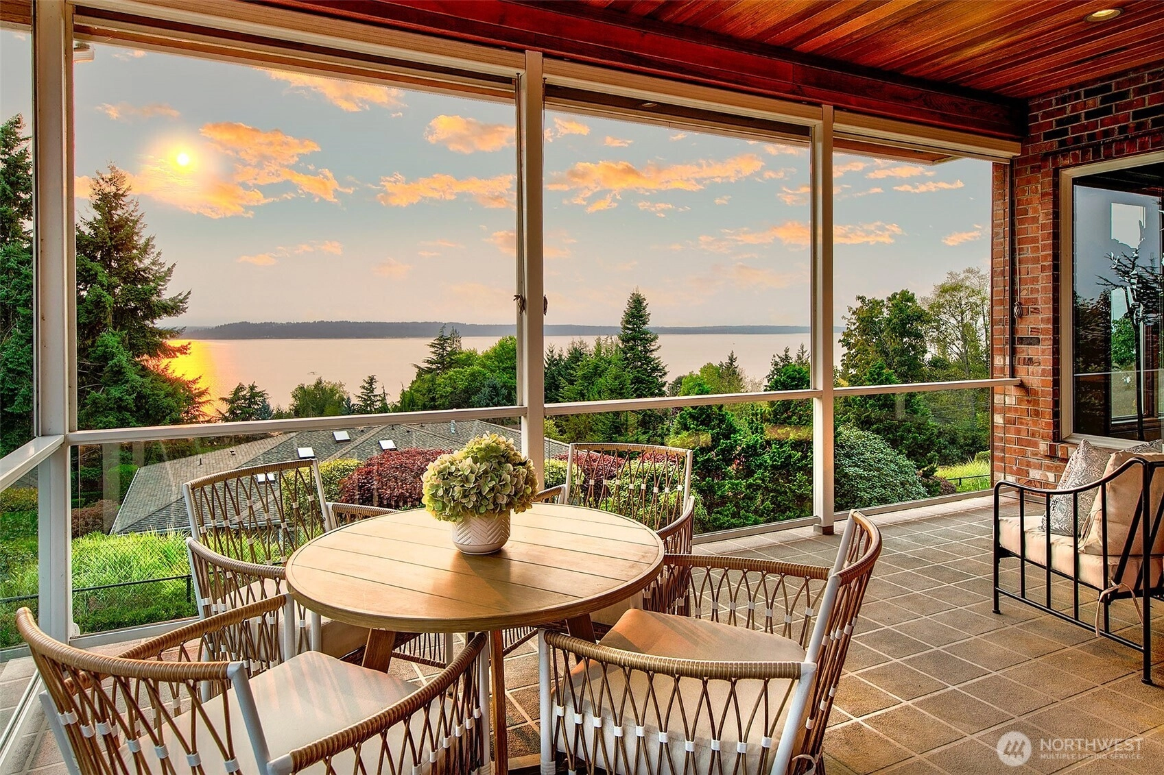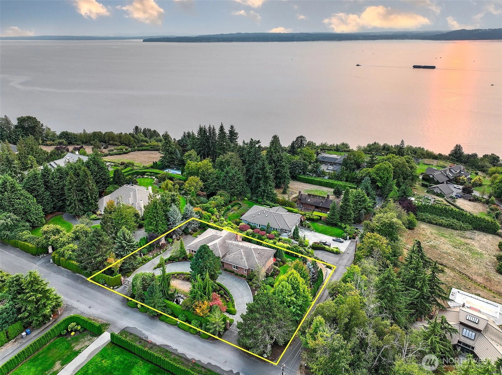 Sweeping Ocean views from this one level living house on the most desirable street in Woodway. Circular driveway with double gate opens to a custom high quality NW contemporary house with large 3 car garage, indoor sport court, elevator, automatic generator, A/C, and protected views of the Puget Sound with salt water breezes, sunsets, ferries and sea life. Chinook Rd is one mile from Edmonds, restaurants & Harbor Square Athletic Club. Approx 3/4 acre of landscaped grounds with water feature, mature garden and built-in hot tub. Homage to the original owners with port & starboard room and etched glass showcasing PNW sea creatures. Barrel cove high ceiling upon entry gives a huge wow factor for daily inspiration and guest reception.