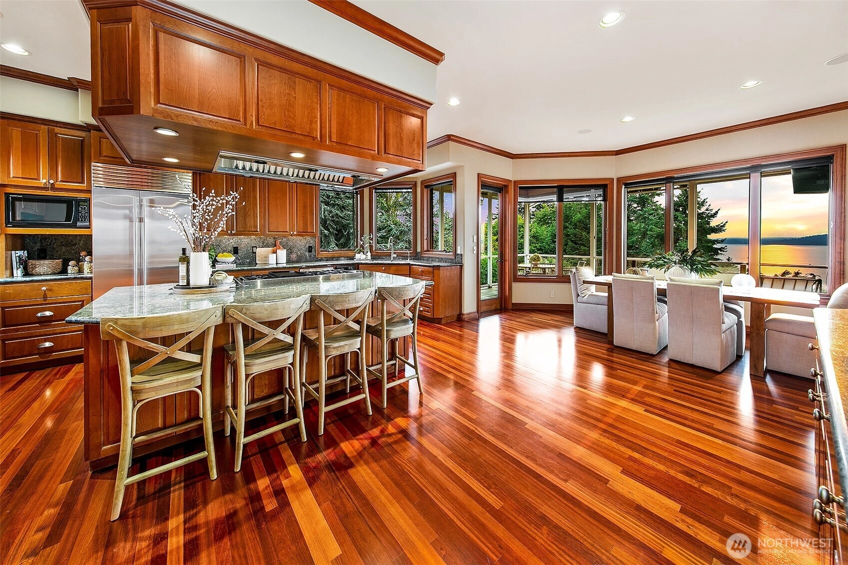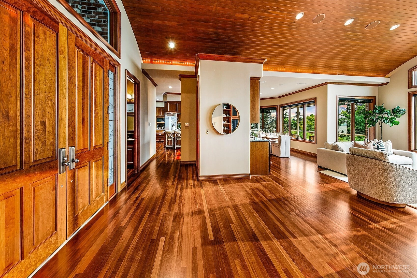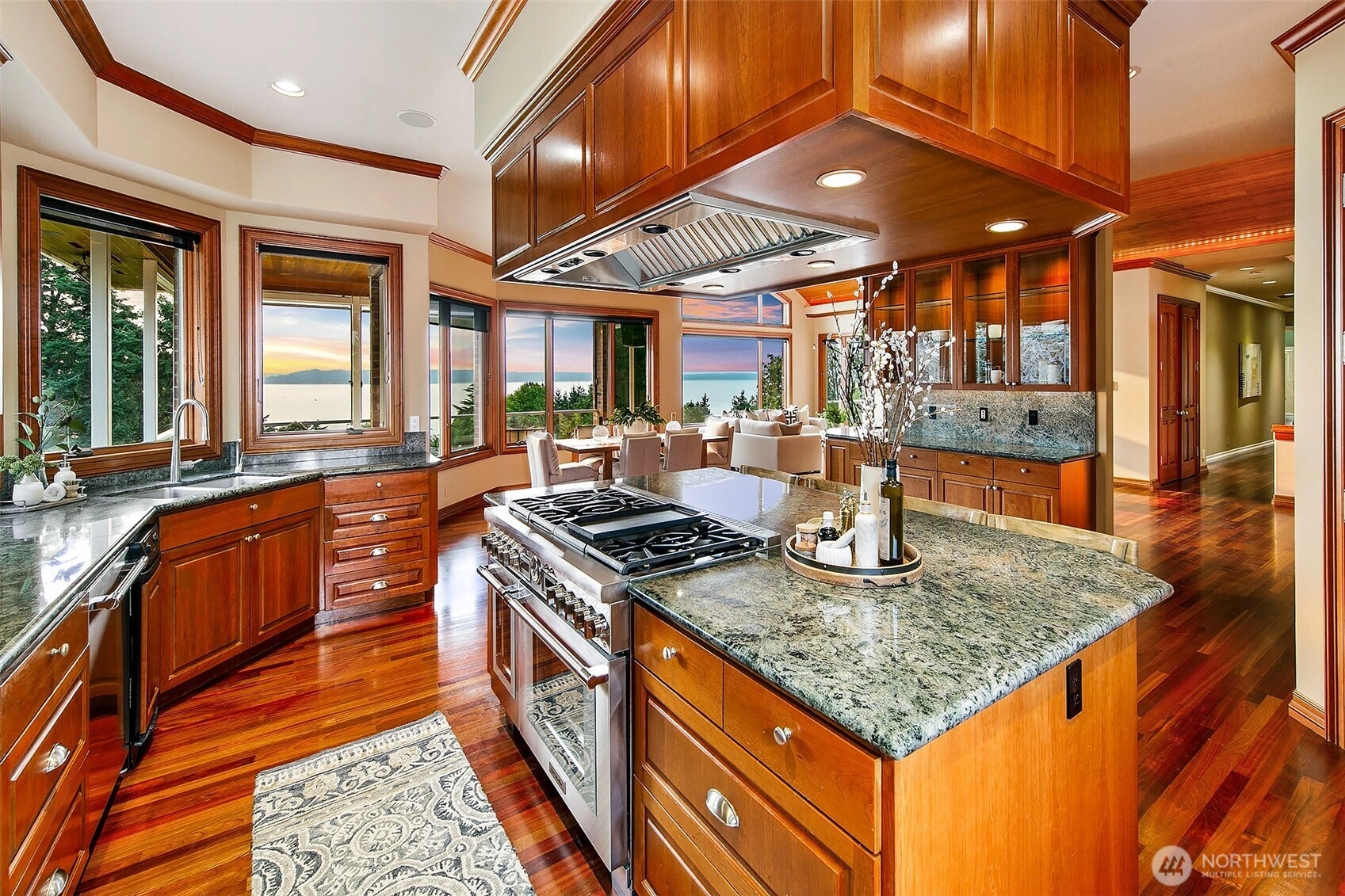 Sweeping Ocean views from this one level living house on the most desirable street in Woodway. Circular driveway with double gate opens to a custom high quality NW contemporary house with large 3 car garage, indoor sport court, elevator, automatic generator, A/C, and protected views of the Puget Sound with salt water breezes, sunsets, ferries and sea life. Chinook Rd is one mile from Edmonds, restaurants & Harbor Square Athletic Club. Approx 3/4 acre of landscaped grounds with water feature, mature garden and built-in hot tub. Homage to the original owners with port & starboard room and etched glass showcasing PNW sea creatures. Barrel cove high ceiling upon entry gives a huge wow factor for daily inspiration and guest reception.