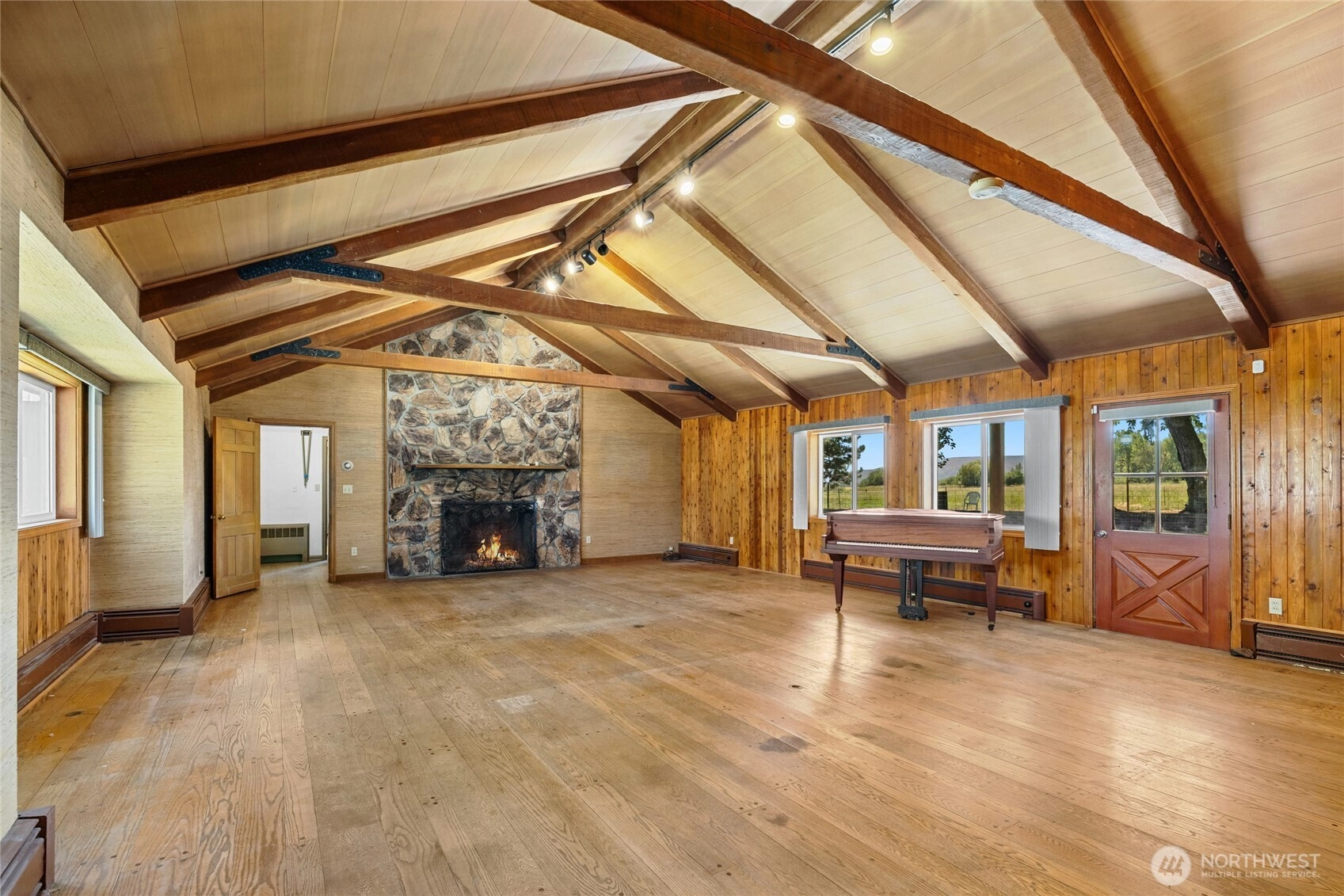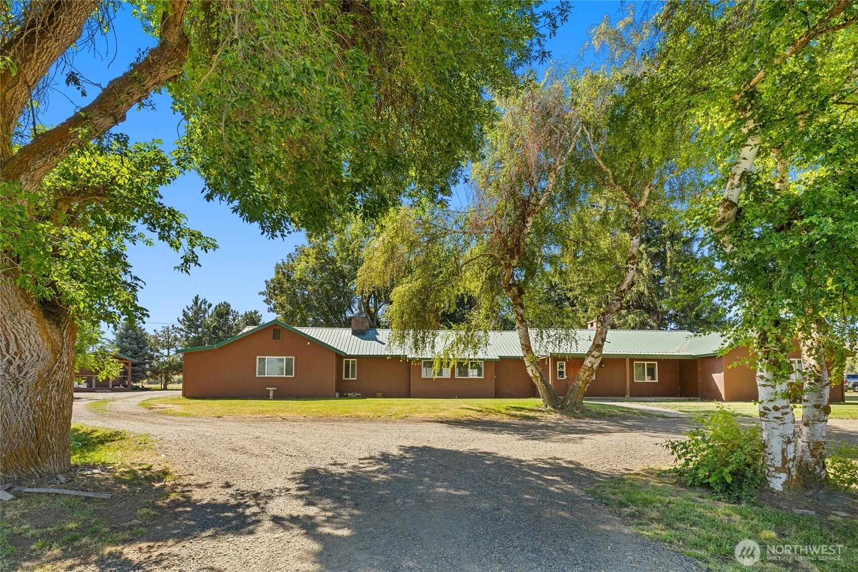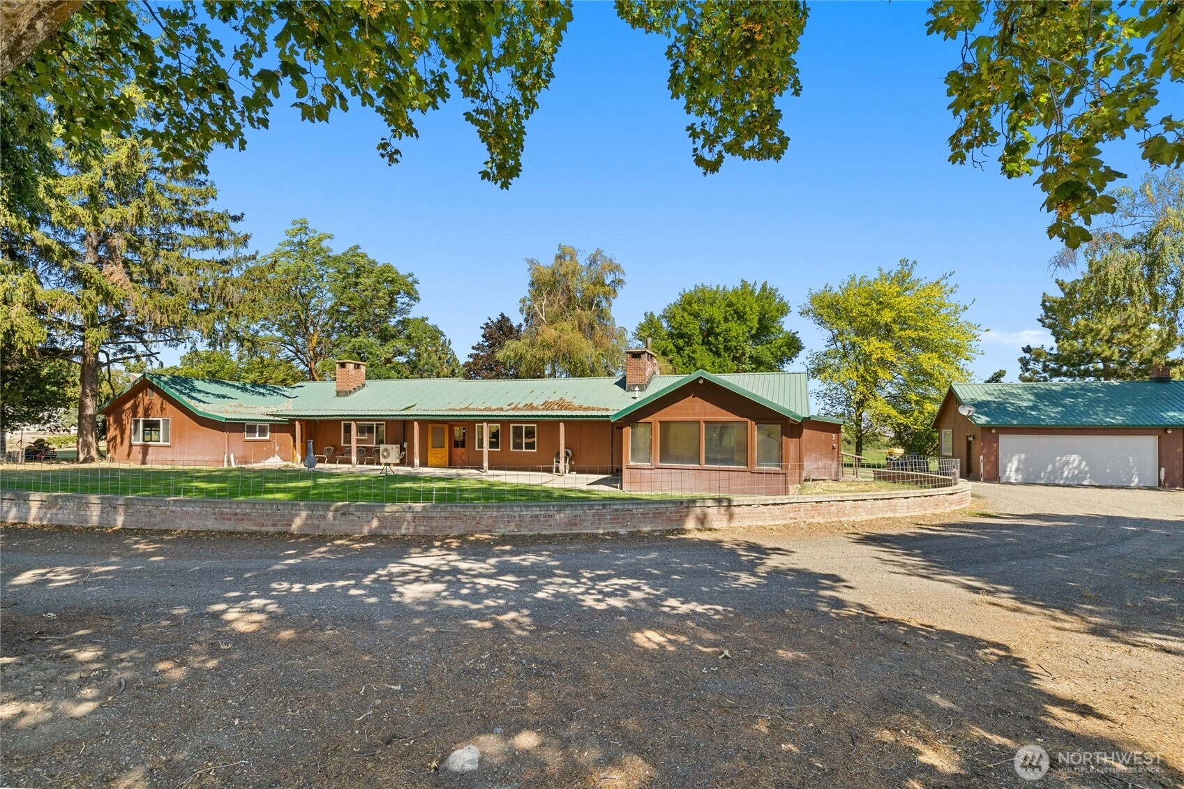 Discover the historic L.T. Murray Ranch House, tucked away on 8.22 irrigated acres on Ellensburg’s westside. This 3,190 sq. ft. ranch blends rustic charm with timeless style, featuring a vaulted great room with clear fir ceilings, a striking stone fireplace, and solid oak floors. The home offers 2 bedrooms plus a den/office, while a recently updated 1-bedroom, 1-bath ADU provides flexible living or guest space. Nestled among mature trees, the property also includes several original barns and loafing sheds, preserving its ranching heritage. A rare opportunity to own a secluded historic home with acreage, character, and endless potential.