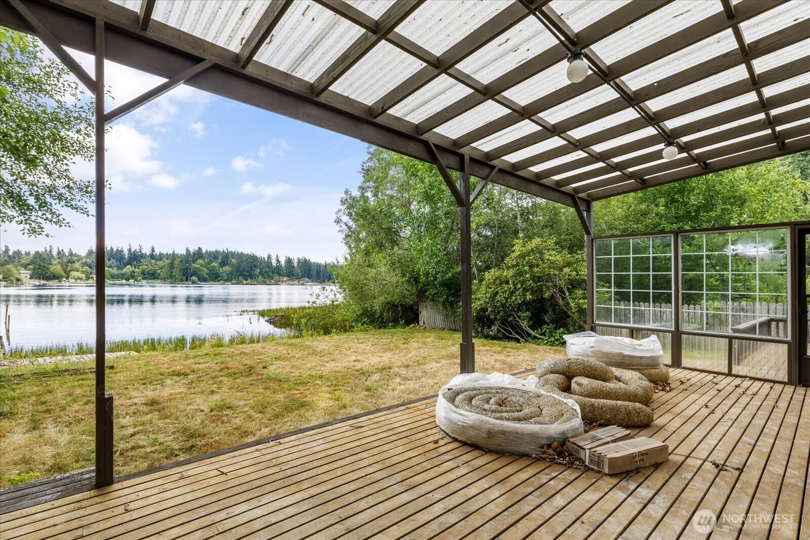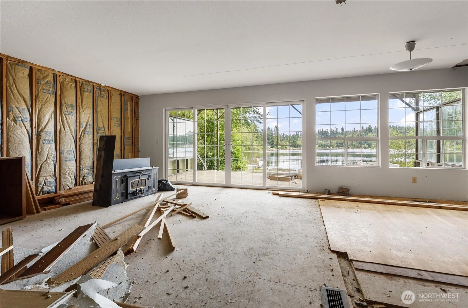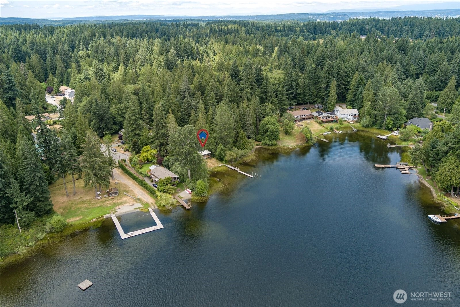 Opportunity awaits at this Deer Lake waterfront property in Clinton. Purchased in 2023 with plans for a complete remodel, the home was taken down to the studs and a new roof installed but remains unfinished. Situated on nearly a half an acre, it offers a private setting with access to swimming, fishing, boating, and waterskiing. Nearby amenities include a community boat launch and swim/play area. A 40’x14’ RV/shop building provides ample space for storage an RV or a boat or a shop or studio. Just 3 miles from the Clinton ferry dock, this property is ideal for a commuter or as a weekend getaway. Estate property, sold “As Is”. PLEASE USE CAUTION WHEN VIEWING!