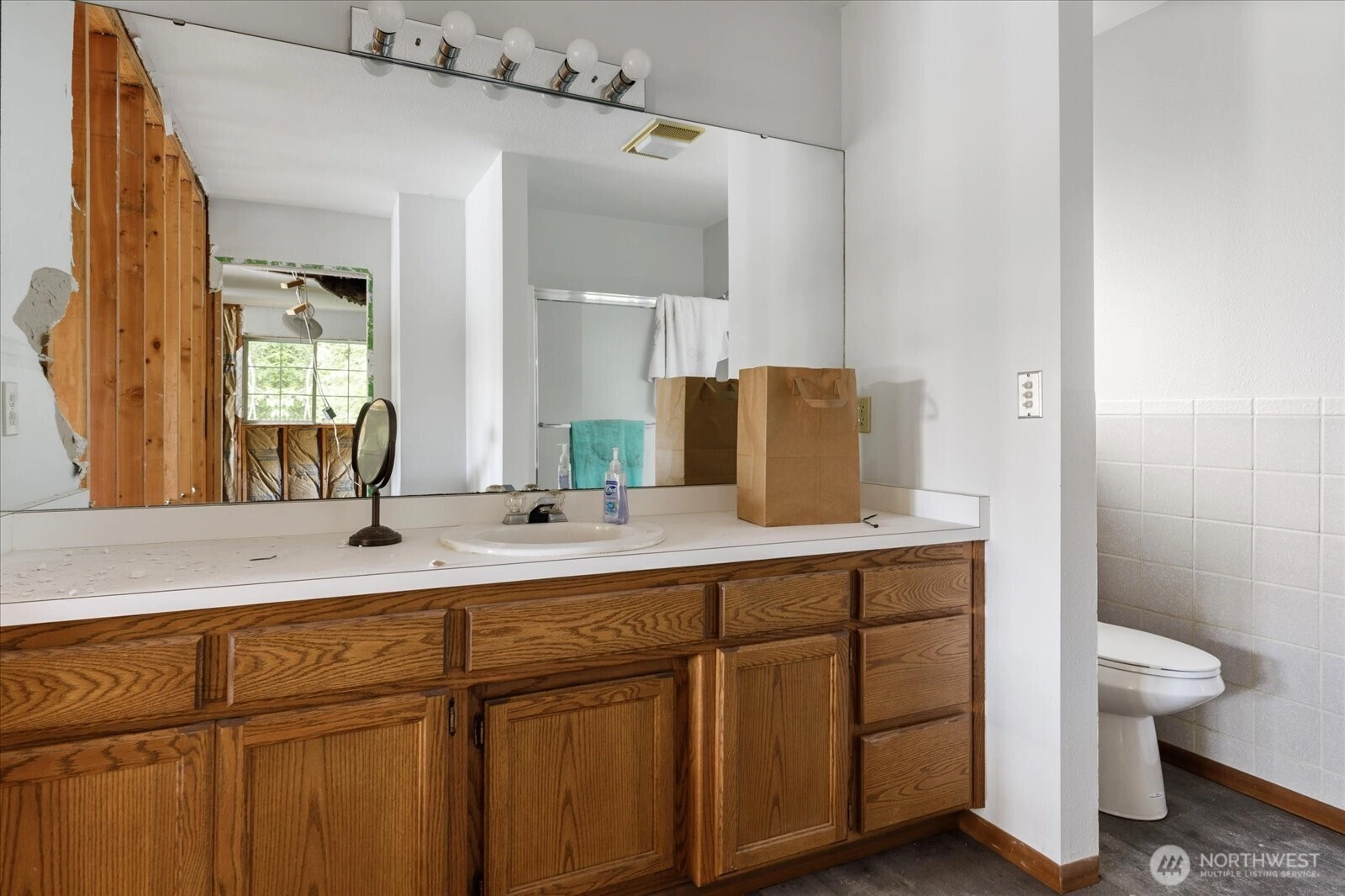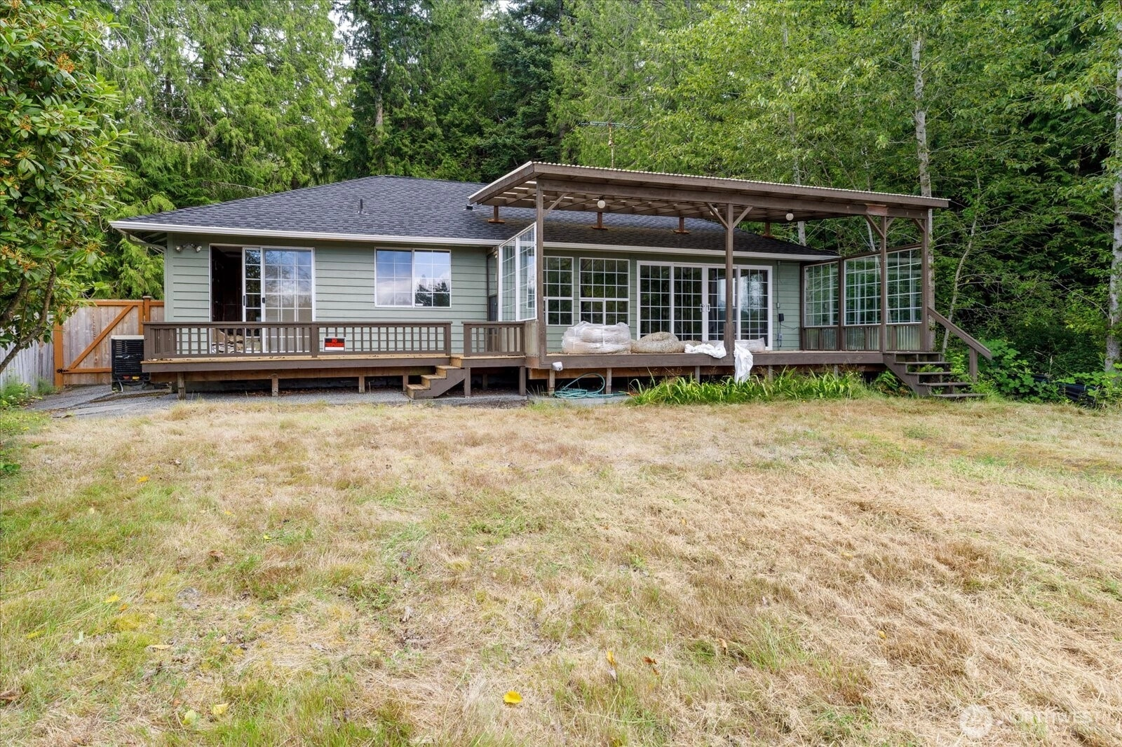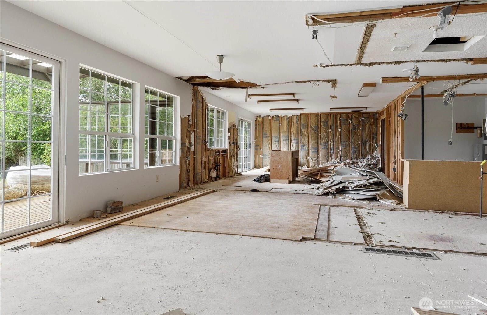 Opportunity awaits at this Deer Lake waterfront property in Clinton. Purchased in 2023 with plans for a complete remodel, the home was taken down to the studs and a new roof installed but remains unfinished. Situated on nearly a half an acre, it offers a private setting with access to swimming, fishing, boating, and waterskiing. Nearby amenities include a community boat launch and swim/play area. A 40’x14’ RV/shop building provides ample space for storage an RV or a boat or a shop or studio. Just 3 miles from the Clinton ferry dock, this property is ideal for a commuter or as a weekend getaway. Estate property, sold “As Is”. PLEASE USE CAUTION WHEN VIEWING!