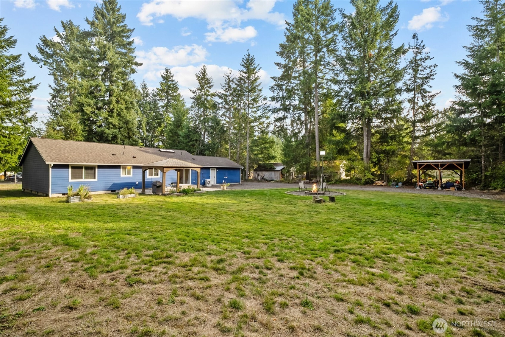 Welcome to this beautiful 1716 sq.ft. rambler built in 2018, perfectly situated on a full acre in Orting. Designed with comfort & functionality in mind, this home offers vaulted ceilings & an open floor plan. The spacious kitchen features granite countertops, stainless steel appliances, a large island with high-top bar seating & opens into a gorgeous living space with skylights for tons of natural light. The Primary Bedroom has a walk in closet & ensuite bath. Additional highlights include vinyl plank flooring, full-sized laundry room & an efficient ductless mini-split for year-round comfort. Outside enjoy ample room for serene outdoor living & entertaining with a fully fenced expansive yard, fire pit, patio, garden space & RV/Toy Parking!!