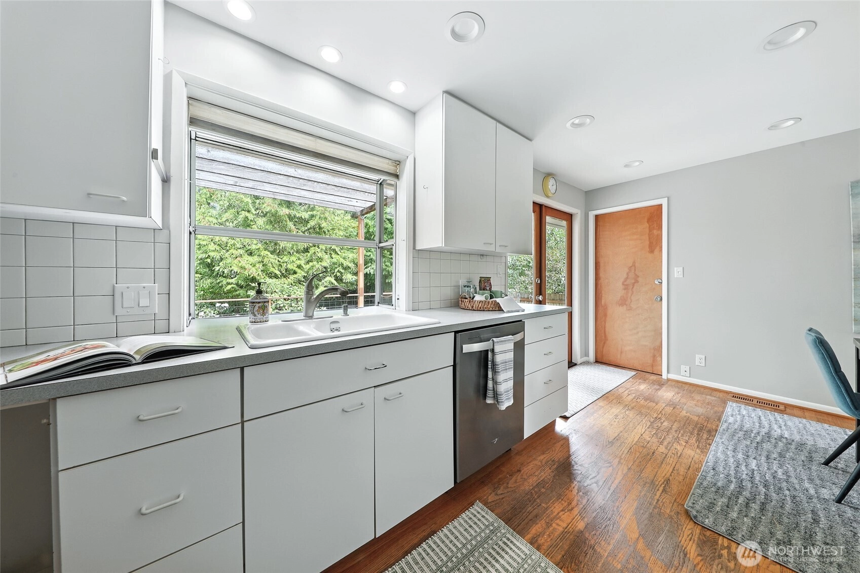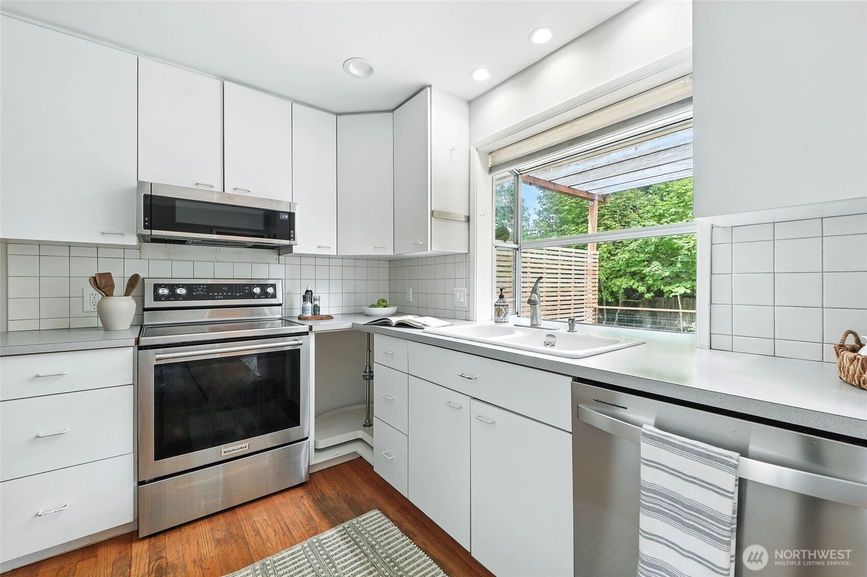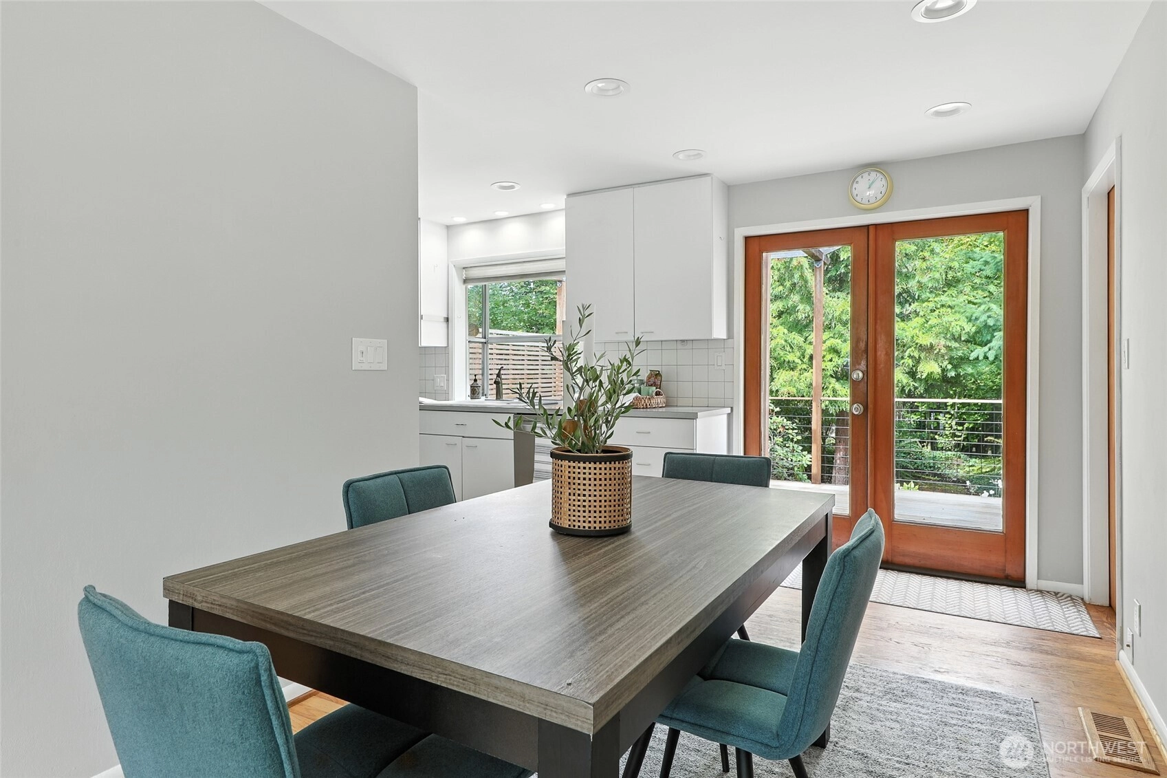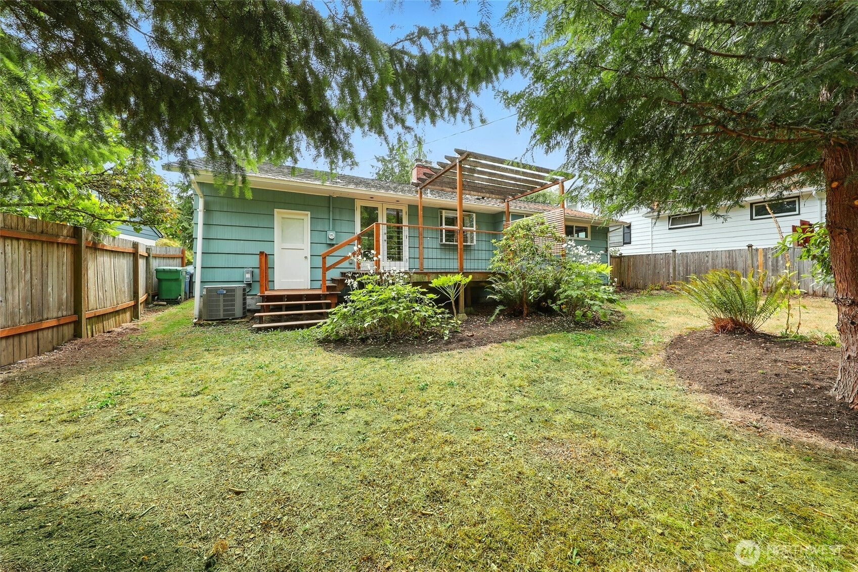 This charming one-level Cape Cod rests on a quiet street in the heart of Wedgwood, just blocks from the neighborhood’s beloved parks, shops, restaurants, and award-winning schools. Inside, the open floor plan showcases a welcoming living room and dining area, filled with natural light from walls of double-paned windows. The kitchen, overlooking the backyard, connects seamlessly to the dining room, while French doors extend the living space onto an entertainment-sized deck and an expansive, level, fully fenced yard—perfect for gatherings, play, and relaxation. Three bedrooms with hardwood floors and a full bath complete the effortless floor plan. An attached garage adds convenience with extra storage and laundry space. Don't miss this one!
