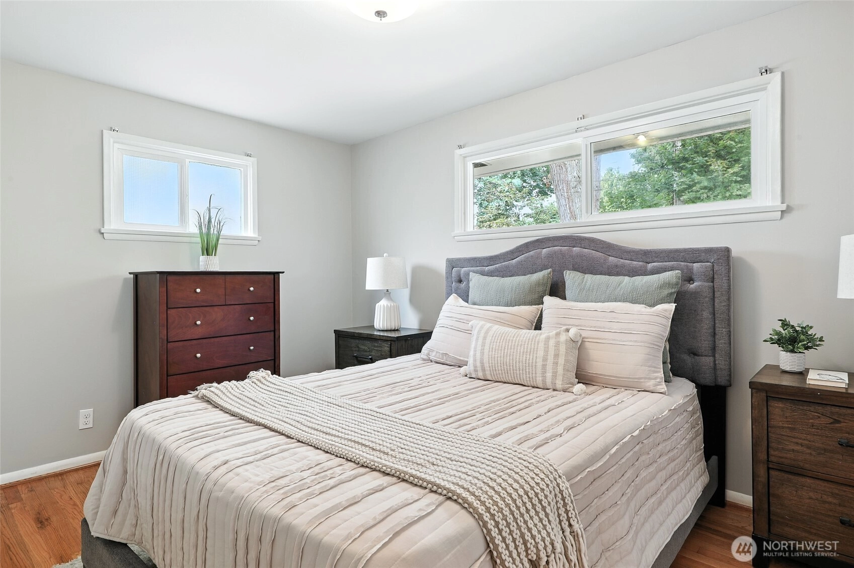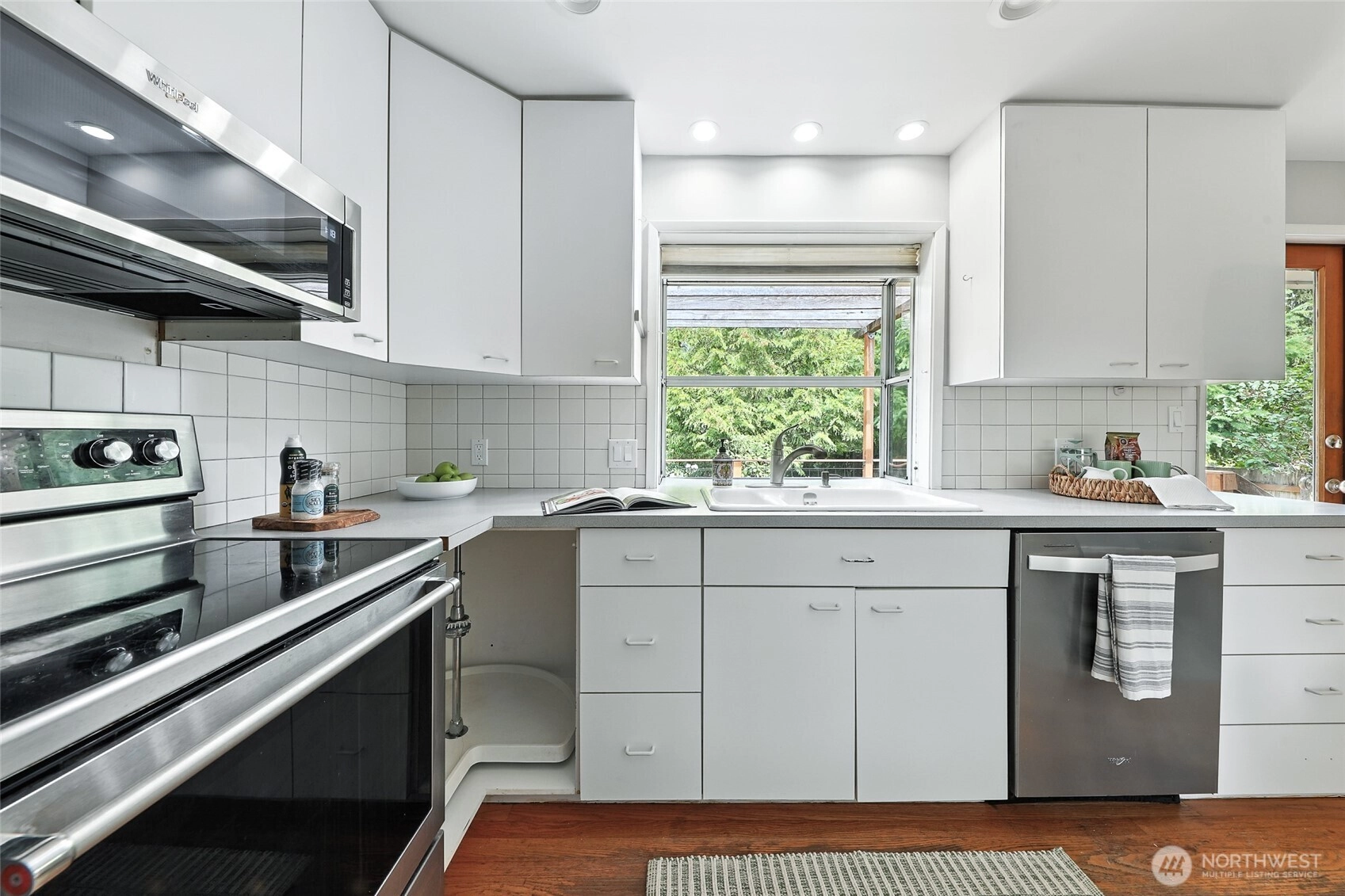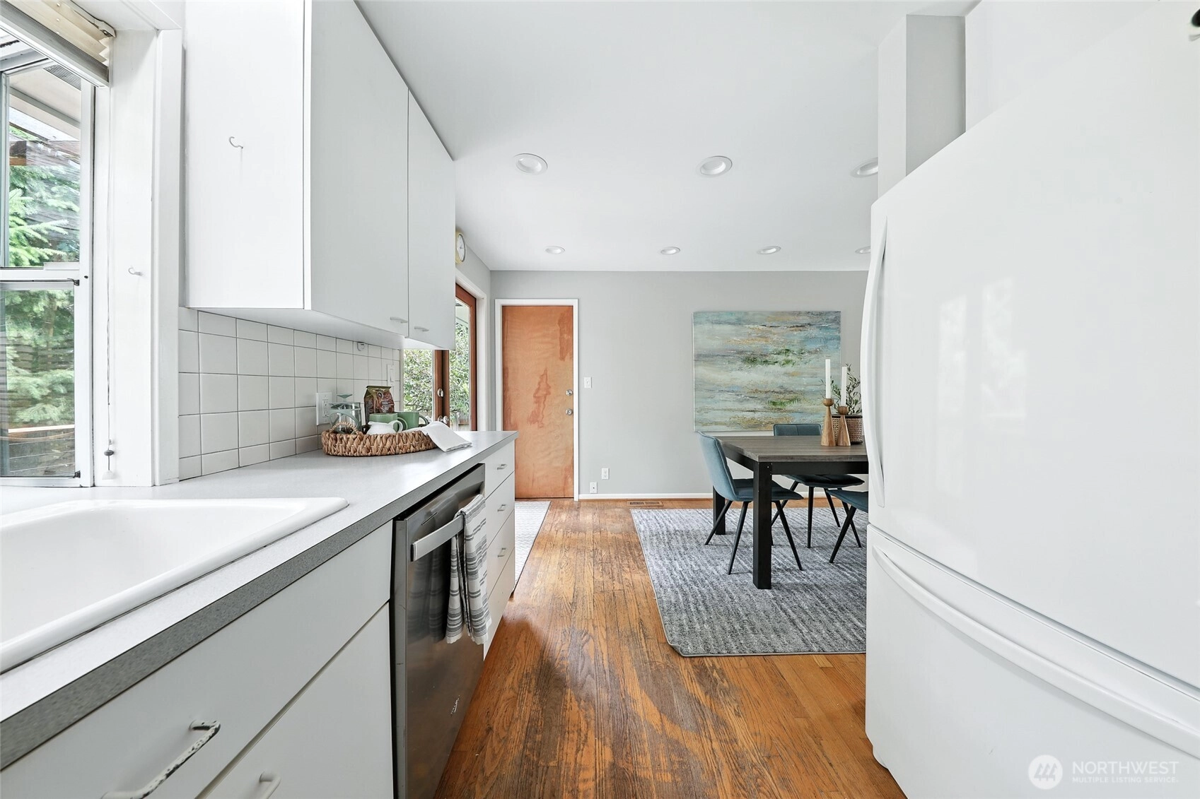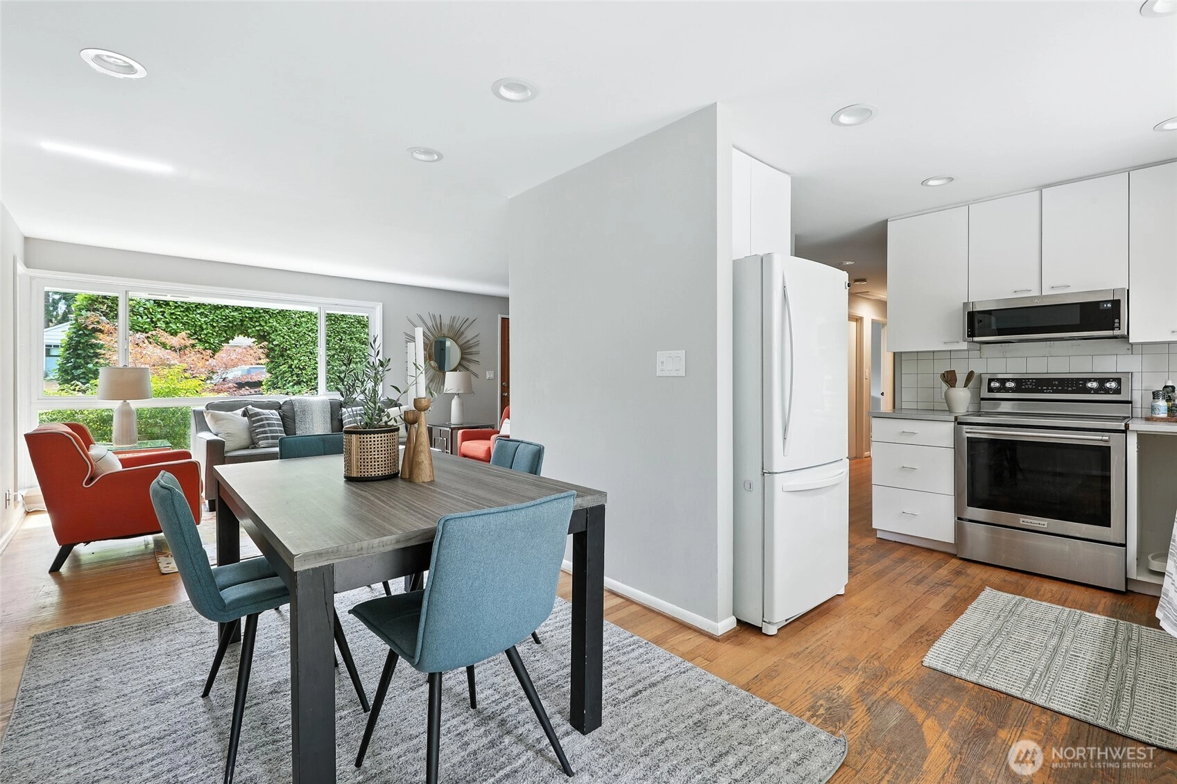 This charming one-level Cape Cod rests on a quiet street in the heart of Wedgwood, just blocks from the neighborhood’s beloved parks, shops, restaurants, and award-winning schools. Inside, the open floor plan showcases a welcoming living room and dining area, filled with natural light from walls of double-paned windows. The kitchen, overlooking the backyard, connects seamlessly to the dining room, while French doors extend the living space onto an entertainment-sized deck and an expansive, level, fully fenced yard—perfect for gatherings, play, and relaxation. Three bedrooms with hardwood floors and a full bath complete the effortless floor plan. An attached garage adds convenience with extra storage and laundry space. Don't miss this one!