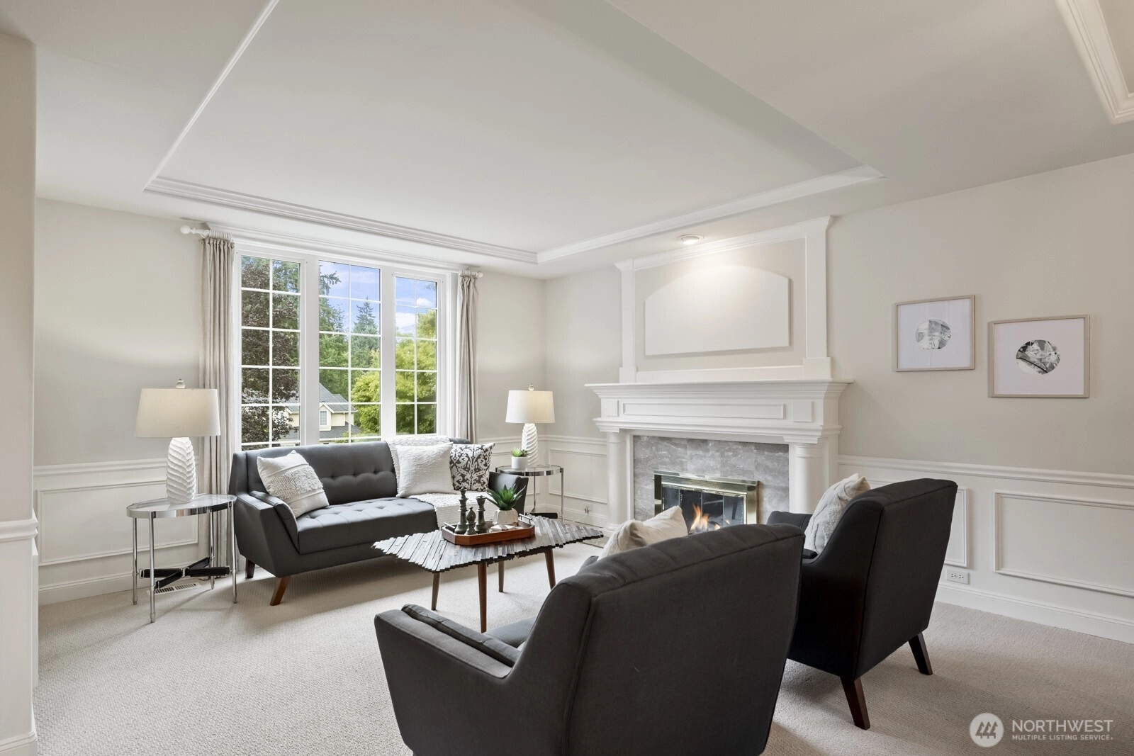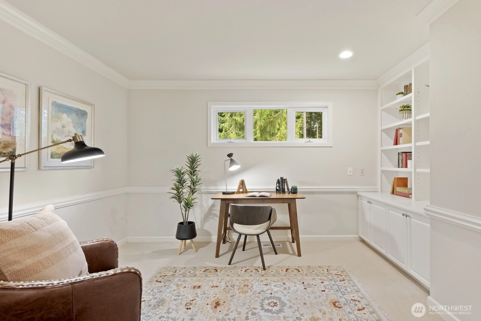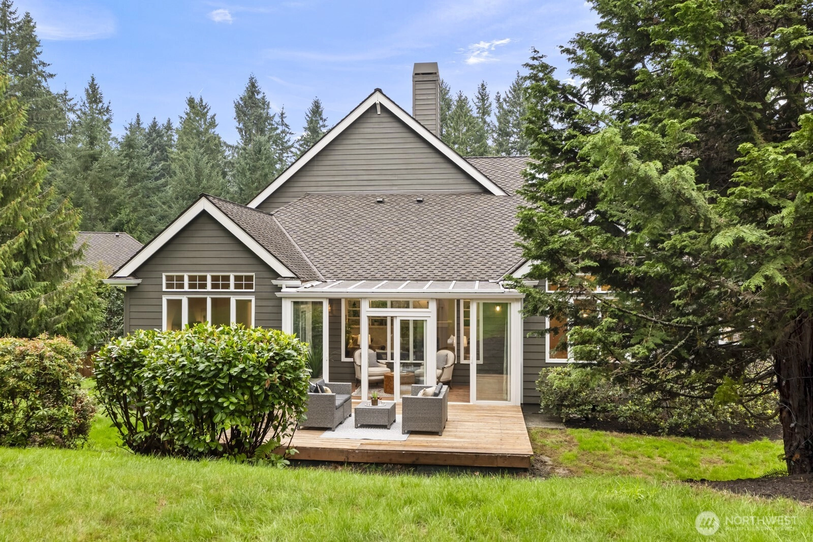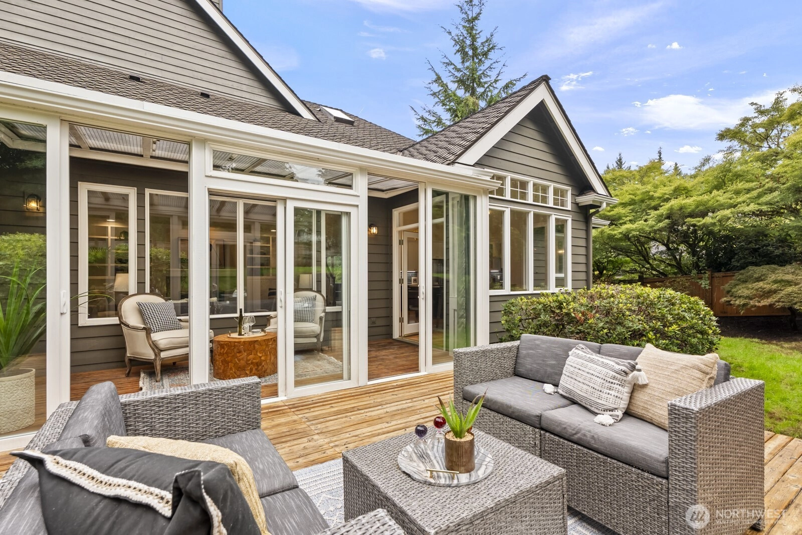 Exceptional Burnstead built home in sought after Tuscany! Quiet cul-de-sac location, vaulted ceilings, elegant moldings, spacious floor plan, flooded w/natural light. Spectacular new kitchen w/tall soaring ceilings, 2 tone cabinetry, quartz counters, brushed gold hardware & professional appliances. Main floor primary suite w/refreshed bathroom w/free standing tub, designer tile & quartz, large walk-in closet, French doors to the sunroom w/sliding doors to the deck & fully fenced yard that backs to open space. Bonus room on the main & office w/white built-ins upstairs. Updated hall bath w/new quartz vanity, 3 large bedrooms upstairs & updated guest 1/2 bath. Fresh exterior paint, solid core doors, new carpet, 50 year roof w/new gutters.