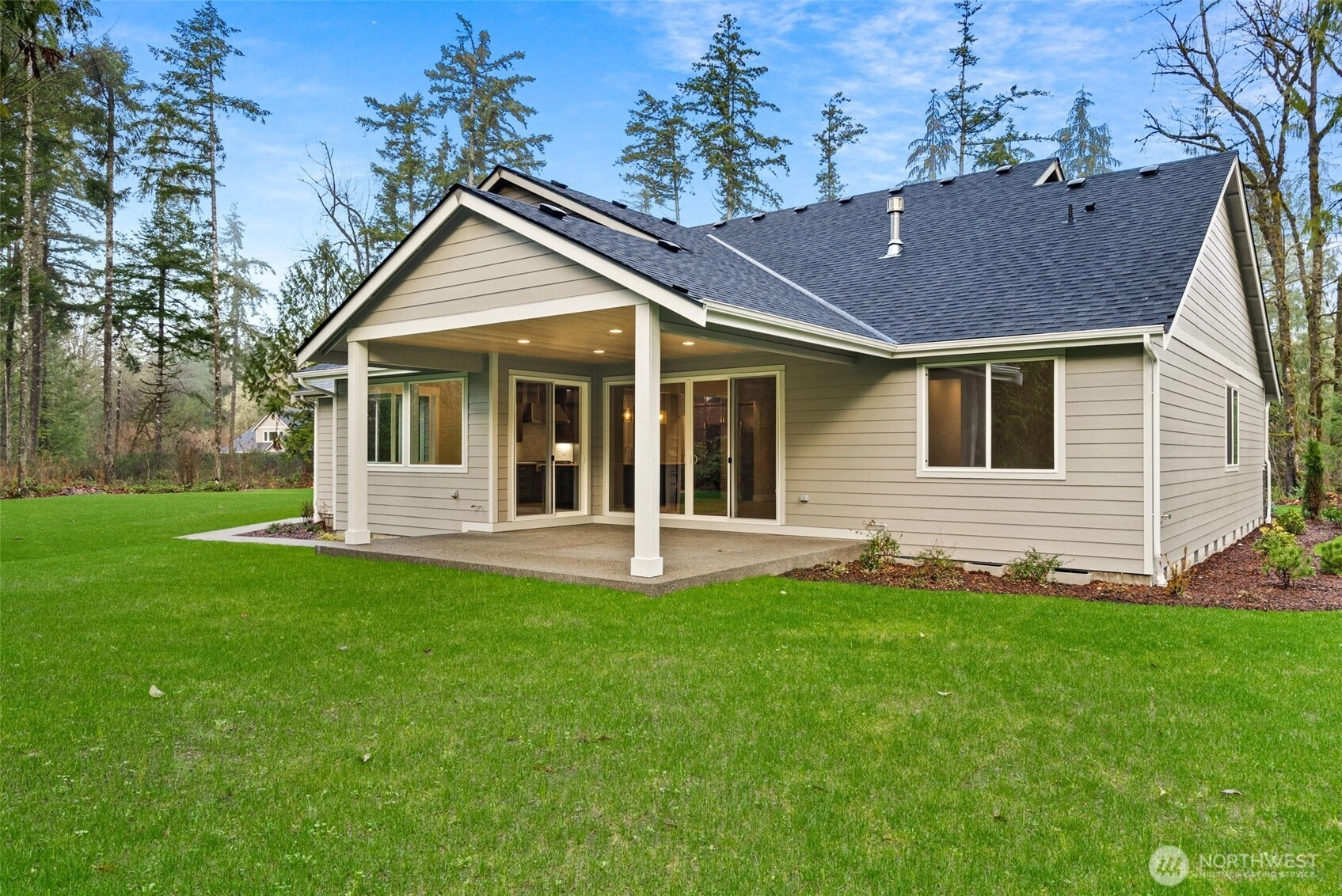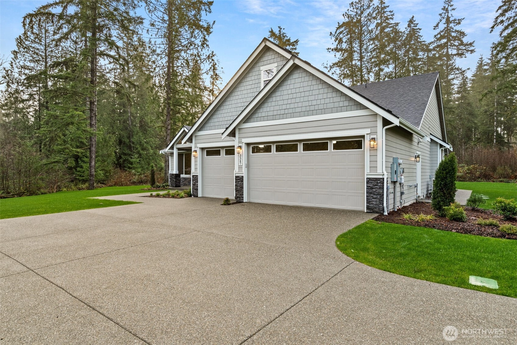 Rob Rice Homes presents another exceptional new construction home in Tumwater, beautifully situated on 4.71 acres. Designed with high-end finishes, every space reflects thoughtful craftsmanship, from elegant wainscoting to the gourmet kitchen featuring maple shaker style cabinetry and premium GE Monogram appliances. The main floor primary offers a spa-like retreat with a full tile shower, vessel tub and dual walk-in closets. A split-bedroom layout provides privacy, with two additional bedrooms, a den, and a ¾ bath on the opposite side of the home. Upstairs, you'll find a rec room, bonus room, full bath, and a stylish bar area with beverage cooler. Landscaped and irrigated around the home!