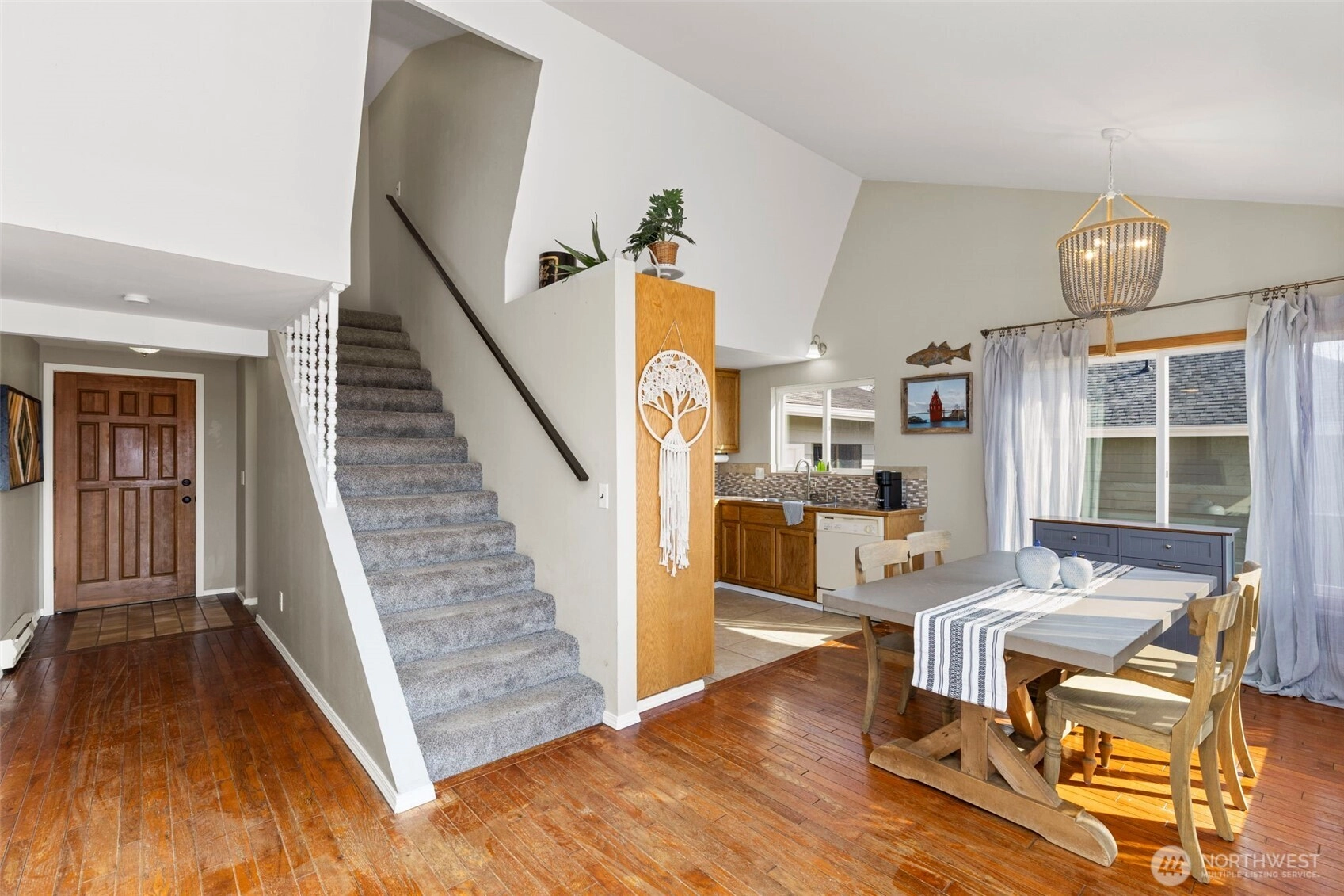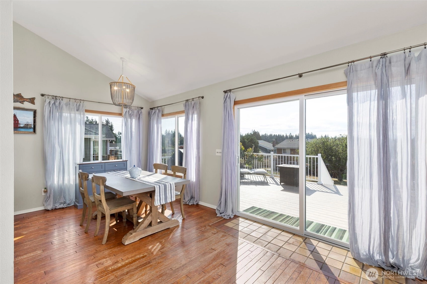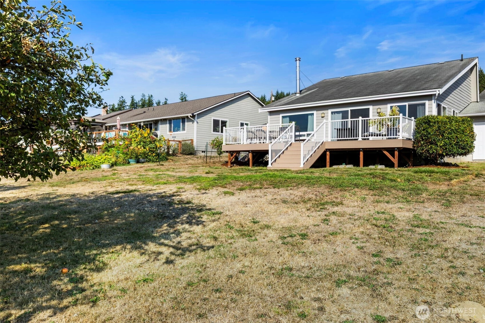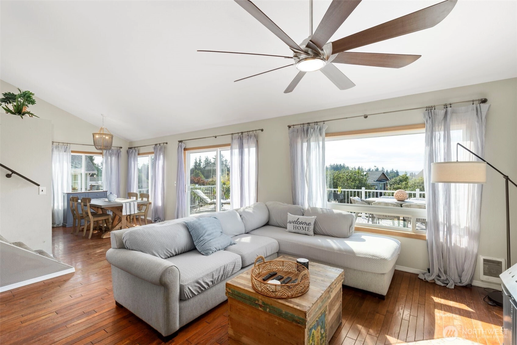 Enjoy the stunning Hood Canal and Olympic Mountain views from this charming Driftwood Keys home. Light and bright living area with vaulted ceilings, walls of windows and original hardwood floors. Dining area with slider leading to the expansive new deck, perfect for entertaining! Main floor bedroom and 3/4 bath with utility room. Upstairs primary bedroom with tons of storage space and attached full bath. Large backyard with garden area and fruit trees, two garages for extra storage, circular driveway and tons of parking! Driftwood Keys community features waterfront access, private marina, clubhouse, swimming pool, playground and more!