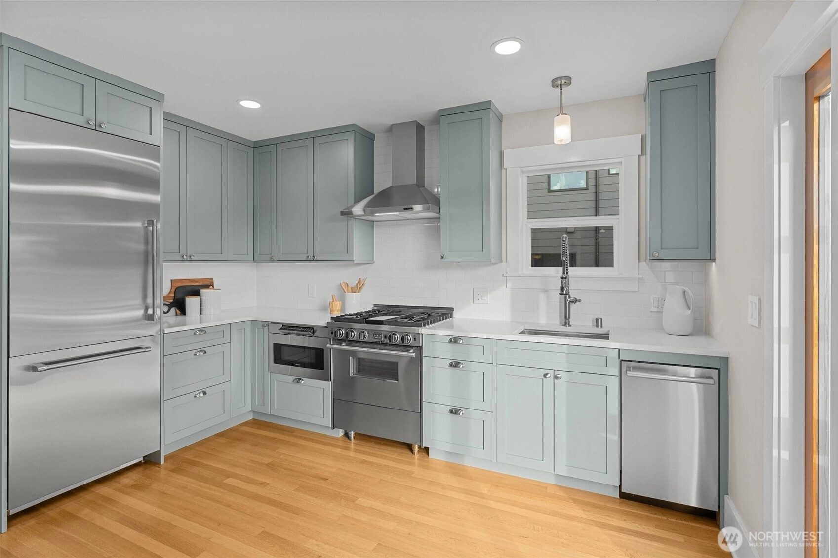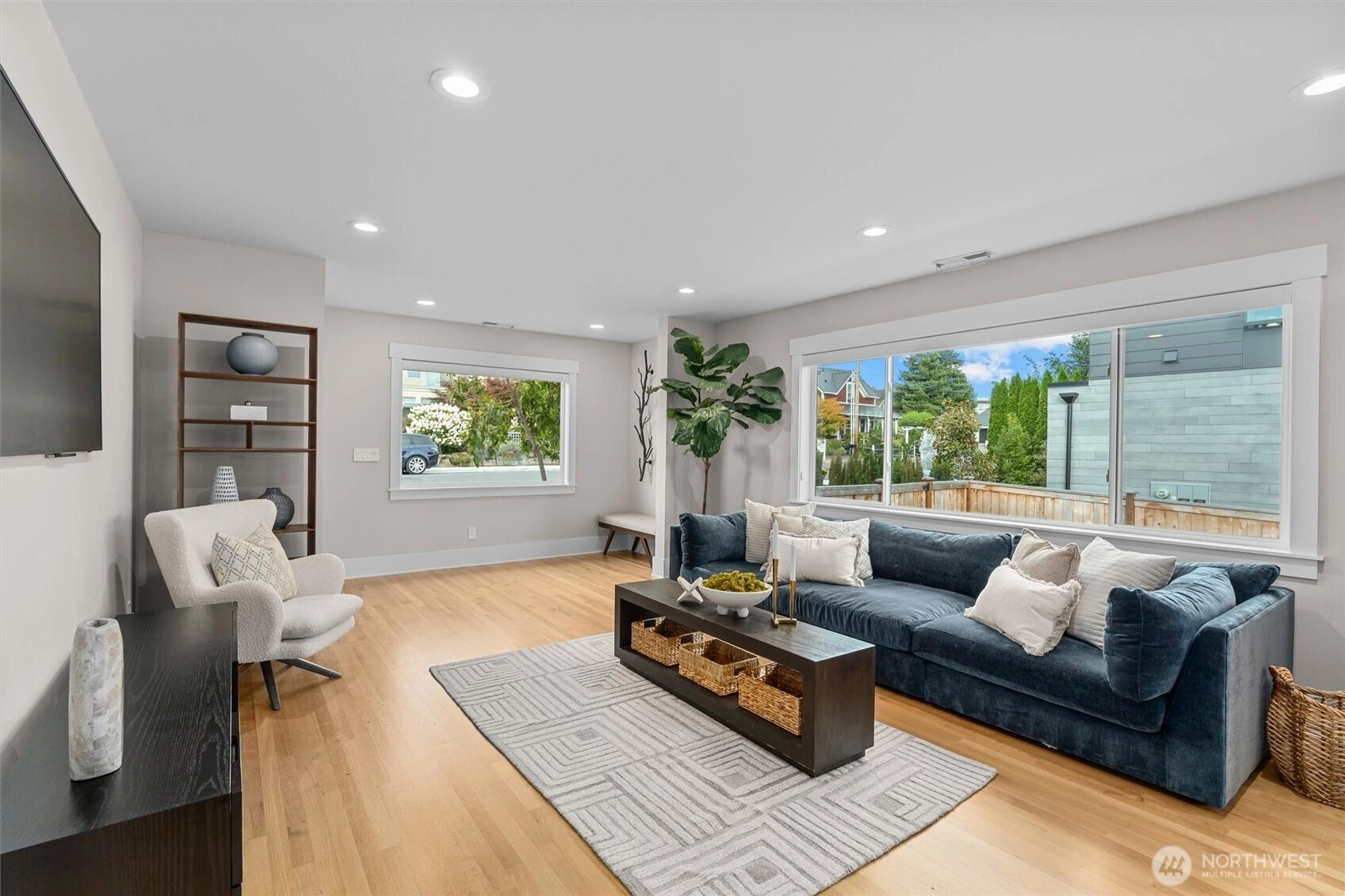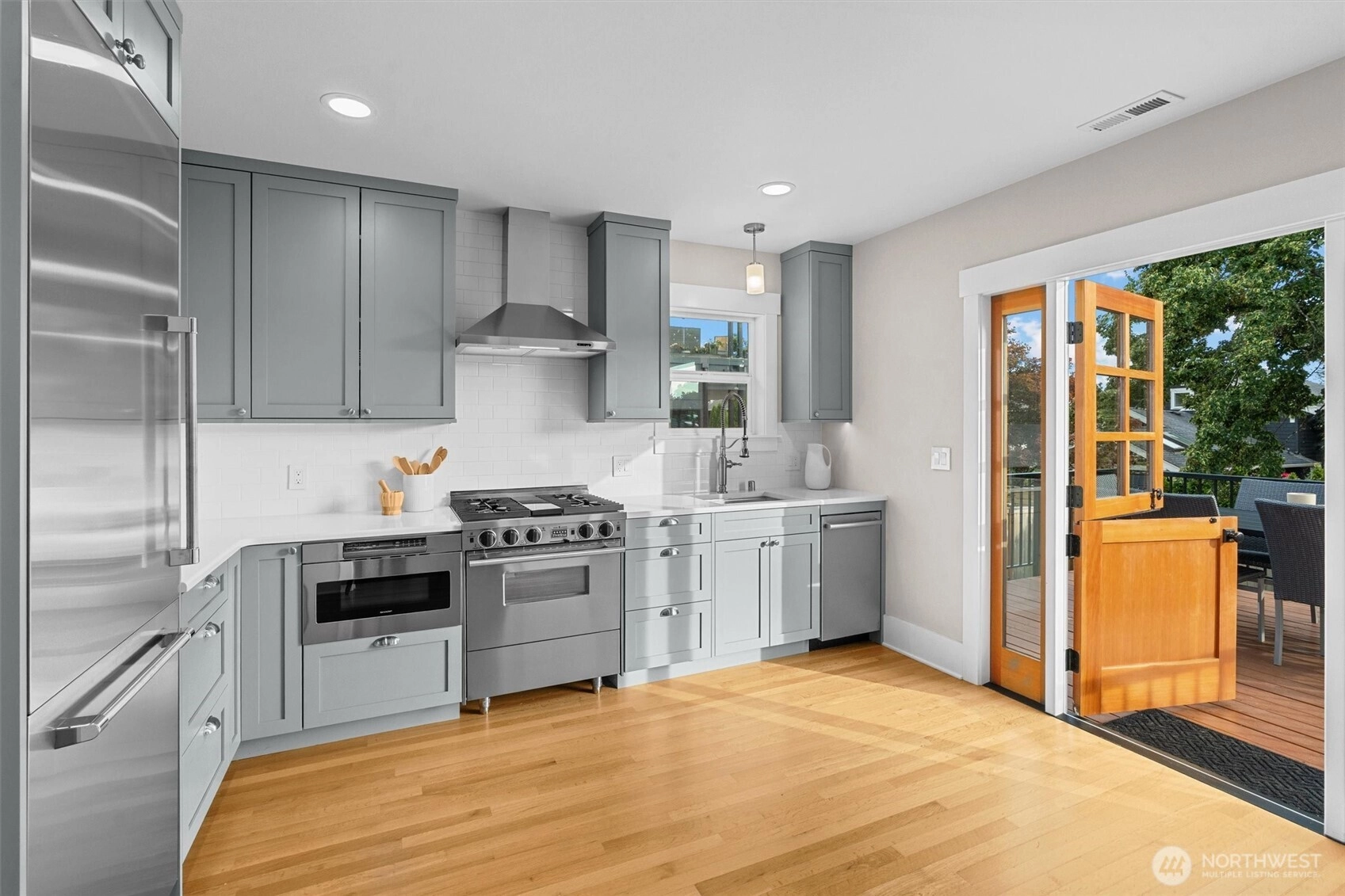 Completely renewed in 2024, this West of Market residence blends timeless character with contemporary style. The home offers 4 bedrooms and 2.5 designer baths, highlighted by an epicurean kitchen, hardwood floors, new windows, and updated systems throughout. An open floor plan extends seamlessly to an expansive deck and private backyard with a greenhouse and irrigated planters—perfect for gatherings or gardening. Added comforts include new A/C, dual EV chargers, and ample storage. Ideally located near Lake WA, DT Kirkland, parks, and acclaimed schools. With the option to add a second story for lake views, this turnkey property delivers both everyday ease and long-term value in one of Kirkland’s most desirable neighborhoods.