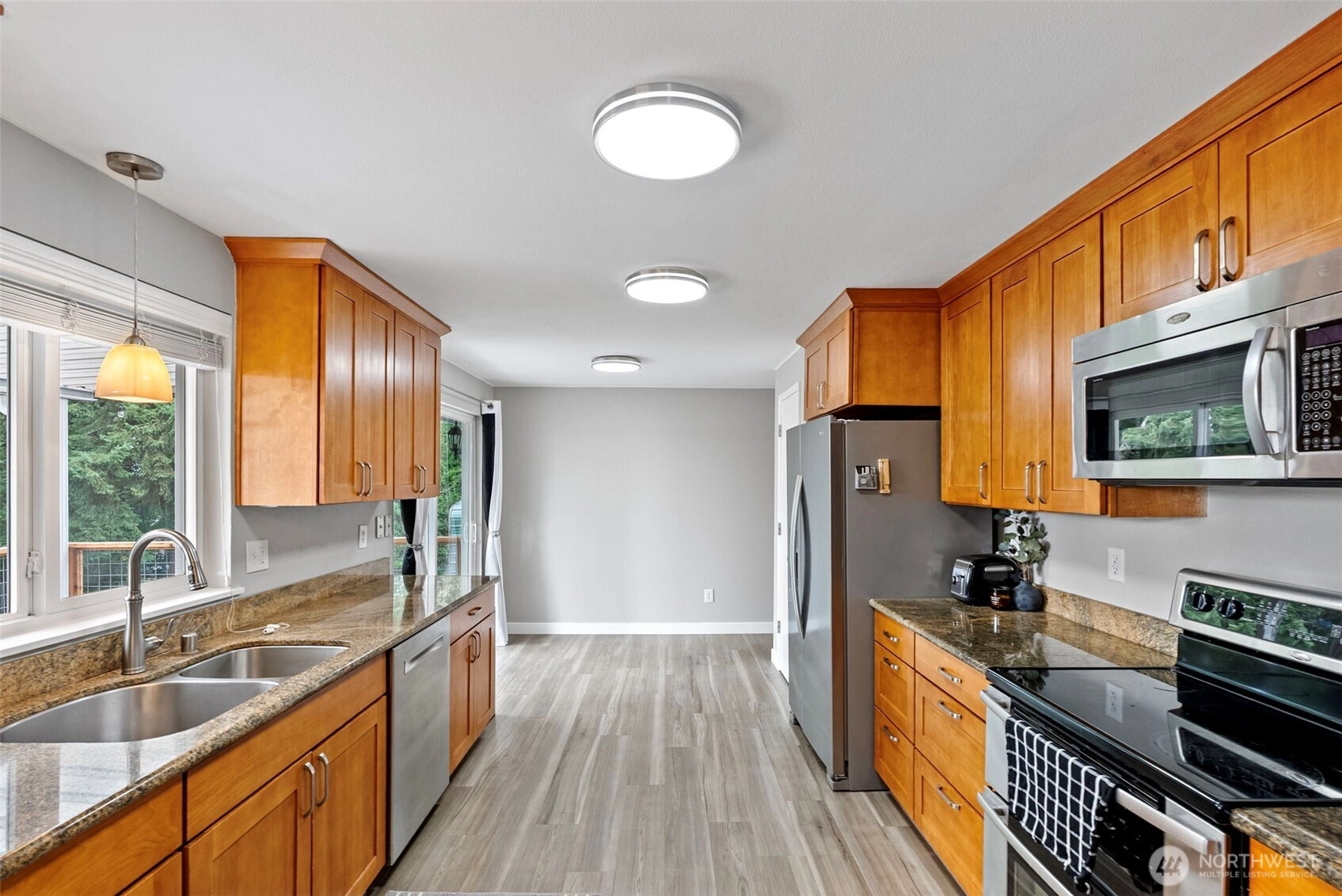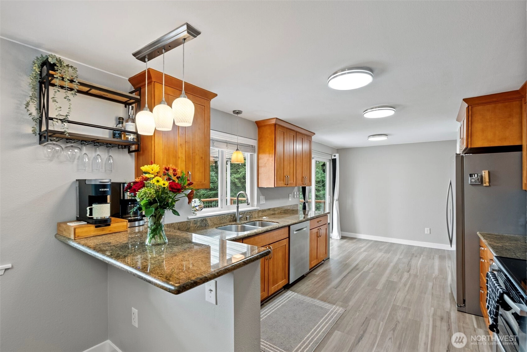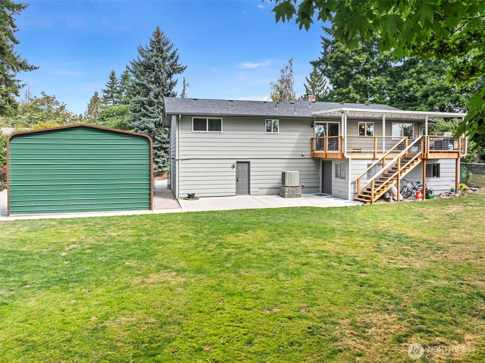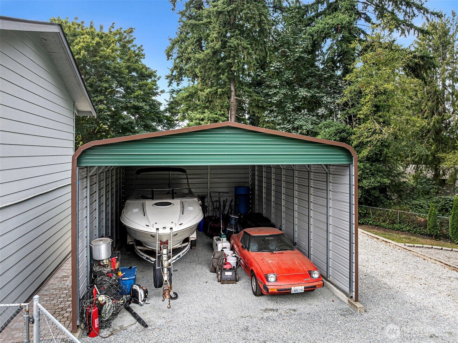 Meticulously maintained in Edgewood! Lives country with convenient location for commuting. Huge lot, RV Parking and covered boat storage at end of a dead end cul-de-sac. Top shelf remodel w new kitchen f. stainless appliances & granite counters flows out to covered entertainment deck (new!). Cozy living room with wood burning fireplace. Generous primary w remodeled en suite bath up. Second living room & home office down, w potential for multi-gen living. NEW roof w transferable warranty! New interior AND exterior paint, heat pump, & water heater w expansion tank. Large half acre lot, fully fenced w garden beds and tons of room to play, and attached shop/storage too! Feeds into coveted Puyallup Schools!!