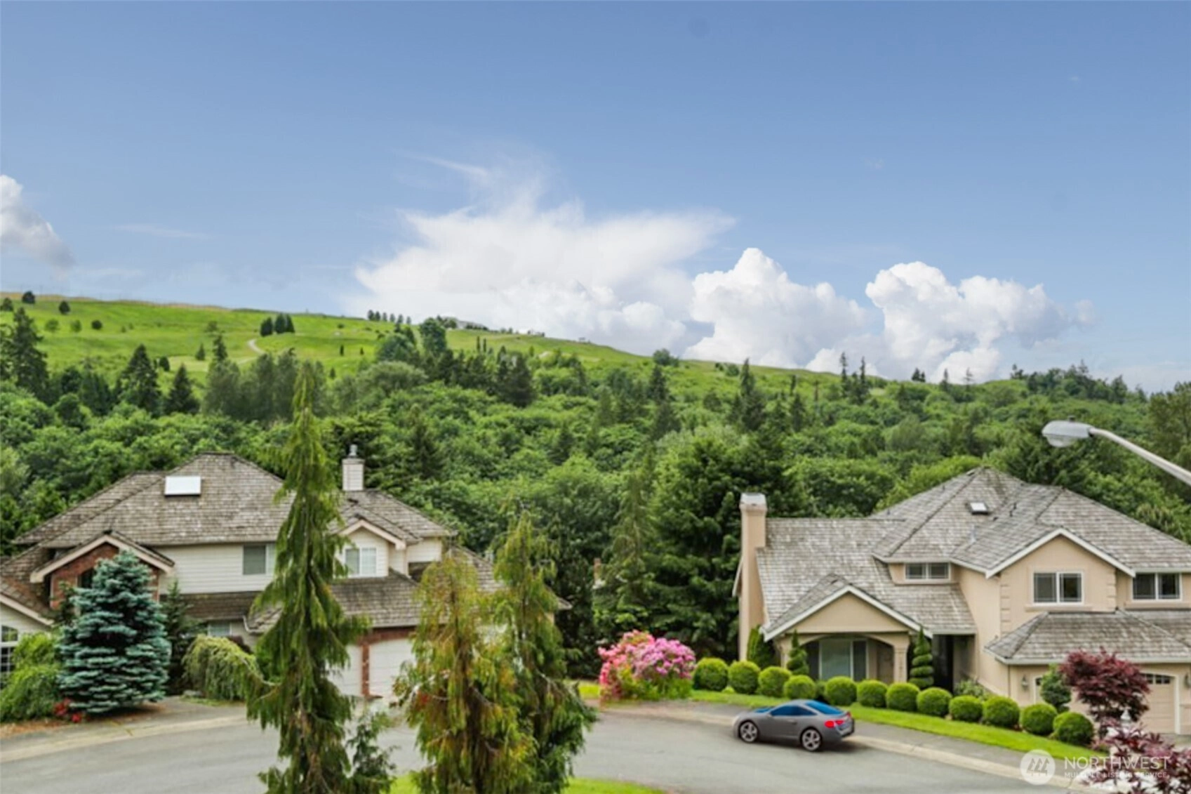Welcome to this stunning Forest Ridge home in the highly rated Issaquah School District, just steps from Cougar Ridge Elementary. Nestled at the end of a quiet cul-de-sac, it offers sweeping views of the Newcastle Golf Club, Olympic Mountains, and downtown Seattle. Thoughtful upgrades include a custom entertainment center, designer finishes, and a spa-inspired primary suite with travertine tile. Outdoors, enjoy a wraparound deck and manicured backyard perfect for entertaining. This is a rare opportunity to own a home that blends luxury, comfort, and location in one of Newcastle’s most sought-after communities.