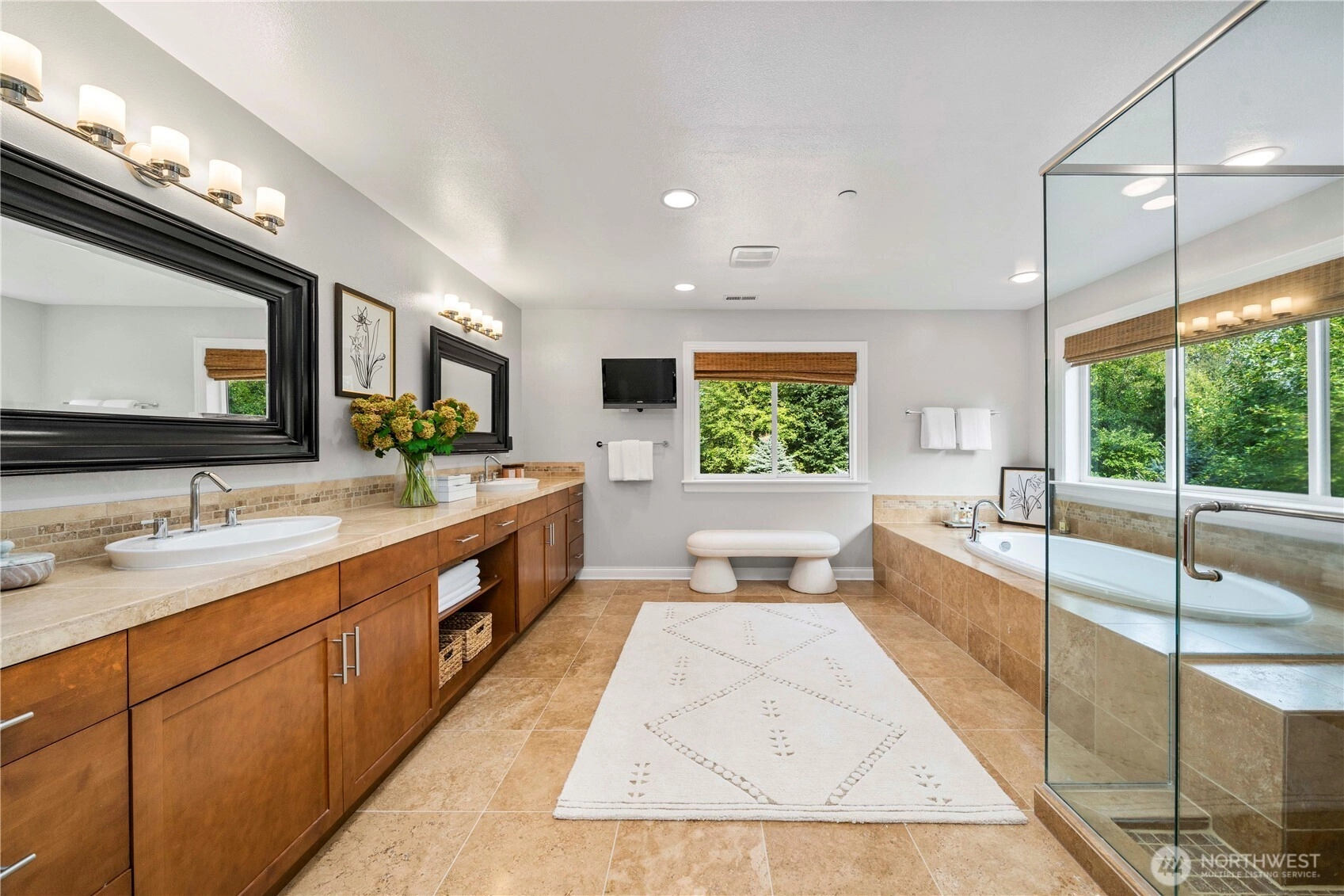 Better than new! Impeccably crafted w/ timeless elegance, this custom home showcases superior quality at every turn. With a privately owned road, the property ensures unmatched privacy while offering a serene retreat in the heart of Bellevue. The chef’s kitchen & spa-inspired baths feature sparkling crystal lighting & matching limestone countertops—an artful balance of luxury & durability. Designed for seamless indoor–outdoor living, the home features a Spa Trainer House (not included in the square footage), built w/ Clear Cedar, ideal for fitness or entertaining. Refined millwork & sophisticated architectural details elevate this property into a rare offering where design & craftsmanship meet in perfect harmony. Top-rated Bellevue Schools.