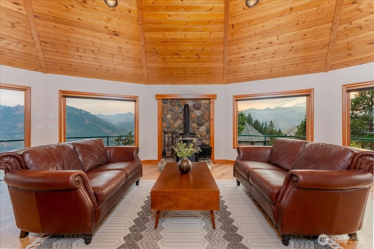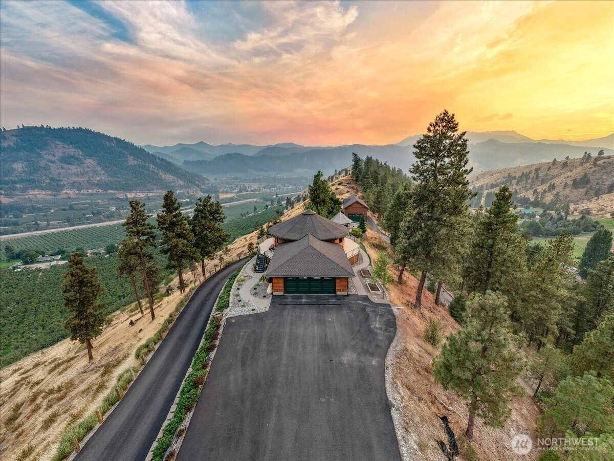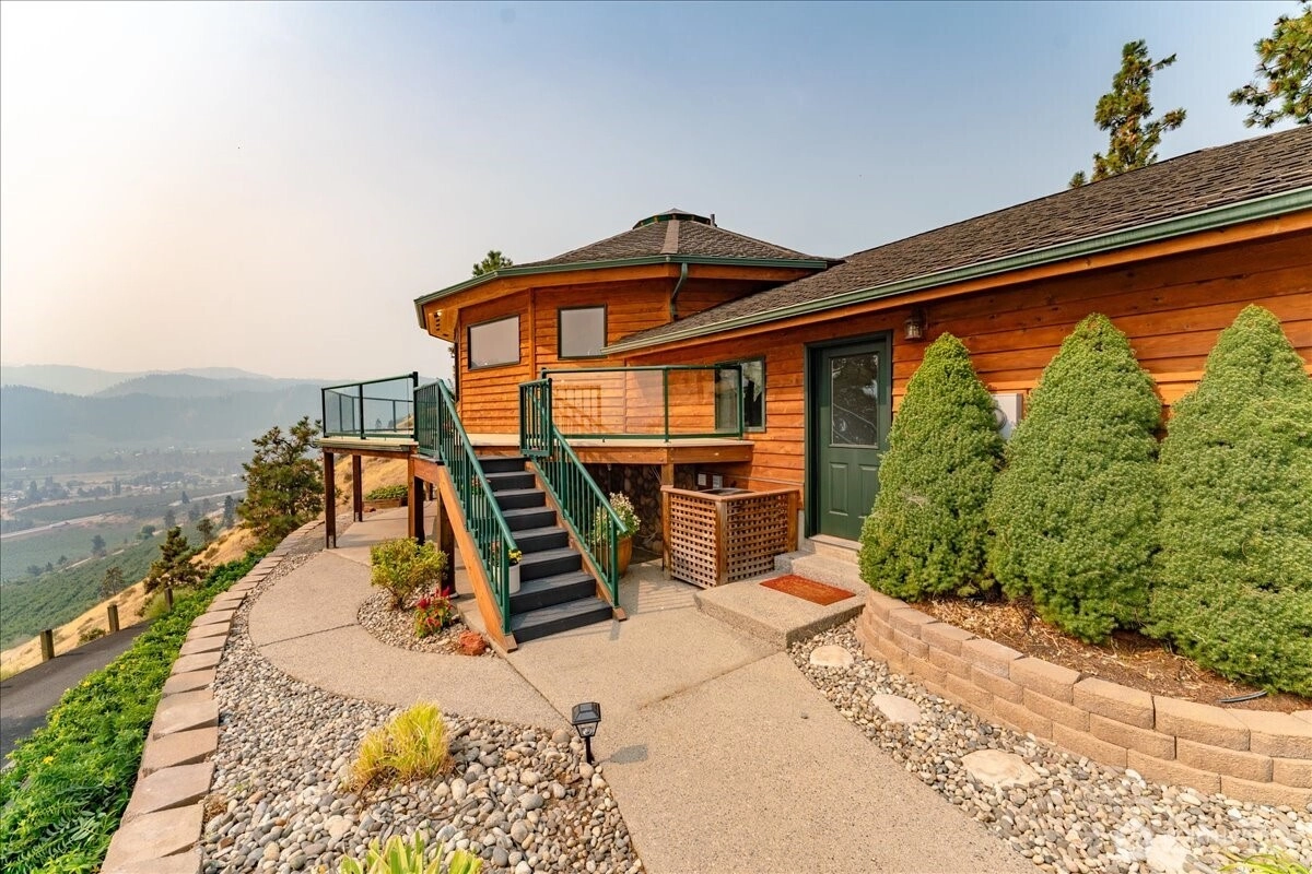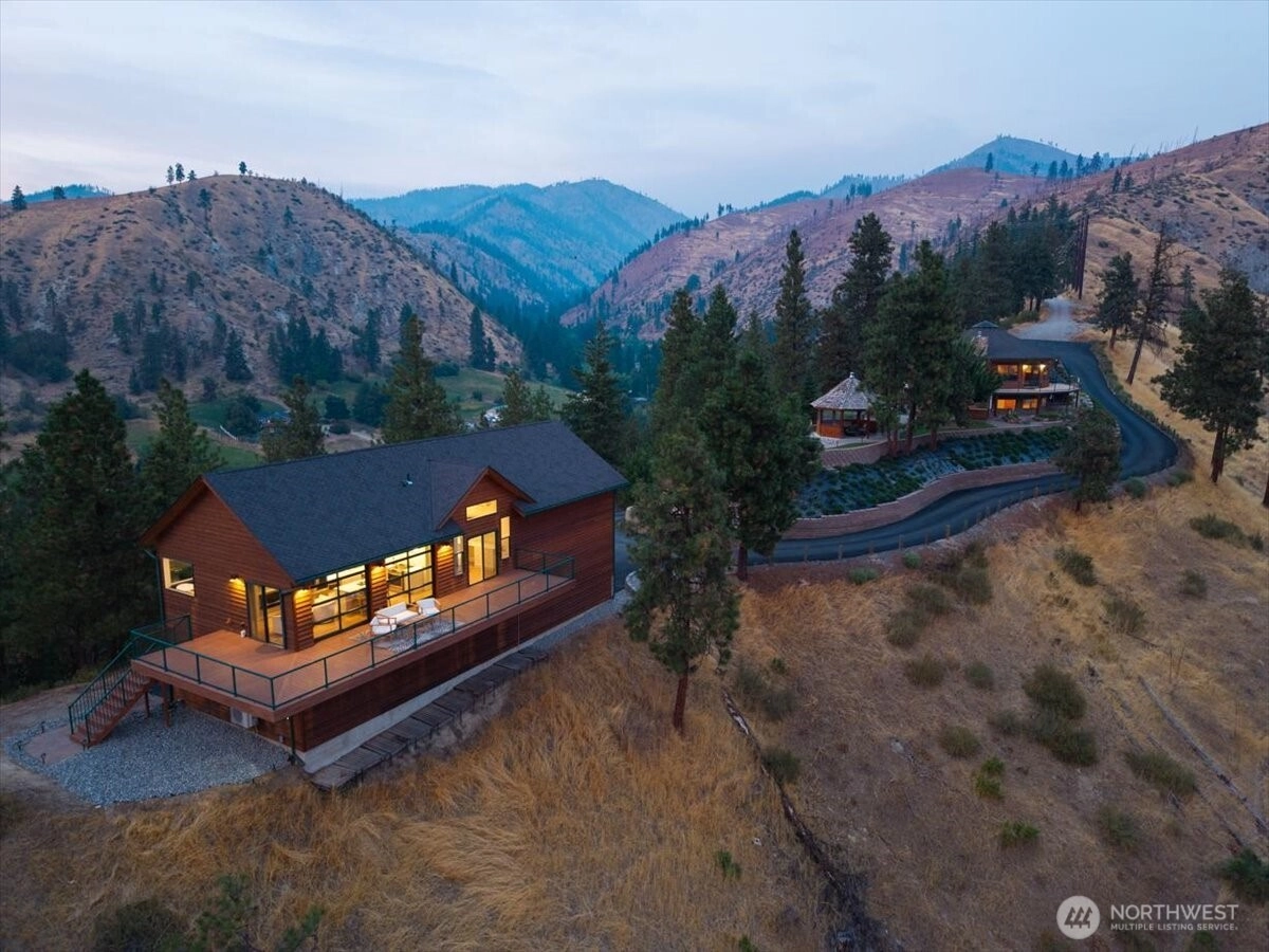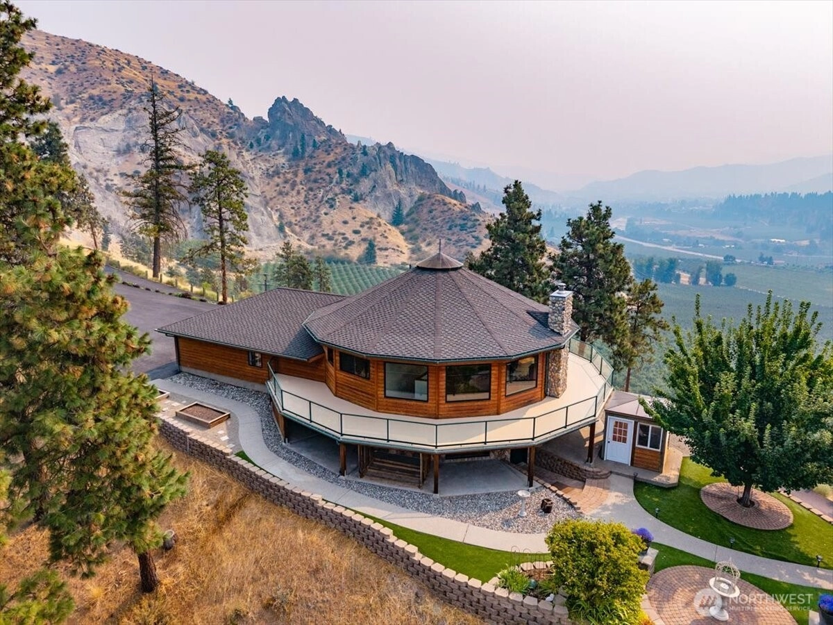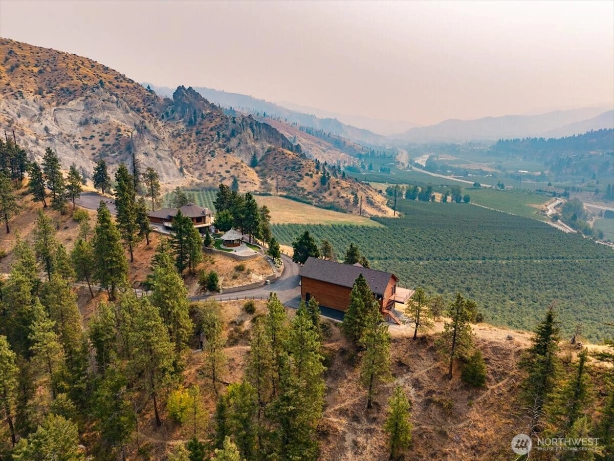 Perched atop your own ridge, this extraordinary home offers complete privacy and panoramic beauty in every direction. Completely renovated custom home leaving no surface untouched. Beautiful pine & groove ceilings, rich hardwood floors, & modern upgrades throughout, including a refreshed kitchen with quartz countertops. Enjoy 360 views of Mt. Cashmere, the Enchantments, Wenatchee River, and more! A remarkable 1,230 sqft, 6-car capacity detached shop with car lift boasts 400 amp power & all the bells and whistles. Detached designer 1-bedroom/1-bath ADU with roll-up garage doors to take in the view, plus a 18x32 metal garage for toys. Landscaped walkways, a gazebo, & 24 acres of serene surroundings make this a truly one-of-a-kind retreat.