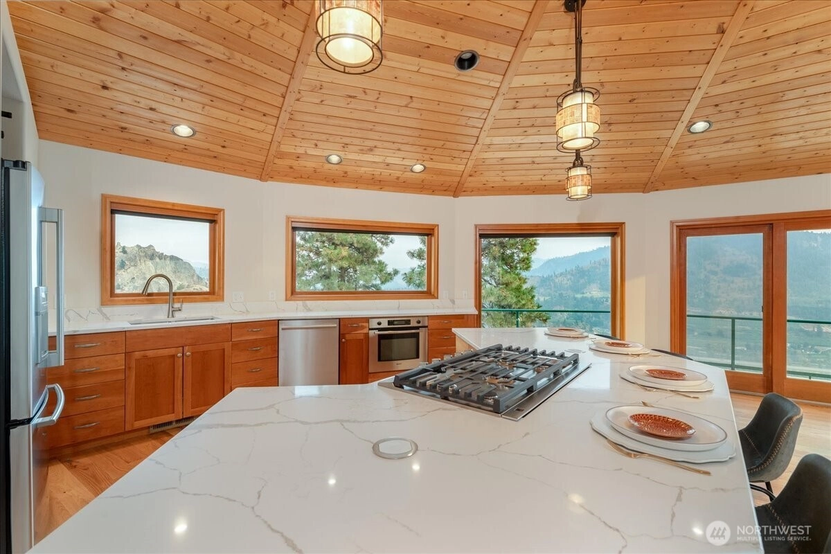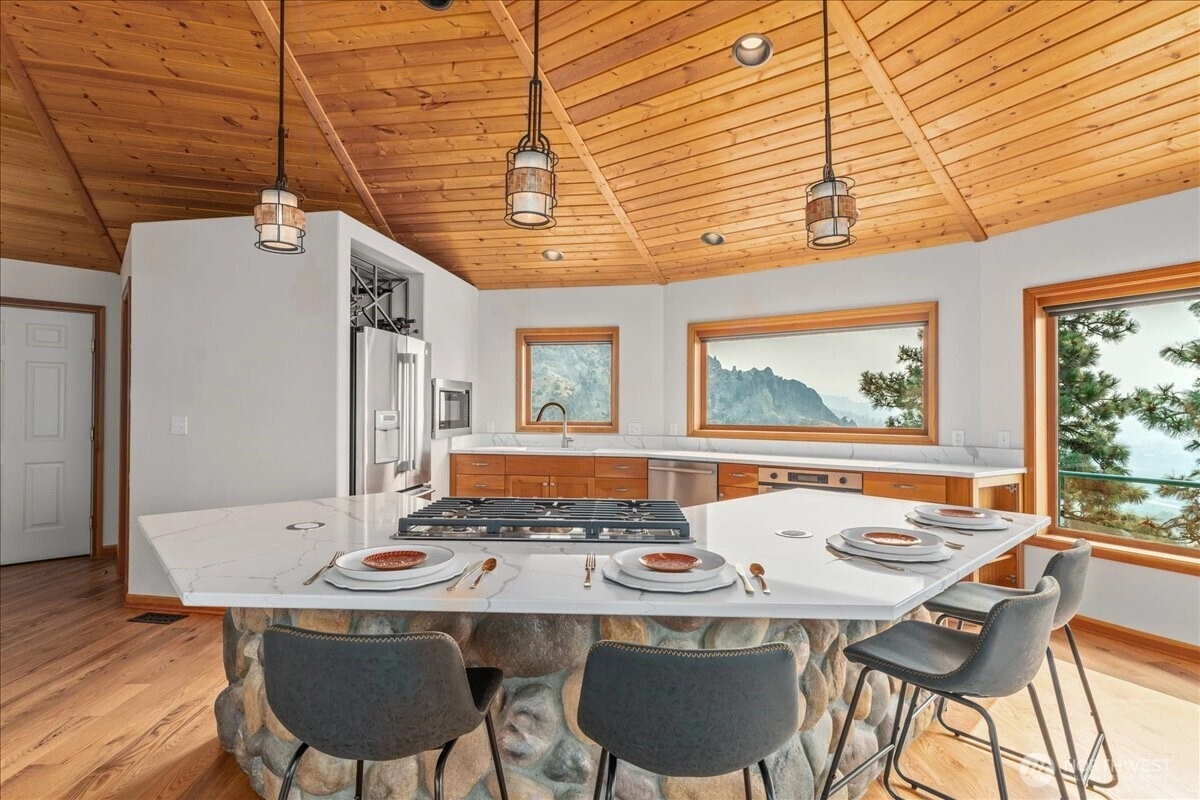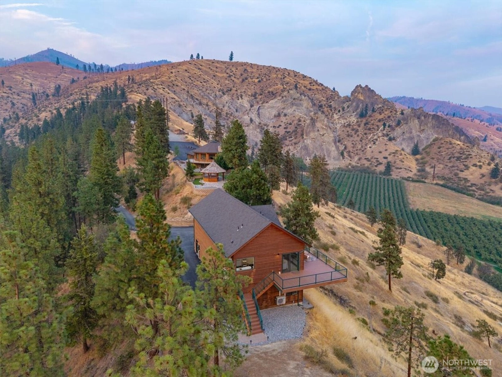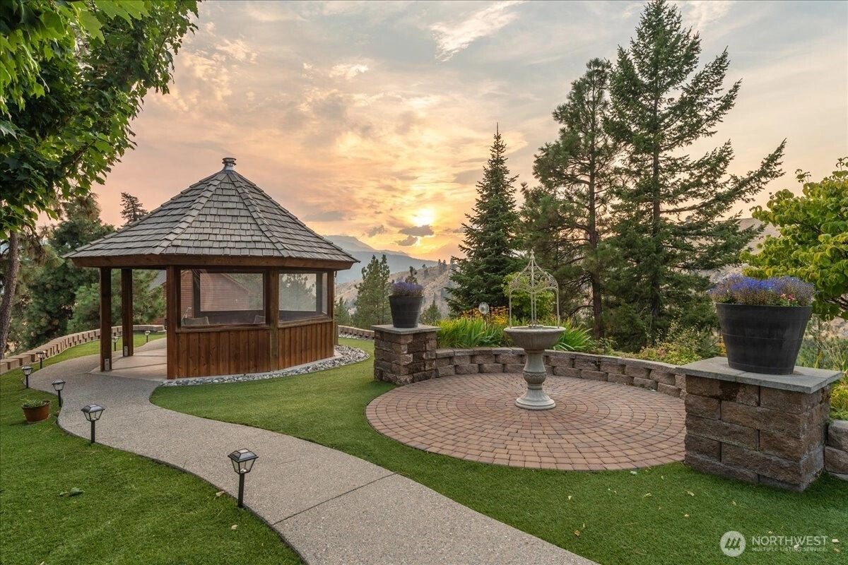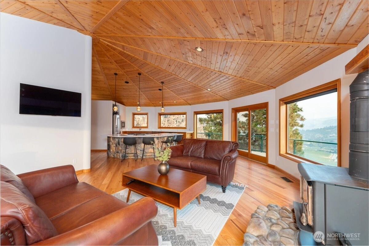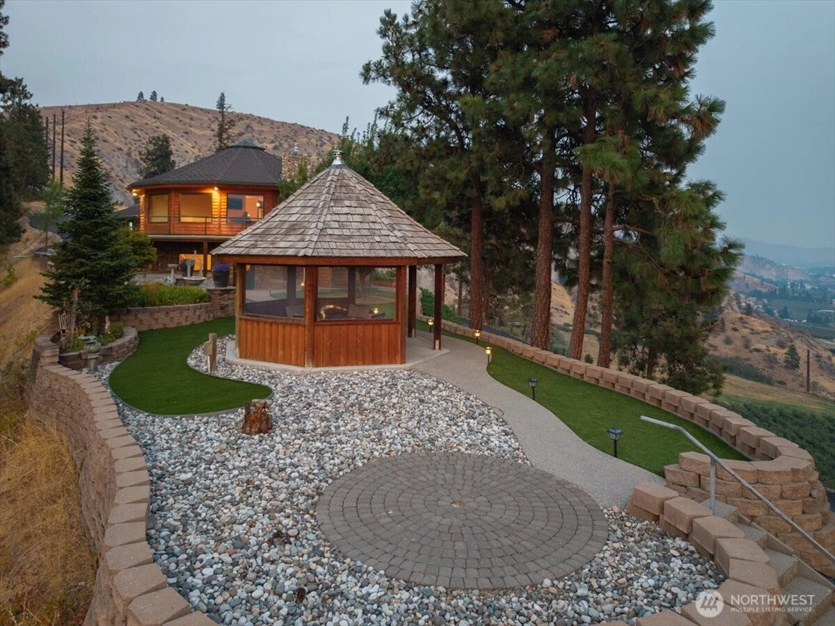 Perched atop your own ridge, this extraordinary home offers complete privacy and panoramic beauty in every direction. Completely renovated custom home leaving no surface untouched. Beautiful pine & groove ceilings, rich hardwood floors, & modern upgrades throughout, including a refreshed kitchen with quartz countertops. Enjoy 360 views of Mt. Cashmere, the Enchantments, Wenatchee River, and more! A remarkable 1,230 sqft, 6-car capacity detached shop with car lift boasts 400 amp power & all the bells and whistles. Detached designer 1-bedroom/1-bath ADU with roll-up garage doors to take in the view, plus a 18x32 metal garage for toys. Landscaped walkways, a gazebo, & 24 acres of serene surroundings make this a truly one-of-a-kind retreat.