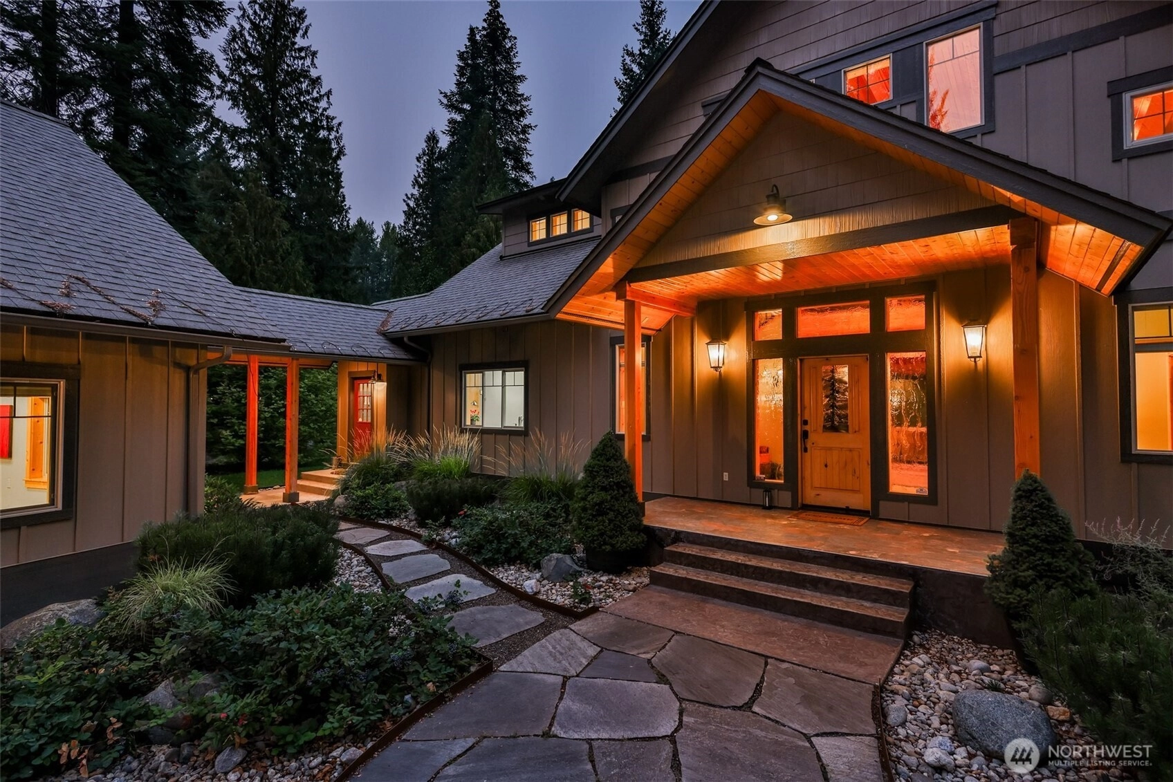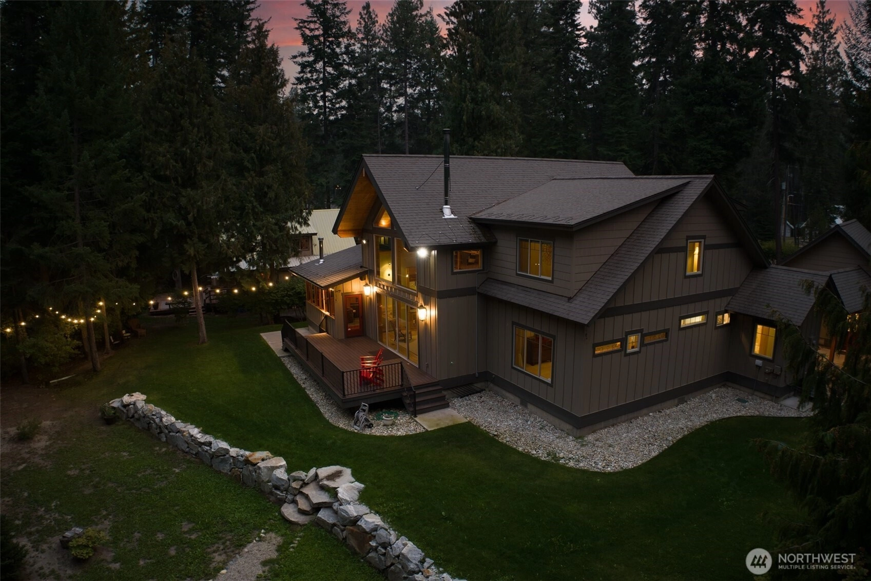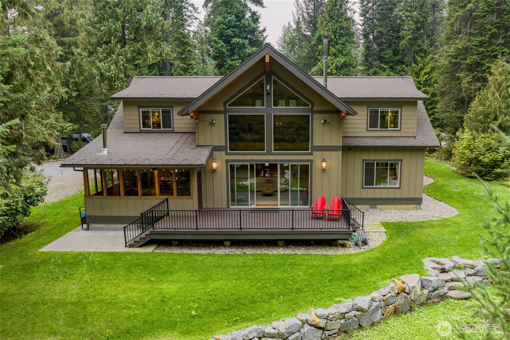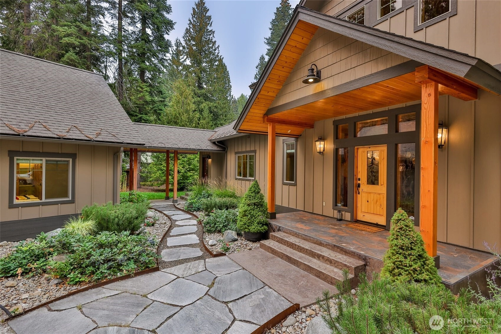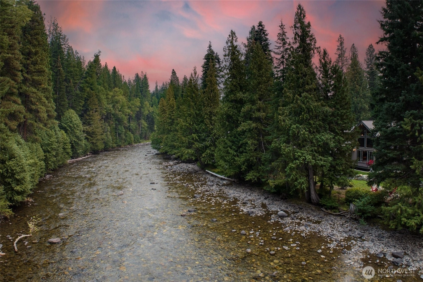Wake to the soothing sounds of the Chiwawa River in this 3,200+ sq. ft. craftsman-inspired home with 120 ft. of premier low-bank frontage in Chiwawa River Pines. The main level showcases a soaring vaulted ceiling and floor-to-ceiling windows that capture sparkling river views, paired with brand-new white oak flooring, a wood stove with river rock surround, and a gourmet kitchen designed for gathering. An enclosed sun porch, sunny office, and serene primary suite complete the space. Upstairs, a loft and two ensuite bedrooms provide private havens. Off the garage, a bonus room with a half bath offers a versatile escape. Outside, linger on the sundeck, play on the lawn, or gather by the fire pit beneath the stars—luxury on the river awaits.