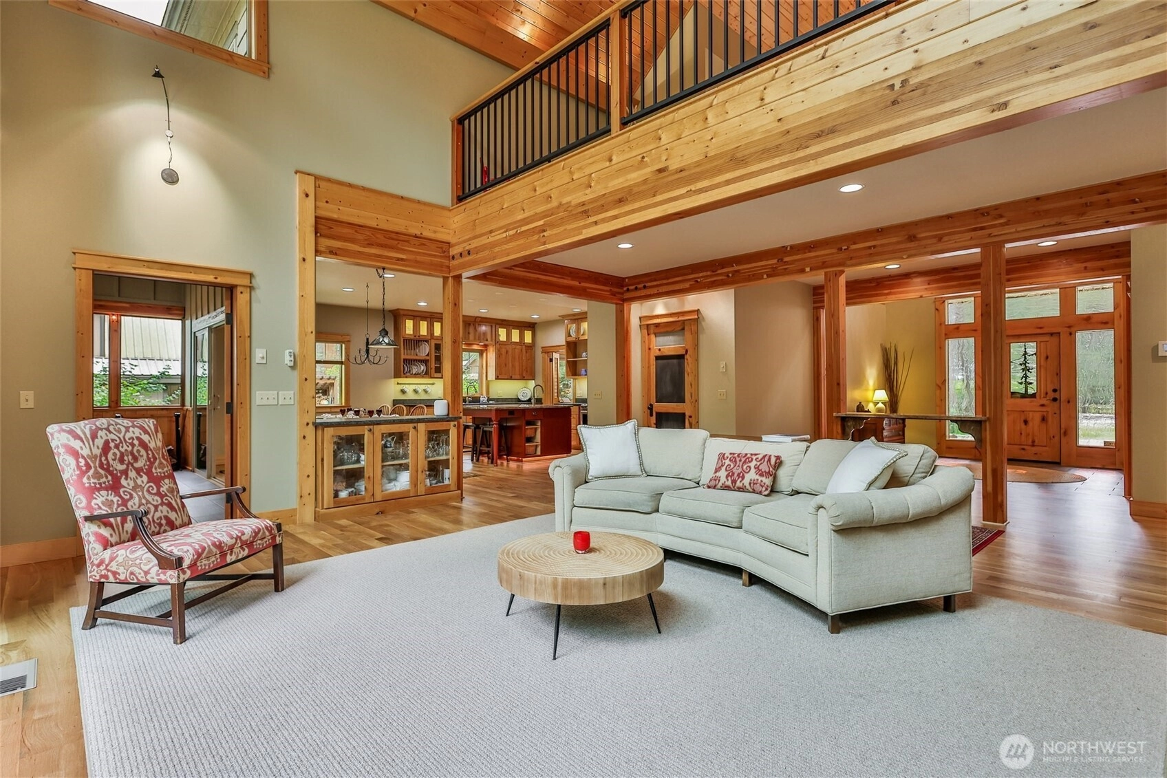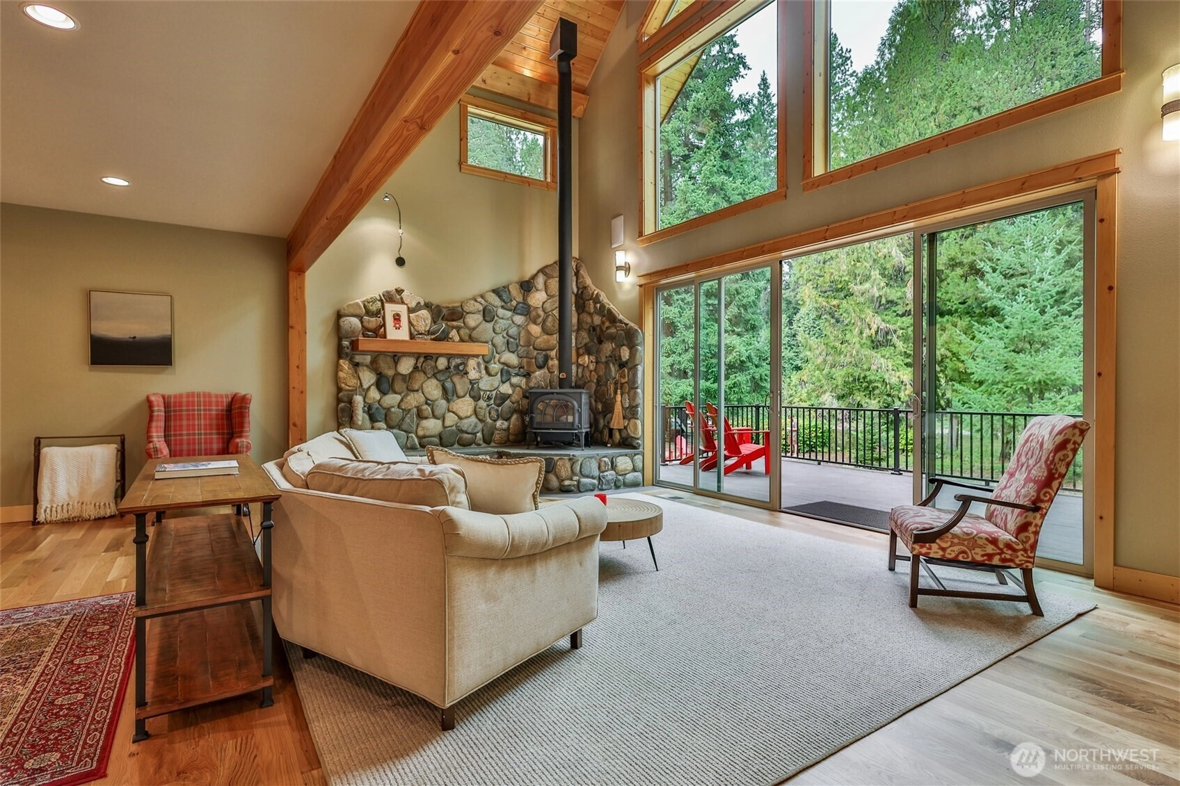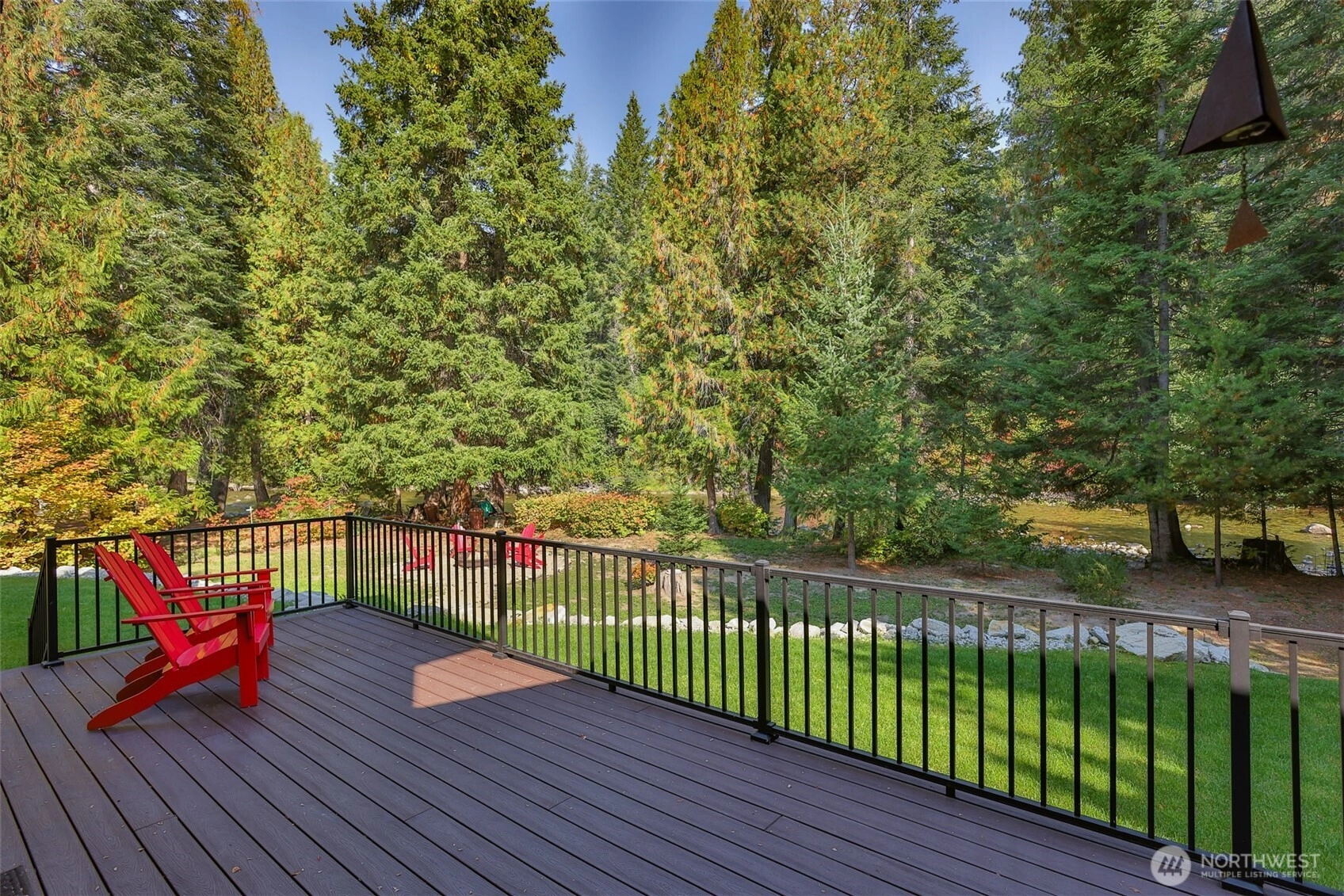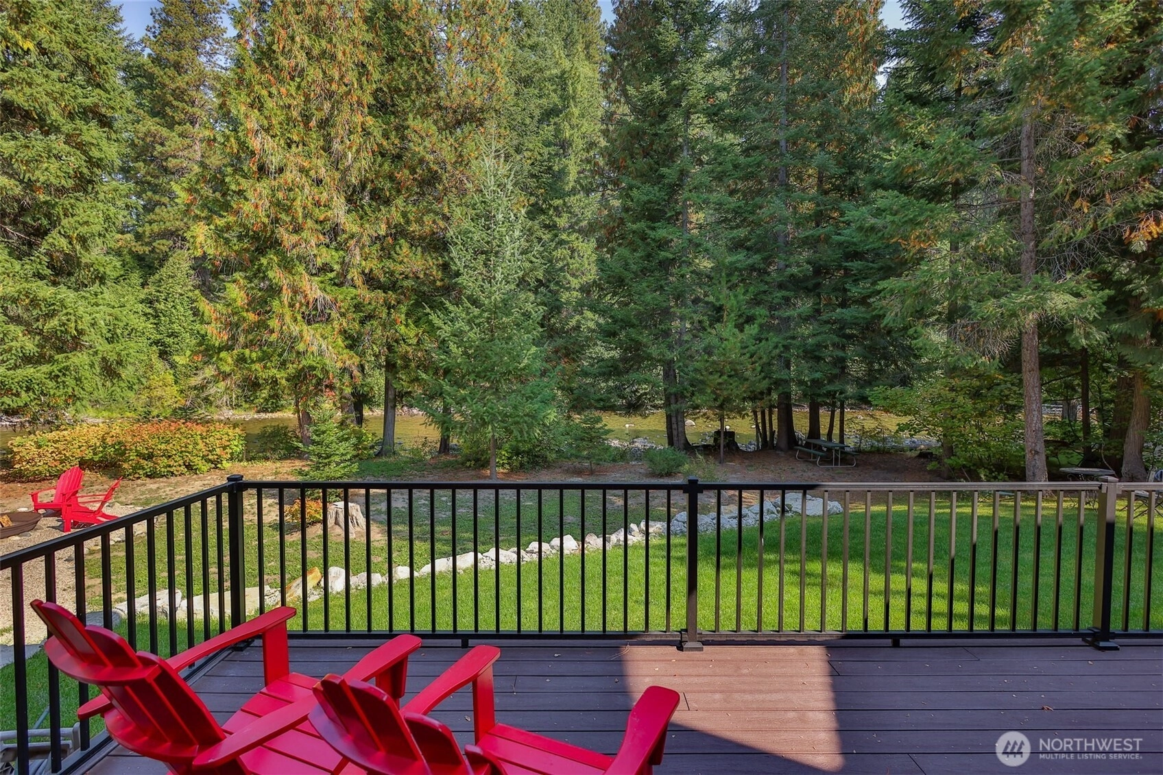 Wake to the soothing sounds of the Chiwawa River in this 3,200+ sq. ft. craftsman-inspired home with 120 ft. of premier low-bank frontage in Chiwawa River Pines. The main level showcases a soaring vaulted ceiling and floor-to-ceiling windows that capture sparkling river views, paired with brand-new white oak flooring, a wood stove with river rock surround, and a gourmet kitchen designed for gathering. An enclosed sun porch, sunny office, and serene primary suite complete the space. Upstairs, a loft and two ensuite bedrooms provide private havens. Off the garage, a bonus room with a half bath offers a versatile escape. Outside, linger on the sundeck, play on the lawn, or gather by the fire pit beneath the stars—luxury on the river awaits.