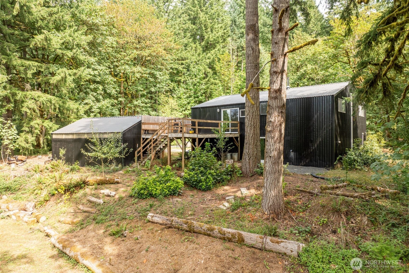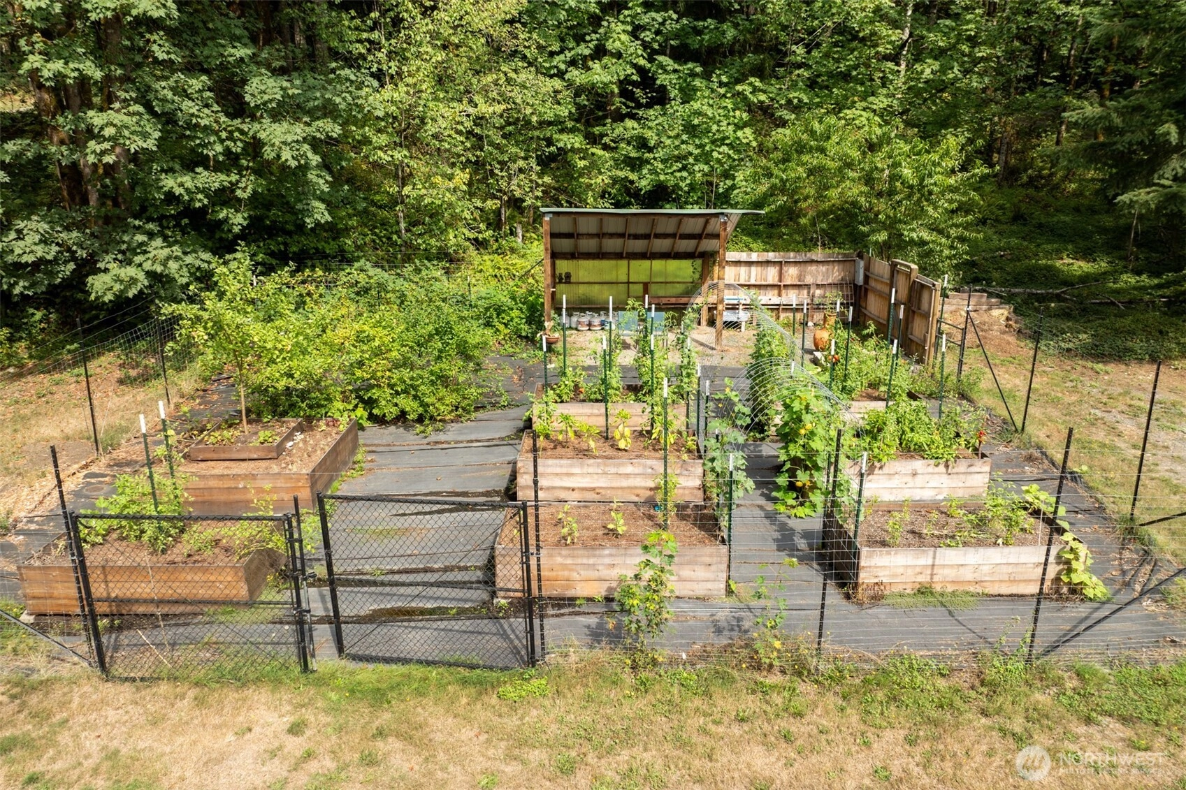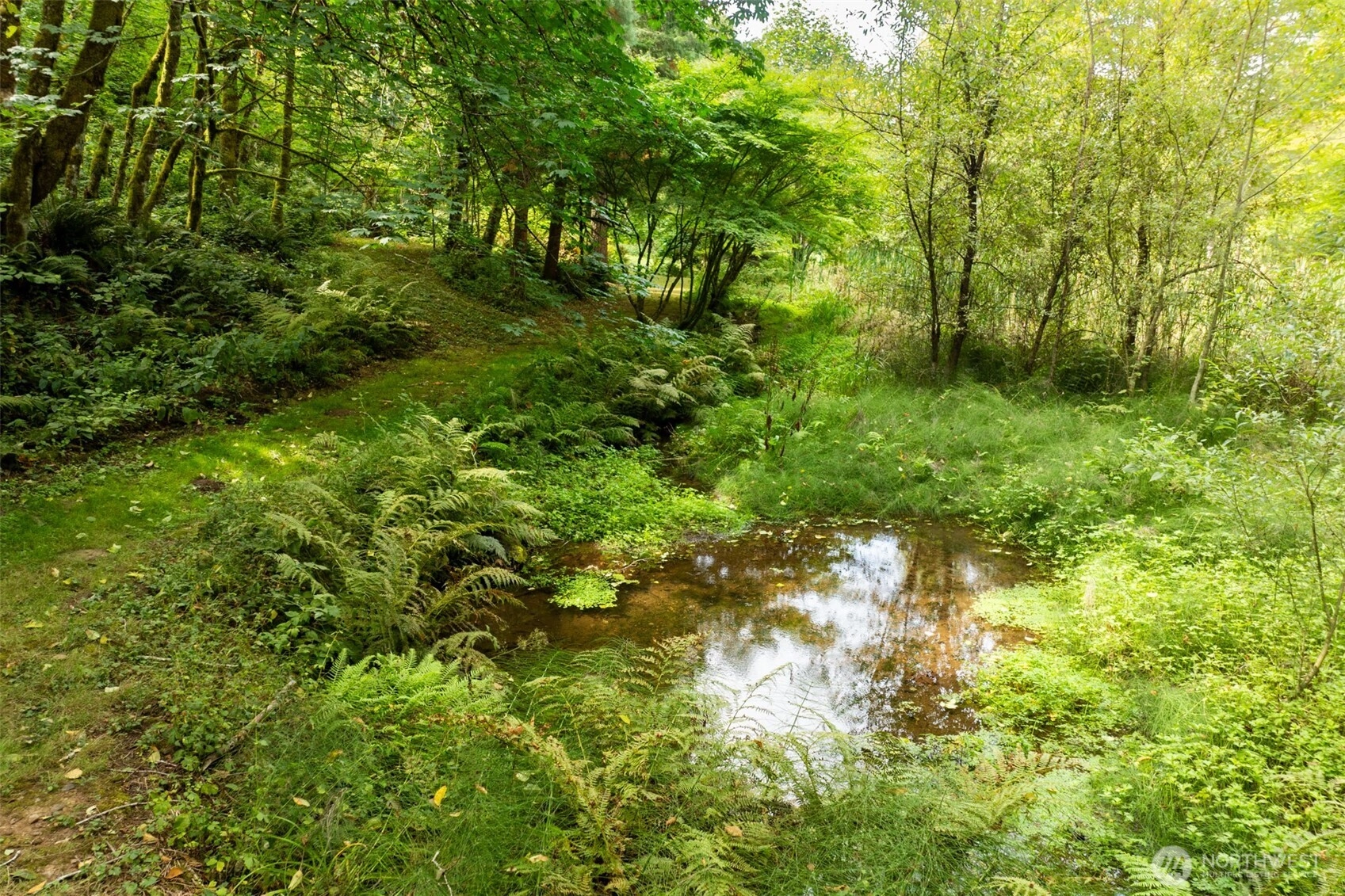 Rarely do properties like this come available. This unique offering allows you to live comfortably in a one bedroom apartment with 2 living areas, kitchen, bathroom and garage space while building your own custom home OR simply embrace the beauty of minimalist living with direct access to nature. The property features a flat building site, utilities in place, and a 4-bedroom septic ready to go along with a separate storage building or workshop . Located in a peaceful gated community on 5 private acres, you’ll enjoy your own ponds, walking trails, a stunning garden, and plenty of space to roam and explore. Let your imagination run wild, this is your chance to truly experience the magic of Pacific Northwest living.