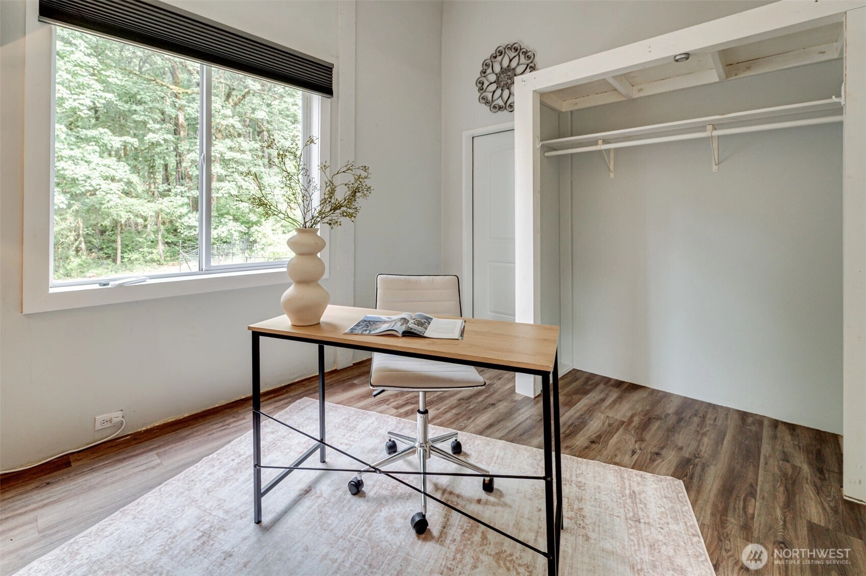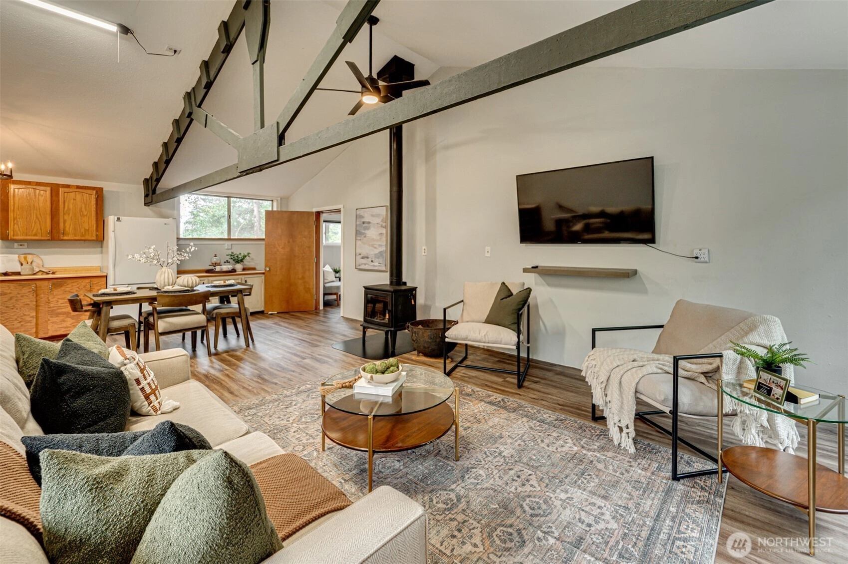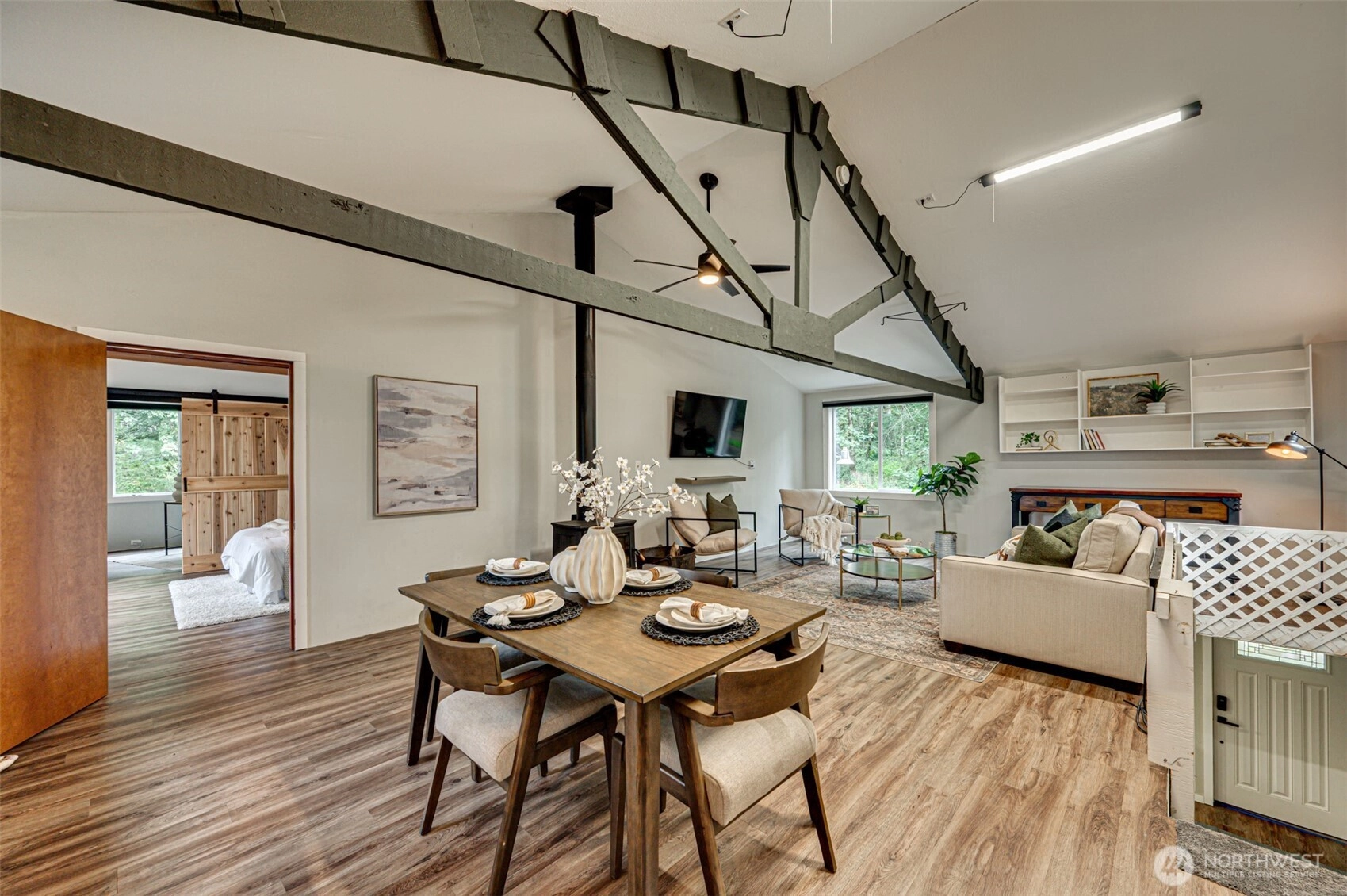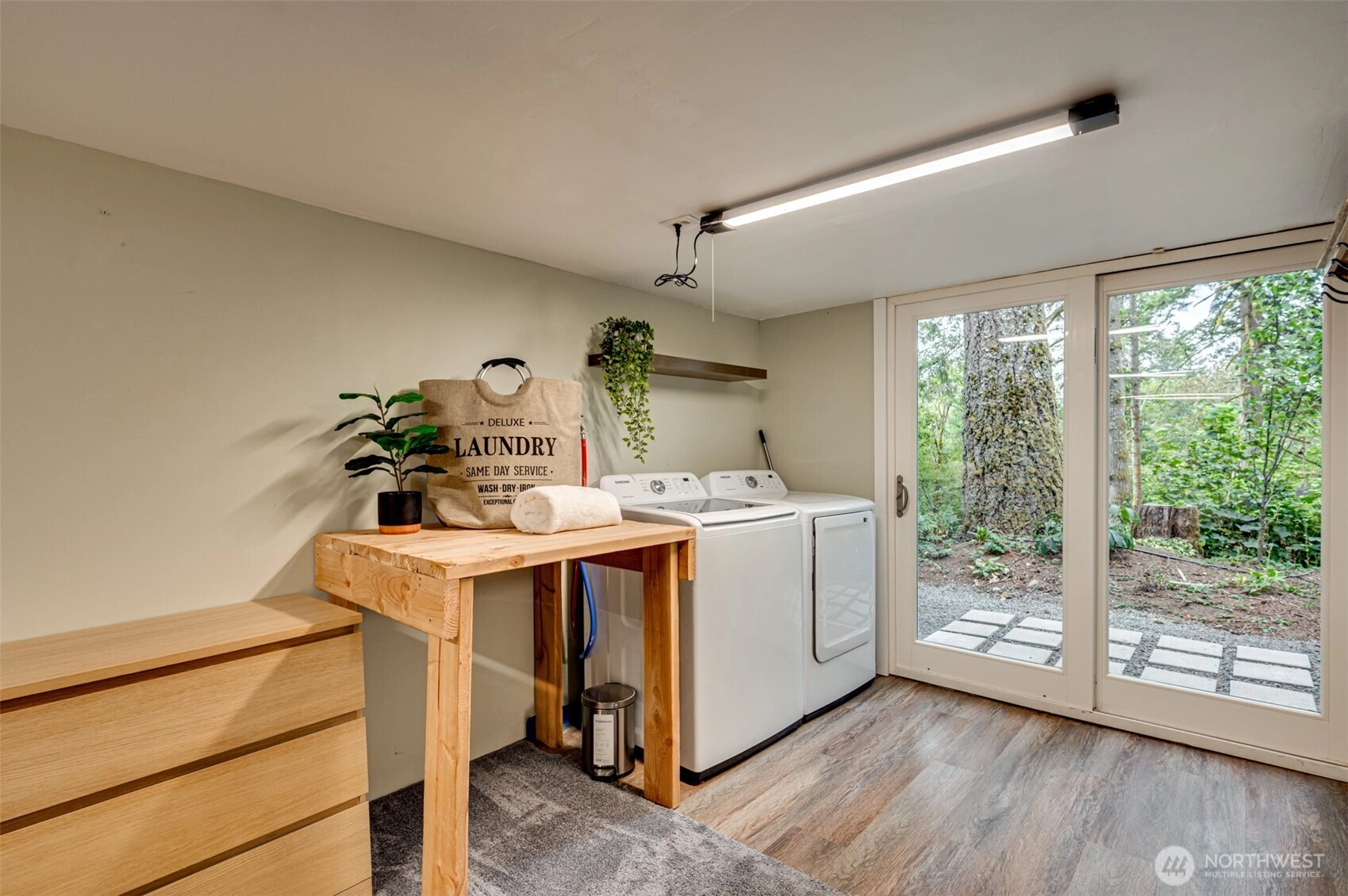 Rarely do properties like this come available. This unique offering allows you to live comfortably in a one bedroom apartment with 2 living areas, kitchen, bathroom and garage space while building your own custom home OR simply embrace the beauty of minimalist living with direct access to nature. The property features a flat building site, utilities in place, and a 4-bedroom septic ready to go along with a separate storage building or workshop . Located in a peaceful gated community on 5 private acres, you’ll enjoy your own ponds, walking trails, a stunning garden, and plenty of space to roam and explore. Let your imagination run wild, this is your chance to truly experience the magic of Pacific Northwest living.