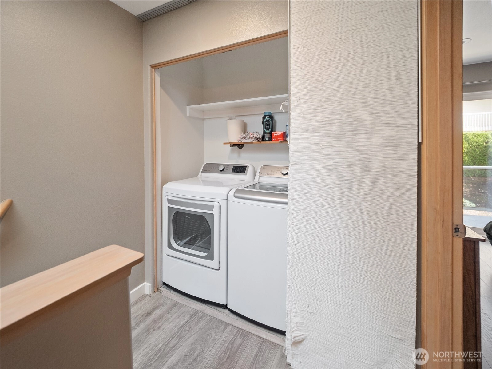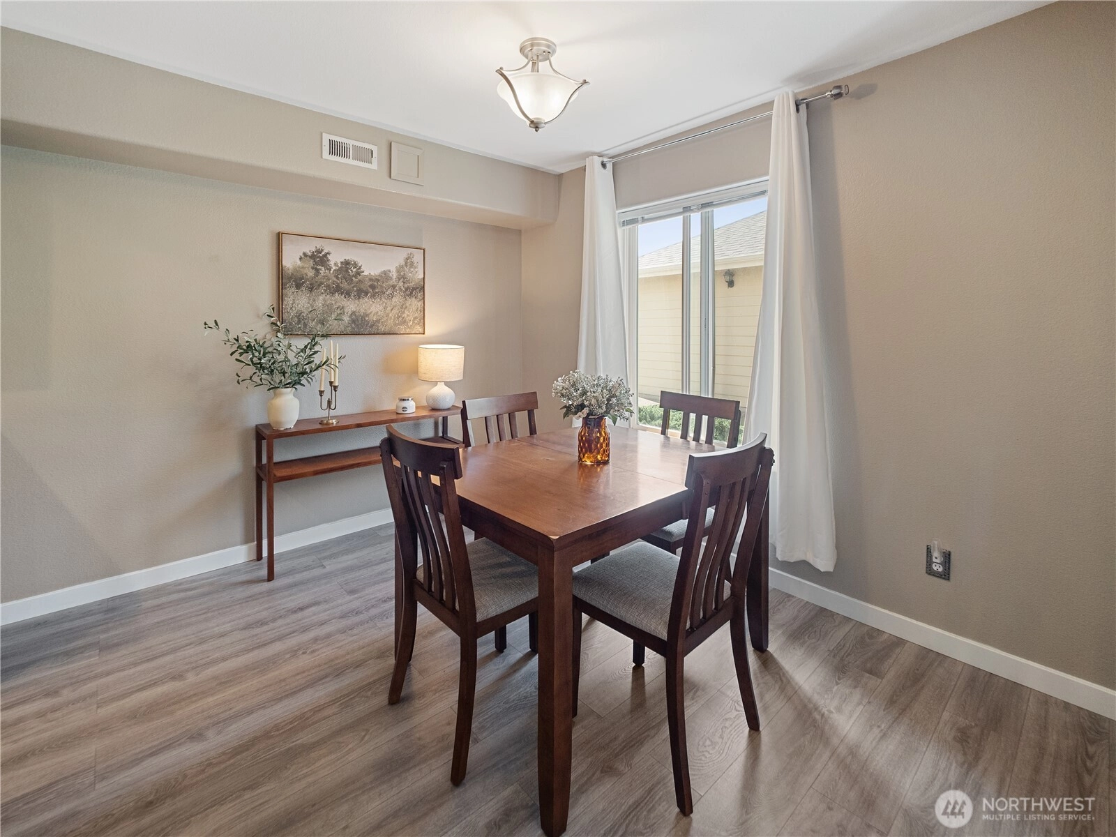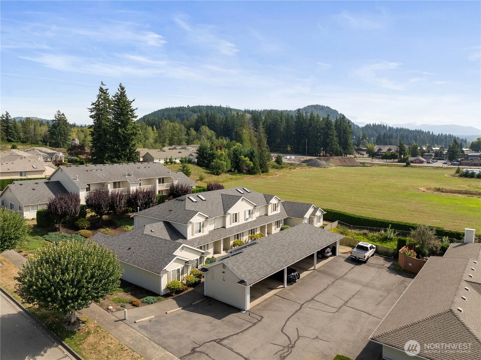 Welcome to Foothills Ridge in Enumclaw! Nicely updated 2-bedroom, 1.5 bath, 1,085SF home boasts a pristine interior and exterior, offering ample storage space and its own private backyard and patio. Both bedrooms feature huge walk-in closets, LVP flooring & one w/ a slider to the balcony & lockable storage closet. Spacious living room w/ gas fireplace insert & LVP flooring. Stainless appliances, glass tile backsplash & slab quartz counters in the kitchen. Full bath w/ dual sink vanity, tile floors & tile shower surround. Newer gas furnace & water heater. 1-car carport parking assigned w/ storage. Nestled near skiing, hiking trails, & open spaces, Enumclaw provides a charming, sparse suburban feel w/ numerous, shops, parks, and restaurants.