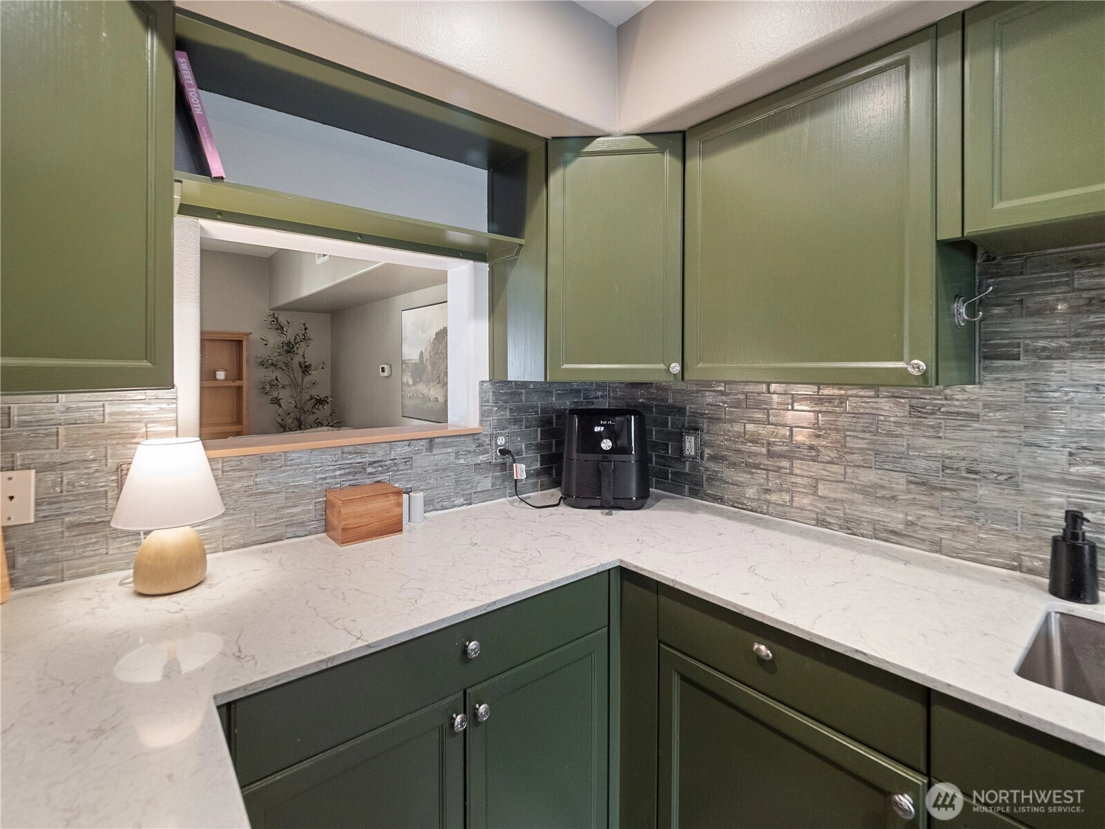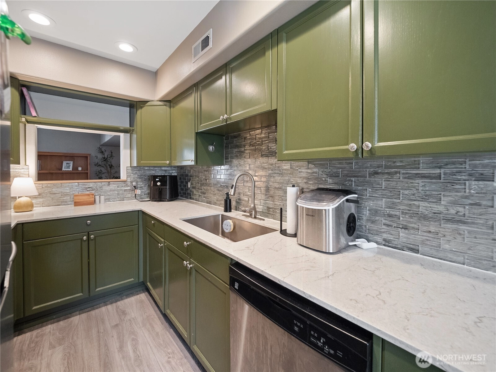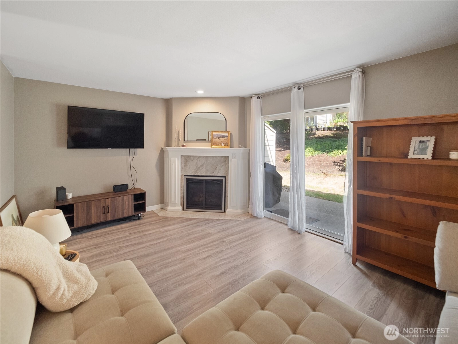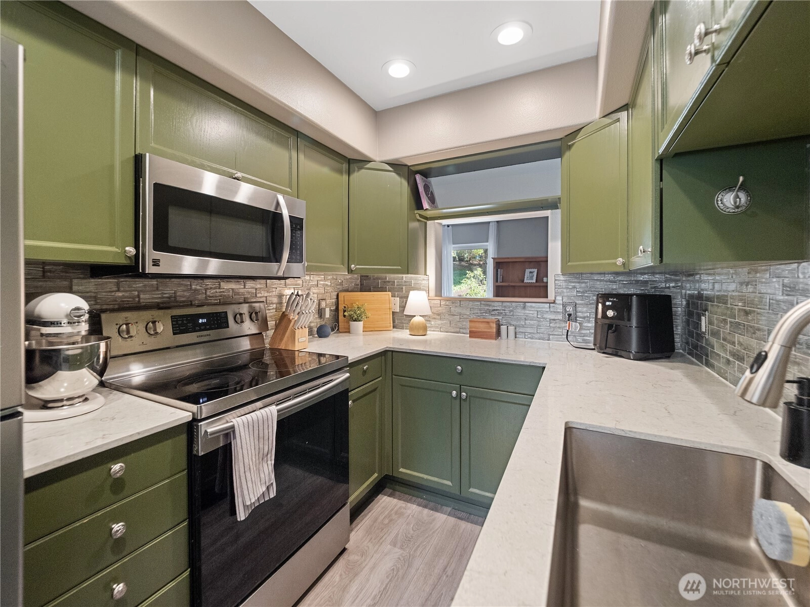 Welcome to Foothills Ridge in Enumclaw! Nicely updated 2-bedroom, 1.5 bath, 1,085SF home boasts a pristine interior and exterior, offering ample storage space and its own private backyard and patio. Both bedrooms feature huge walk-in closets, LVP flooring & one w/ a slider to the balcony & lockable storage closet. Spacious living room w/ gas fireplace insert & LVP flooring. Stainless appliances, glass tile backsplash & slab quartz counters in the kitchen. Full bath w/ dual sink vanity, tile floors & tile shower surround. Newer gas furnace & water heater. 1-car carport parking assigned w/ storage. Nestled near skiing, hiking trails, & open spaces, Enumclaw provides a charming, sparse suburban feel w/ numerous, shops, parks, and restaurants.