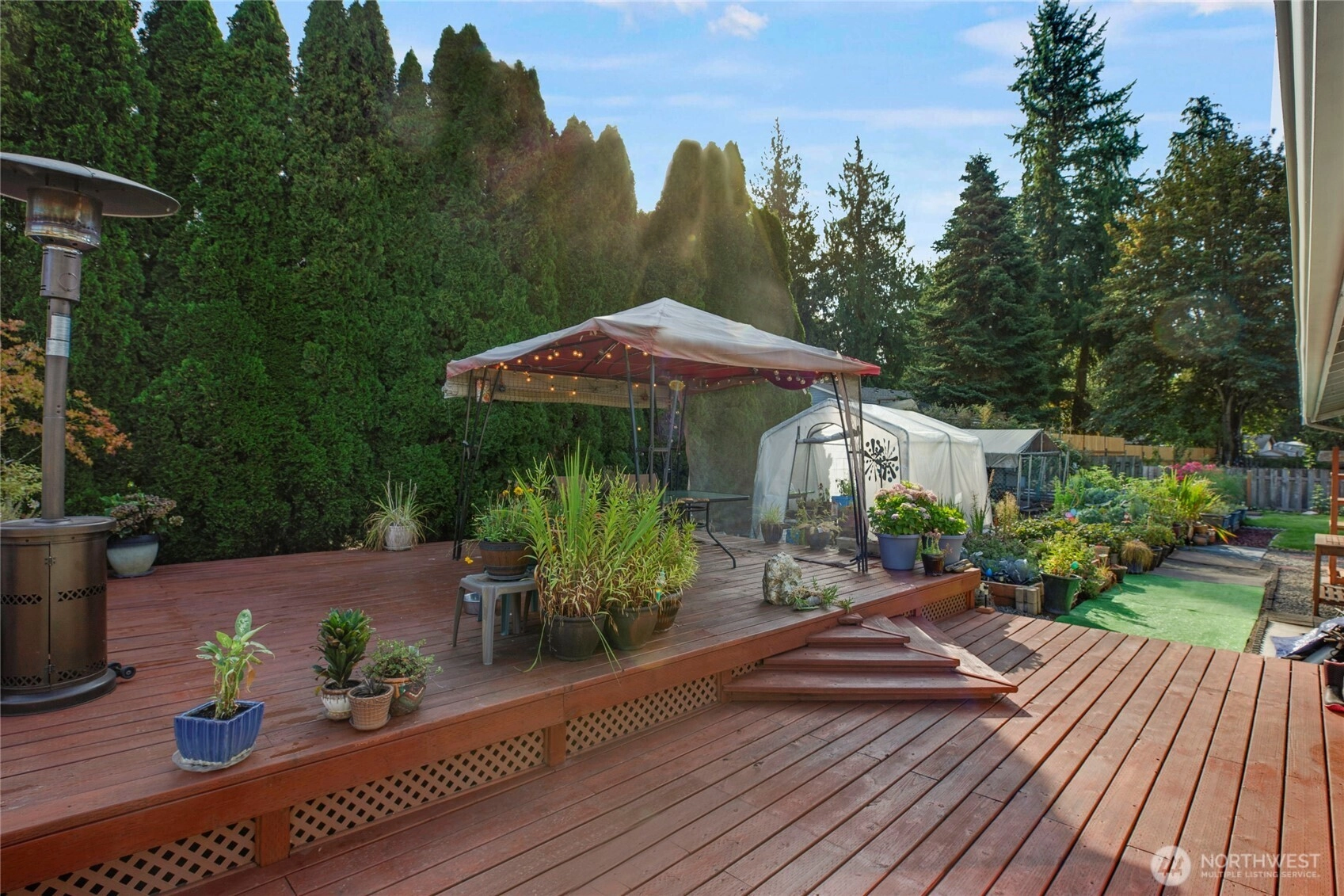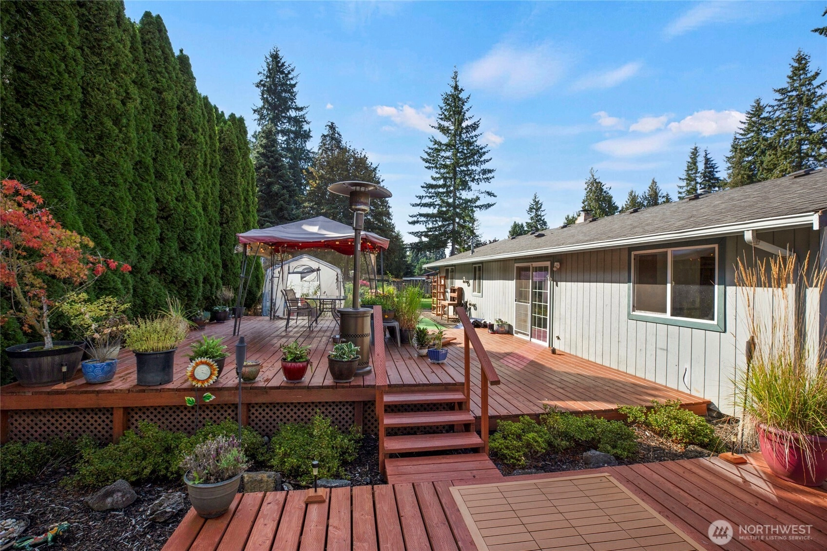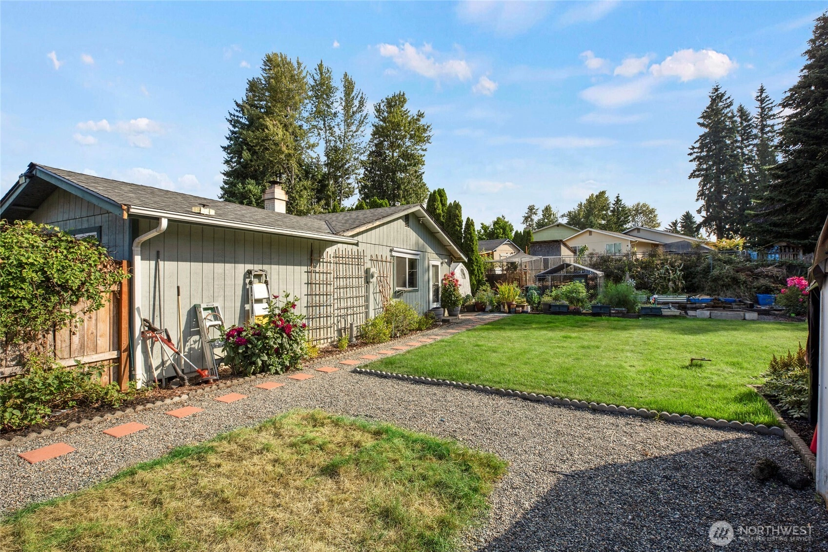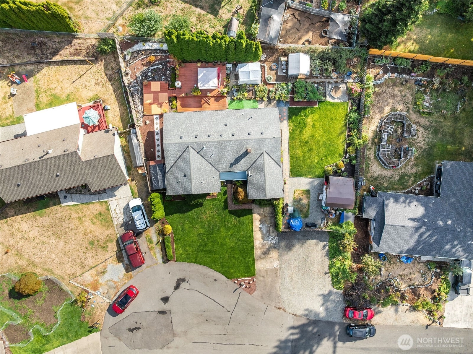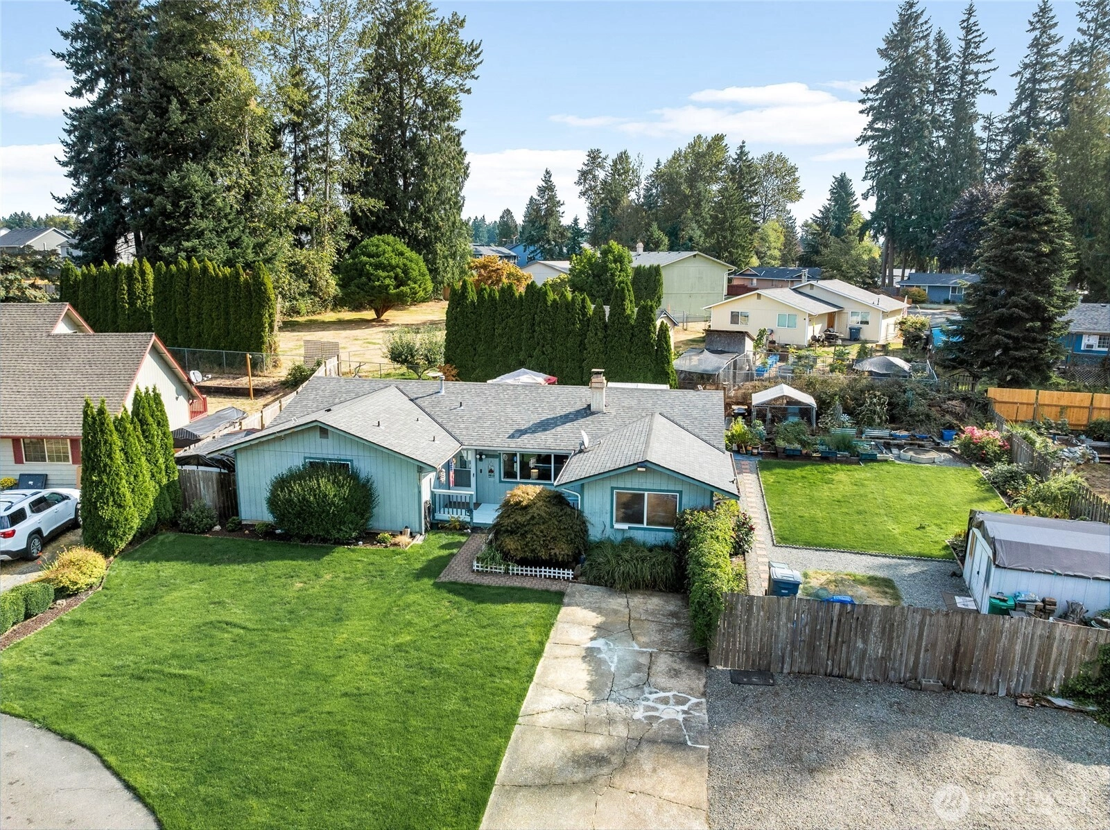Quiet cul-de-sac living in desirable Bonney Lake! This vintage 1977 home blends classic 70’s charm with thoughtful updates and abundant outdoor space. Enjoy a fully fenced yard with mature landscaping, fresh lawns, raised garden beds, a greenhouse with herbs, and a custom three-tier deck perfect for entertaining. A 10x10 enclosed pen with hutch/coop and two bonus sheds provide extra storage or hobby space. Inside features include a cozy custom fireplace, a flex room for a 4th bedroom or office, a spacious family/flex room, and a utility/laundry room with side-yard access. Four Ring cameras add peace of mind and convenience. A well-loved home ready for its next chapter—come see how you can make it your own!