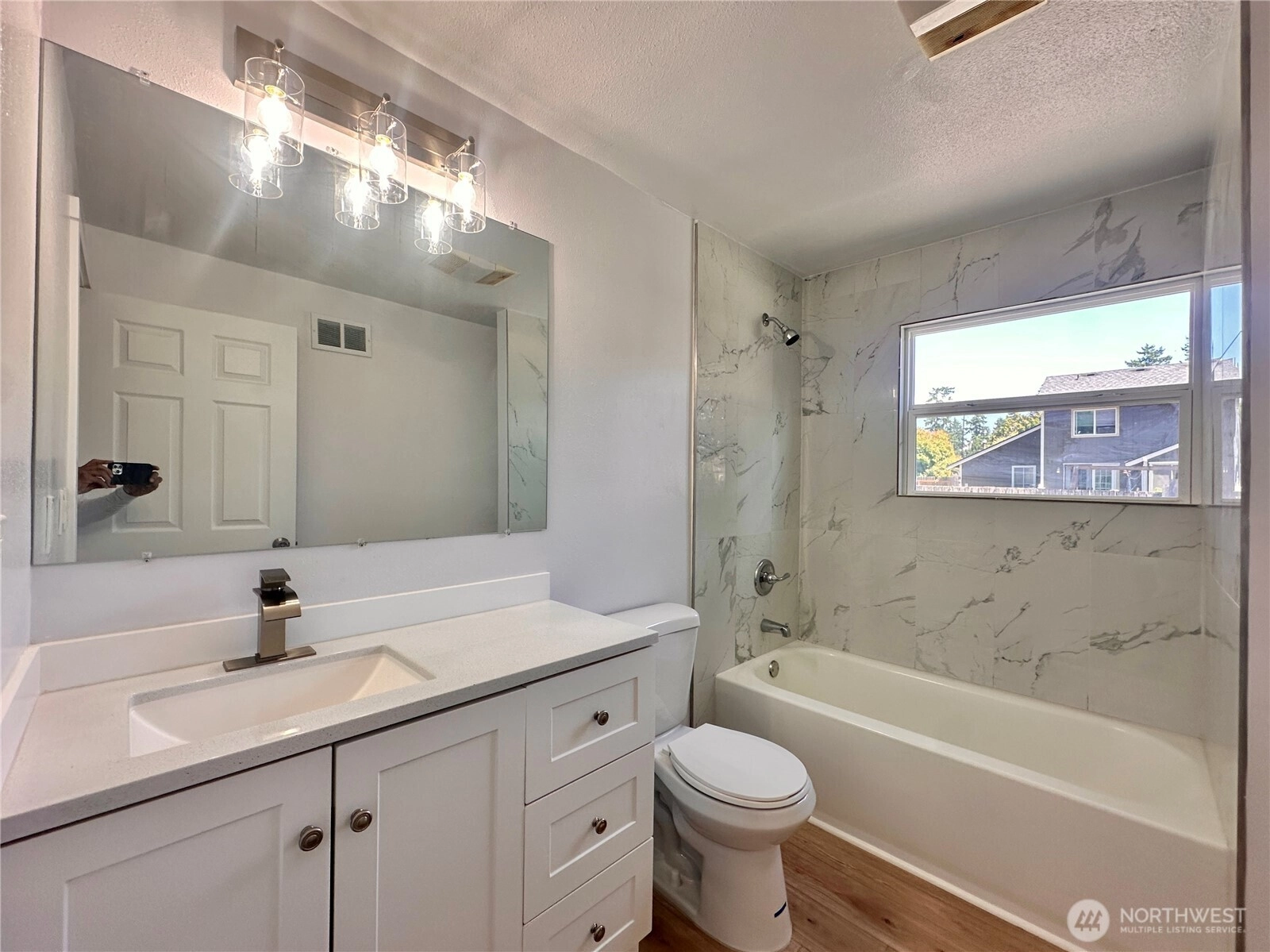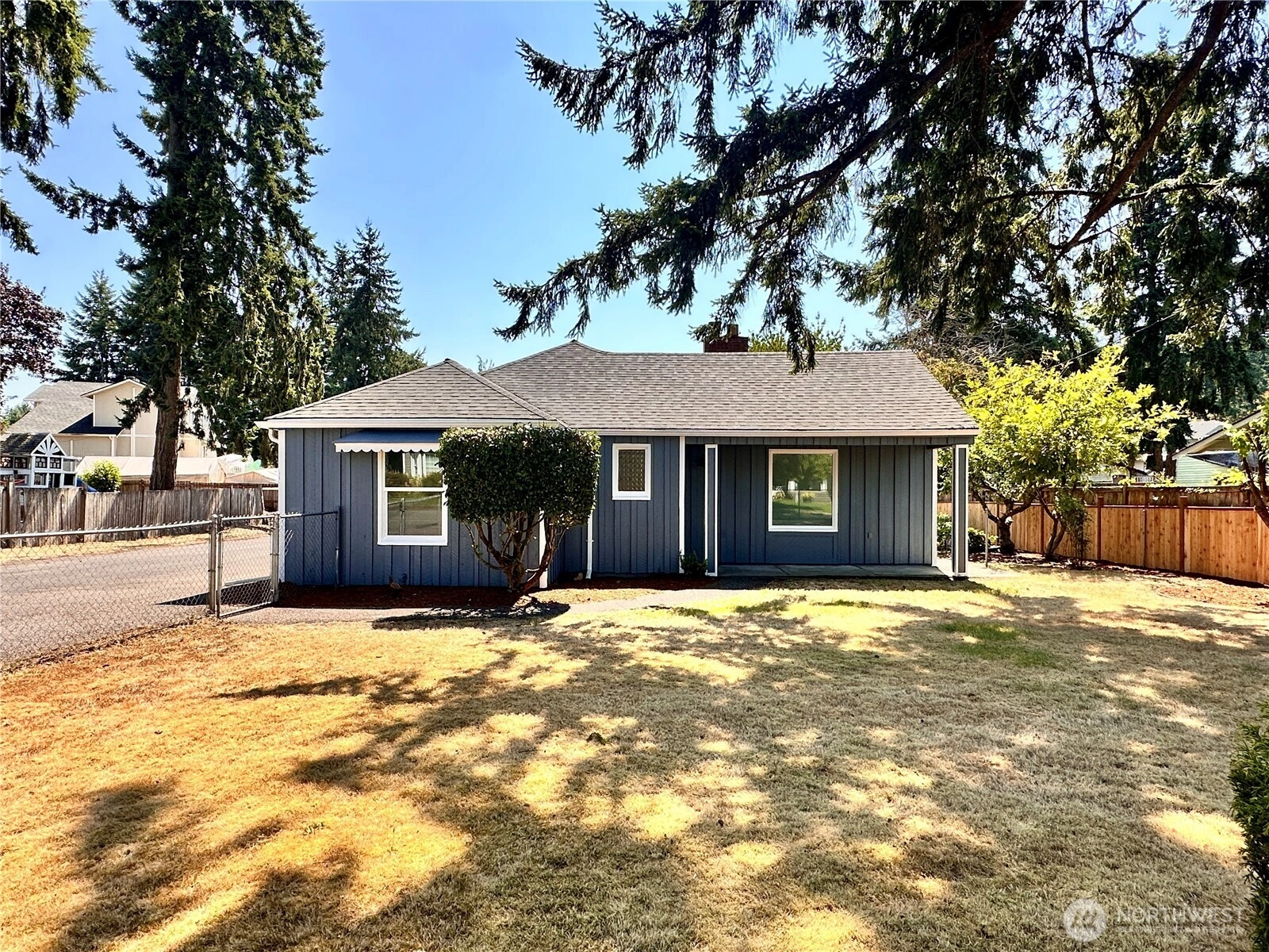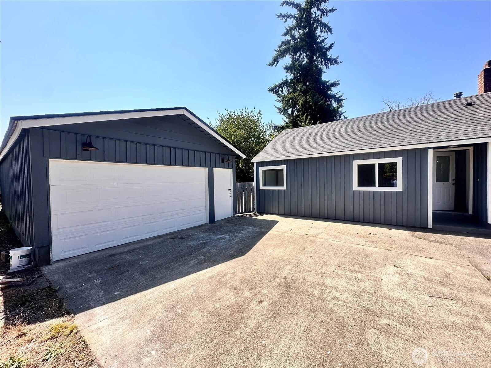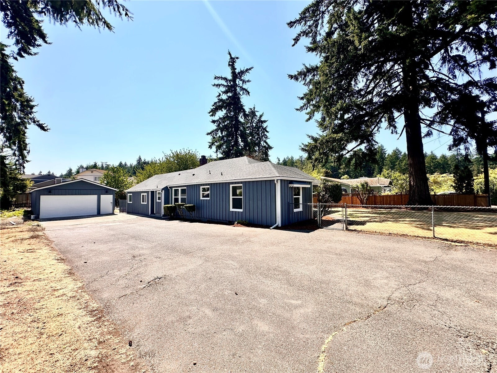 Nice rambler with 3 bedrooms, den/office, 2.75 baths and a huge (720 sf) detached 4 car tandem garage. Lots of driveway parking for your RV, boat, toys.... Good size patio and fully fenced backyard. New kitchen cabinets, new quartz counter tops, new stainless steel appliances, new vinyl planks, recessed lighting, new water heater, recently updated electric panel, tiled bath tub & shower walls, painted millwork & doors, new plumbing and lighting fixtures. Close to I-5, Hwy 512, Bases, parks and schools. Come see and make this home yours!