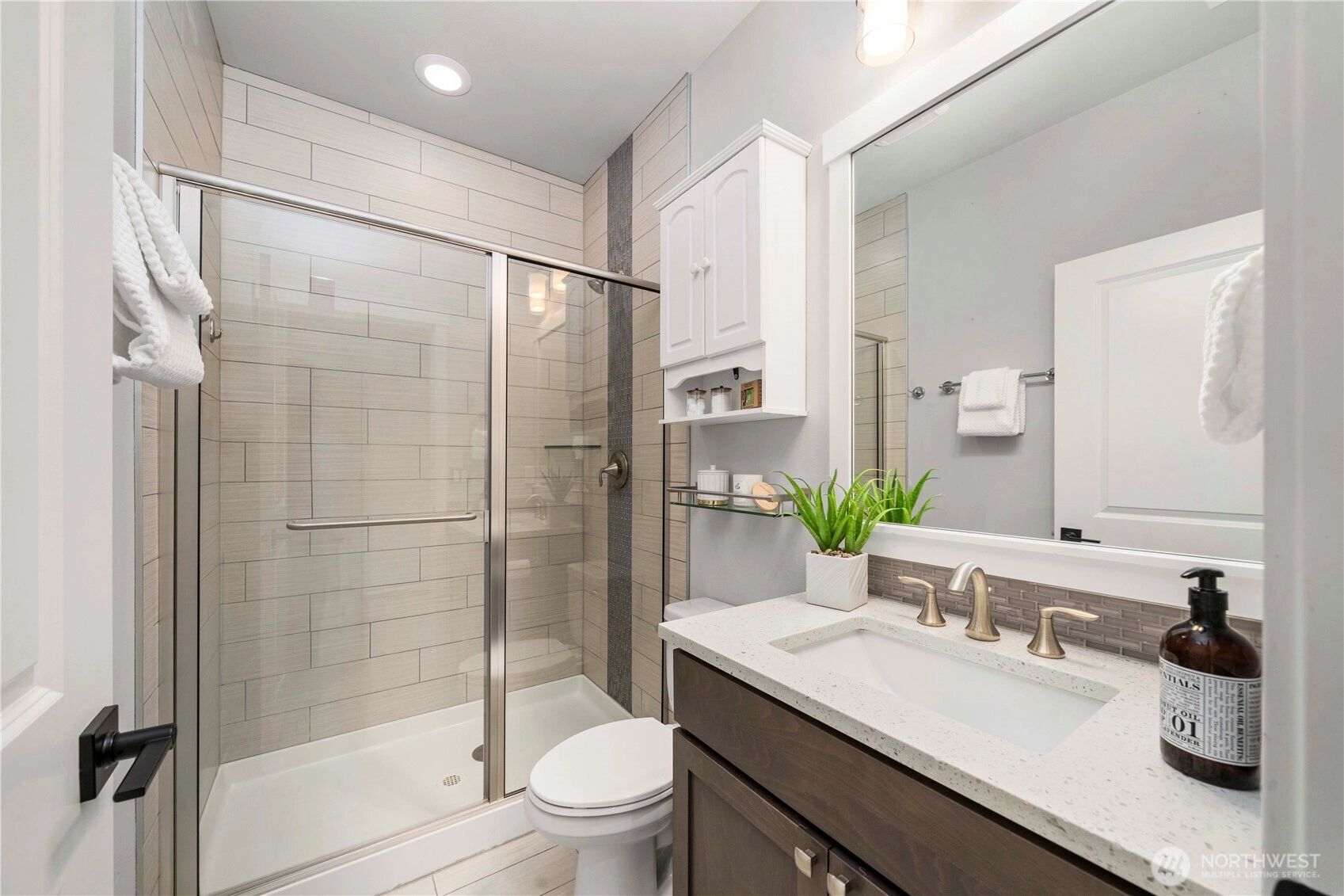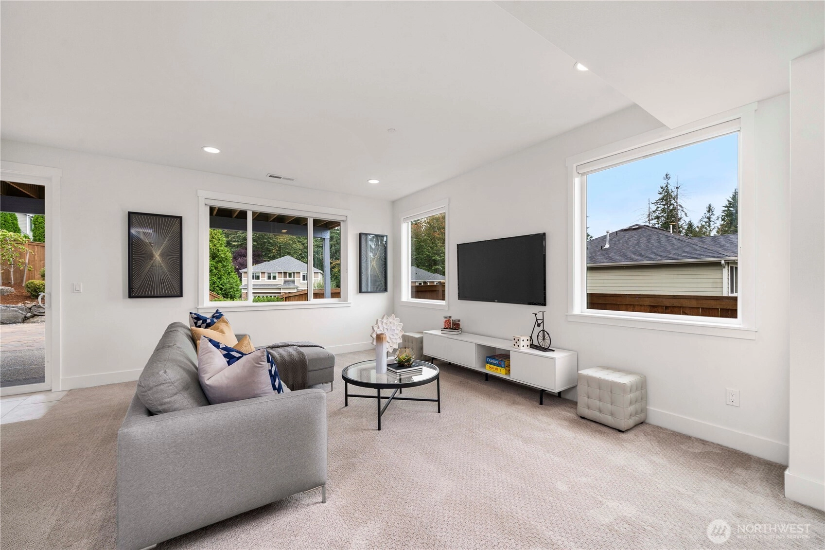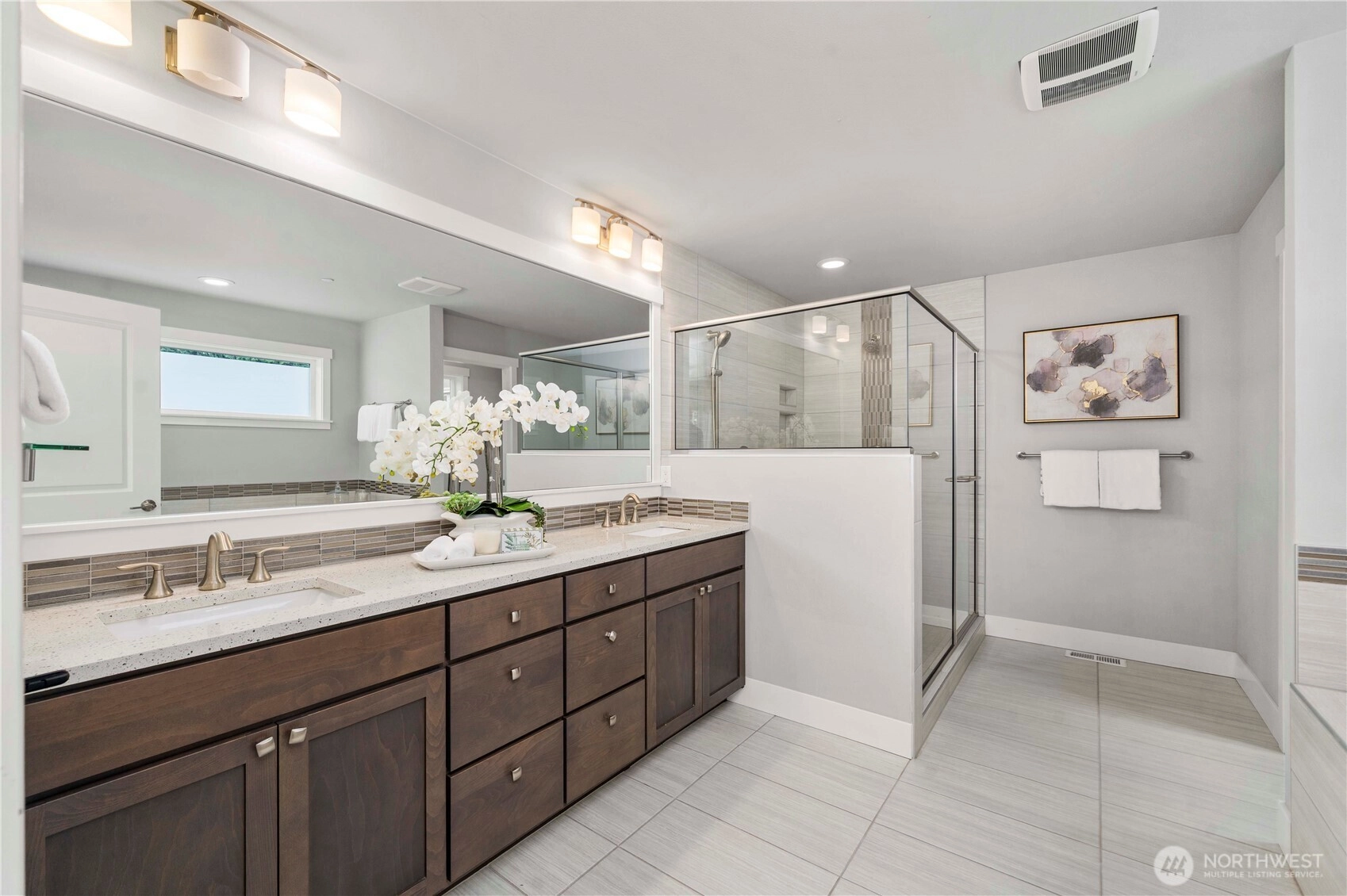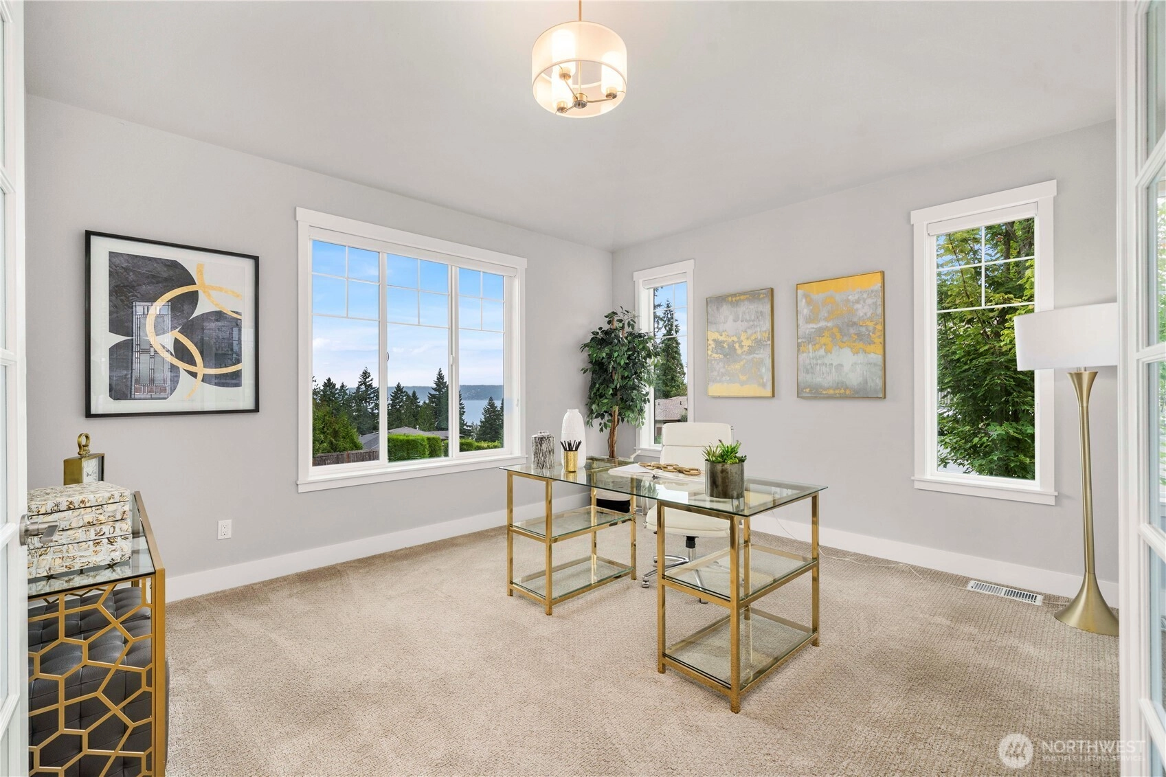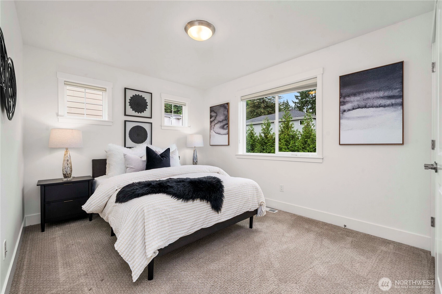 Sophisticated luxury with Lake & Cascades views! Nestled in a private cul-de-sac, this exquisite Sapphire Home blends timeless design with modern elegance. Over 4,300 sq ft of refined living, including 4 bedrooms upstairs, a main-floor guest bedroom, a designated office, & a large bonus downstairs. Expansive windows showcase stunning natural light & serene vistas. The gourmet kitchen features quartz counters & chef-grade appliances. Indulge in the spa-like primary suite with lake & mountain views. Central A/C, a generator, 3-car garage, sprinkler system, professionally paved & fully fenced backyard & neighborhood park. New interior paint. Just minutes to I-90, DT Bellevue, Seattle, tech hubs, & all the amenities. Excellent Issaquah schools.