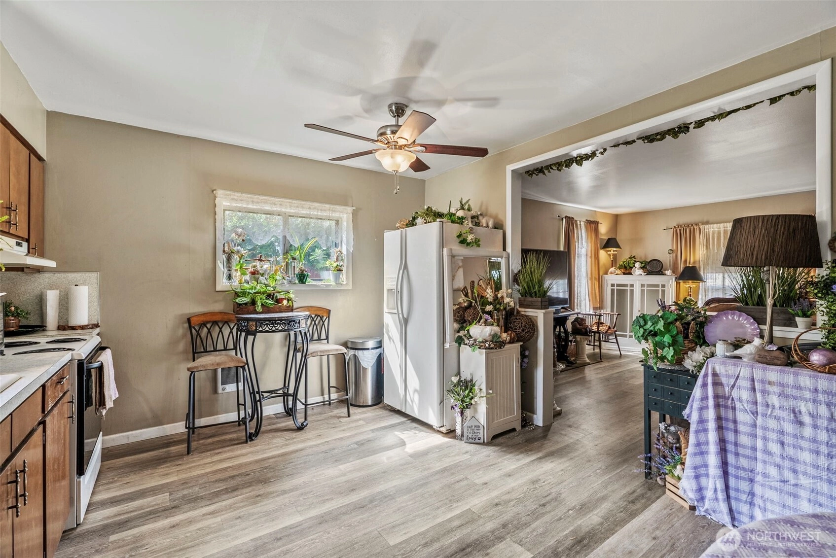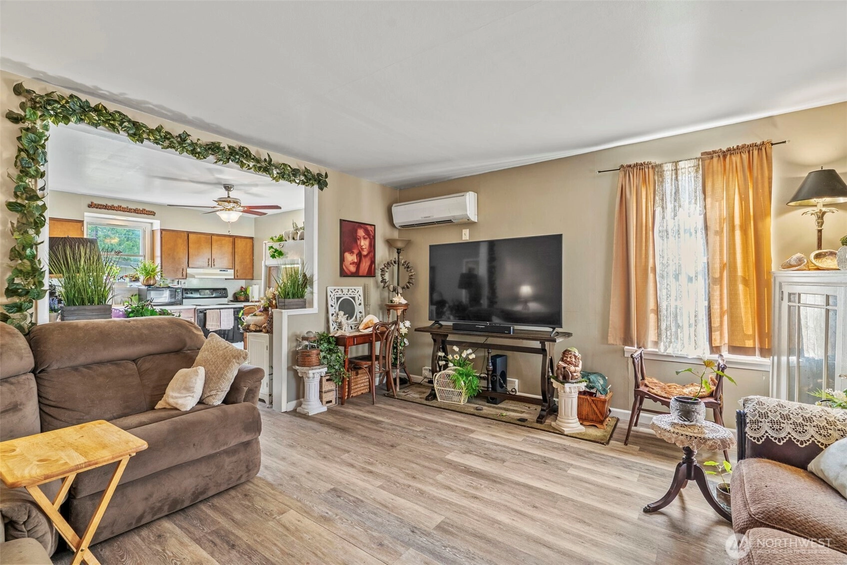 Welcome to this beautifully updated home in the serene Ryderwood 55+ community, where modern comfort meets cozy charm. This inviting residence boasts two spacious bedrooms with generous walk-in closets, including a master with an attached half bath for added convenience. The expansive kitchen and dining area is perfect for entertaining, while the utility room offers ample storage space. Completely renovated in 2018 with a new roof, flooring, paint, and fixtures, this home also features an efficient ductless heat pump in the living room for year-round comfort. Outside, enjoy a private fenced backyard and a large garage with dedicated shop space for hobbies or storage. Don’t miss this move-in-ready gem in a vibrant community!