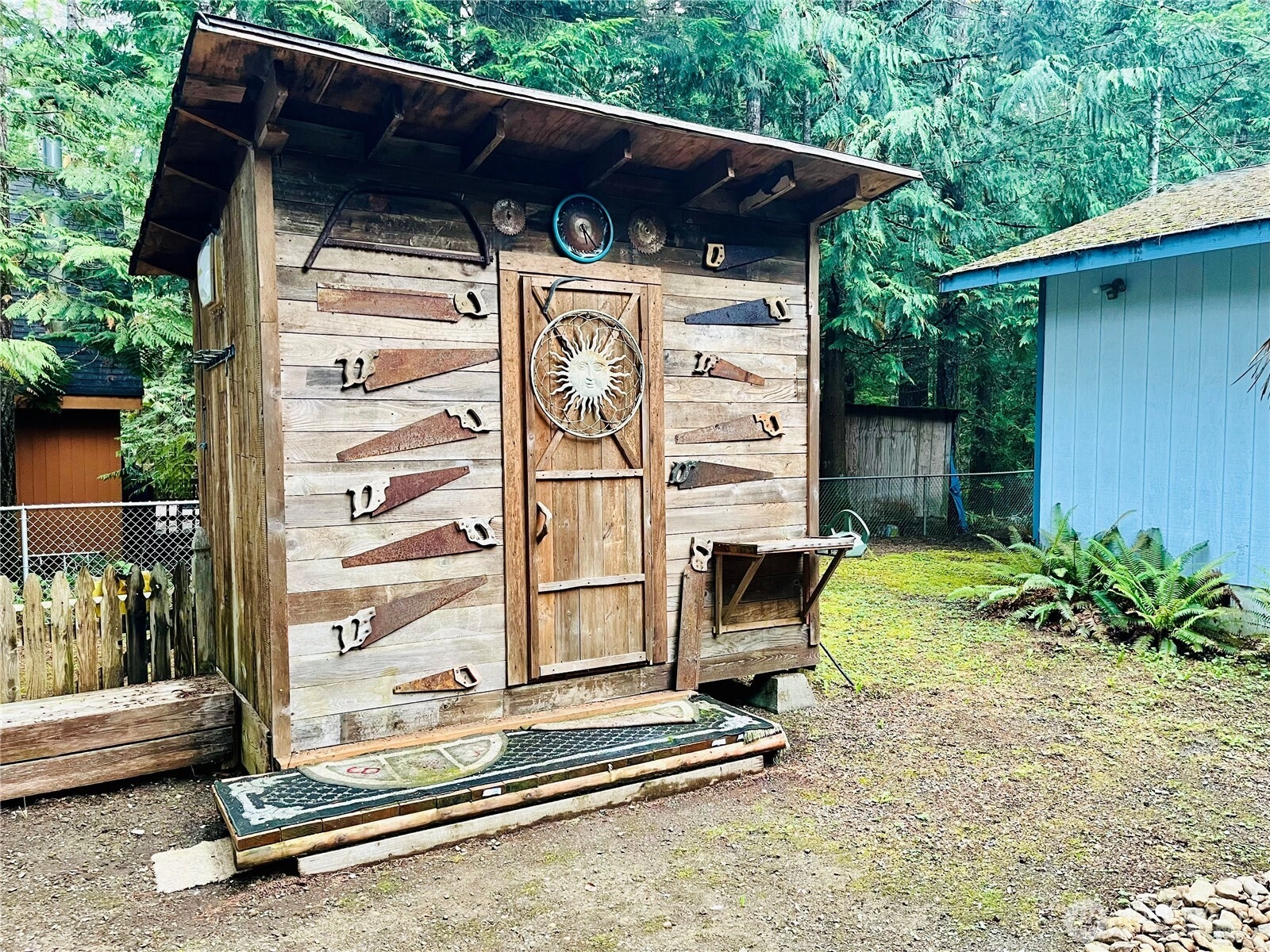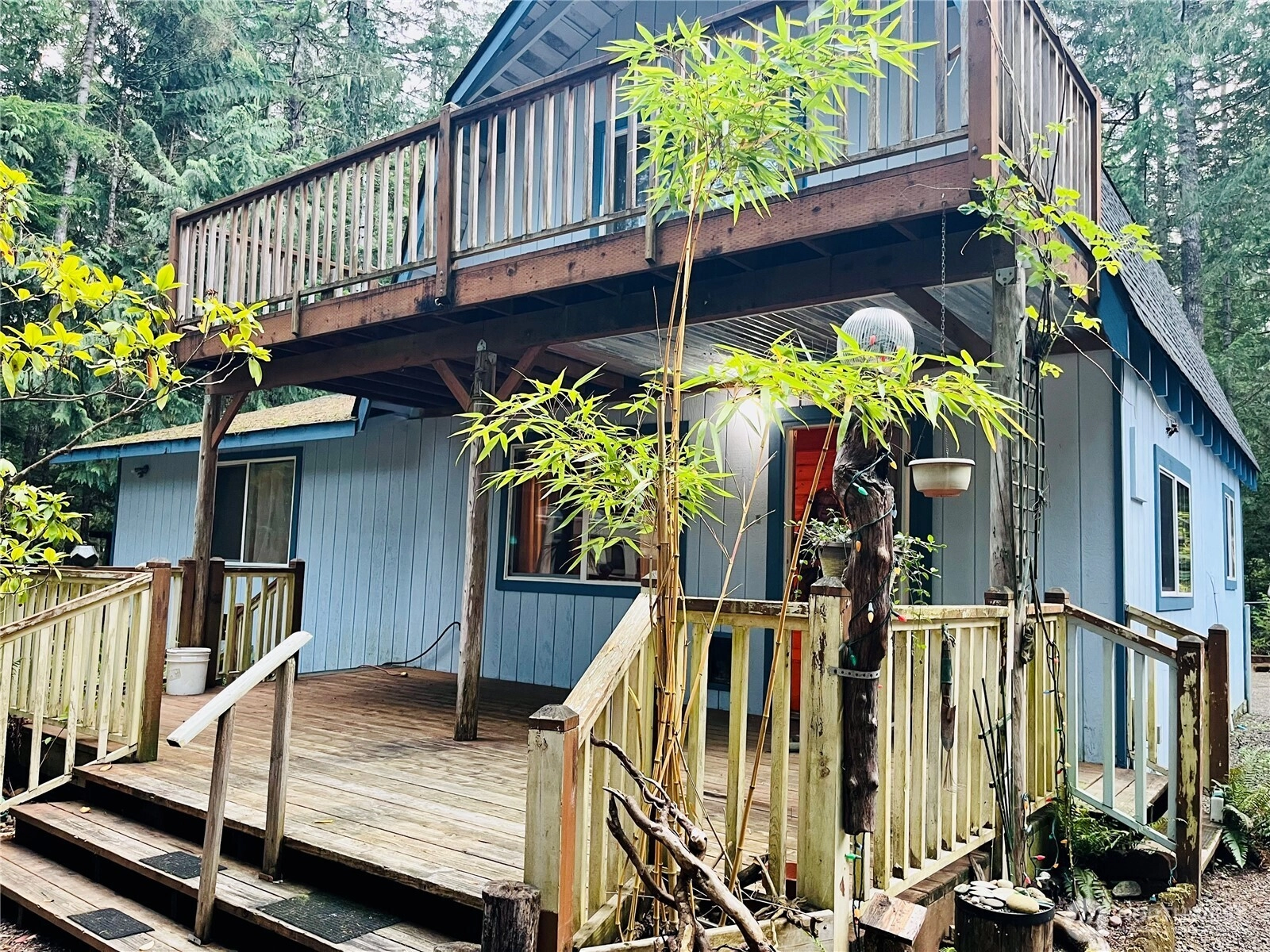 Beautiful, remodeled home in Lake Cushman's Dow Mt neighborhood! Roof replaced seven years ago, original oak hardwood floors and knotty pine wood paneling restored for that cozy mountain cabin feel. Antique barn door to primary bedroom is over a 100 years old. New washer/dryer unit largest capacity installed and kitchen cabinets have been restored. Large primary with walk in closet, large second bedroom upstairs with private balcony and two smaller rooms upstairs that can be used as a den or storage. This large double lot is almost a half-acre so there is plenty of room to spread out, yard is well manicured and self sustaining with very little effort, out buildings for storage. Great vacation rental opportunity with access to Lake Cushman