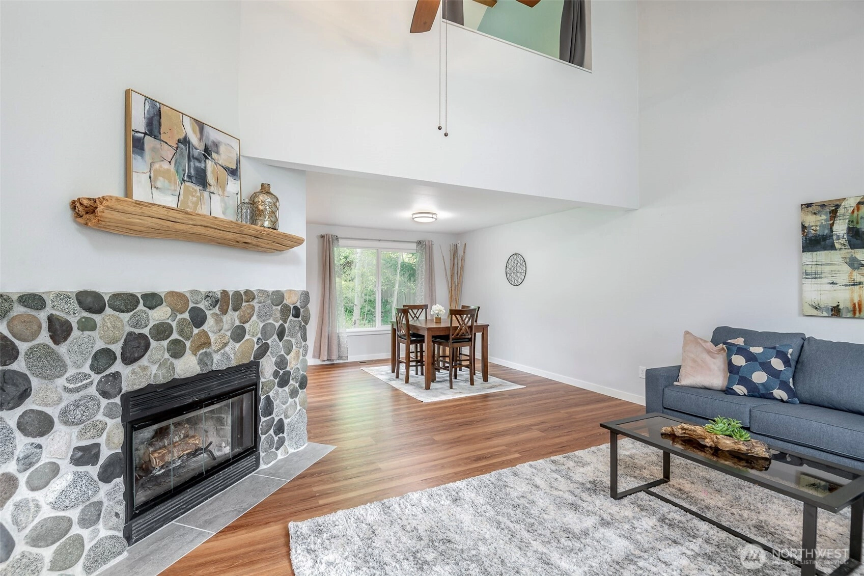 Motivated Sellers are in the Holiday spirit offering a gift of a 1 year Home Warranty as well as 1% buyers concessions! Make it Home for the Holidays! Don't miss this NW Gem nestled up off the street on a spacious corner lot! This uniquely designed, multi-level home offers 3 bedrooms/2.5 baths. Updated throughout, you'll love the vaulted ceilings, river rock fireplace, new flooring, heated floor in the primary bath, and ample storage this home has to offer. The private backyard oasis offers a nature inspired, luxurious retreat with multi-seasonal blooms that create ever-changing beauty, a firepit with custom cedar bench, and a patio for entertaining. Boasting of tranquility, this home feels miles away yet minutes from shops, dining, & more!