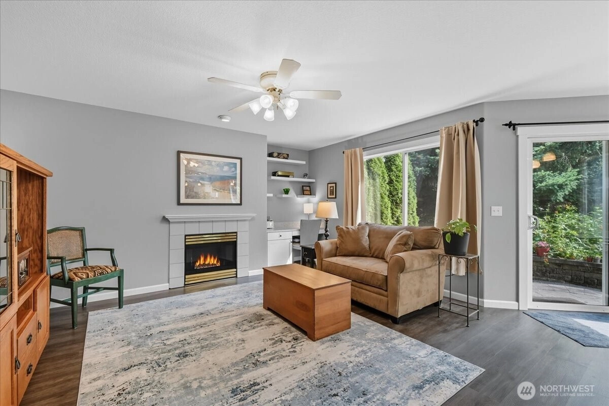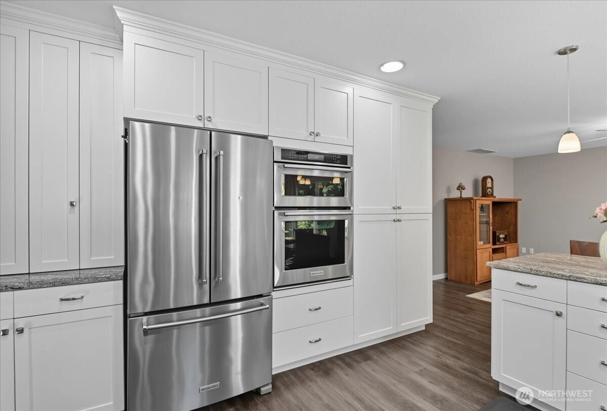 Beautifully updated 3BR/2.5BA, 1,875 SF home built in 1995. Spacious covered porch opens to a vaulted living room flowing into dining w/trayed ceiling. Luxury vinyl plank runs throughout. Kitchen offers granite counters, island, pull-out pantry, and full KitchenAid suite incl. 5-burner gas cooktop, refrigerator, wall oven/microwave & dishwasher. Family room features gas fireplace, built-in desk & slider to patio. Vaulted primary suite w/sun window, walk-in closet & updated bath w/granite, dual sinks & walk-in shower. Fenced yard, raised garden beds, shed, patio. 2-car garage w/utility sink. Updates: kitchen 2019, LV floors 2019–21, upstairs granite 2021, HVAC 2020, Roof 2018. Centrally located near shopping & freeways!