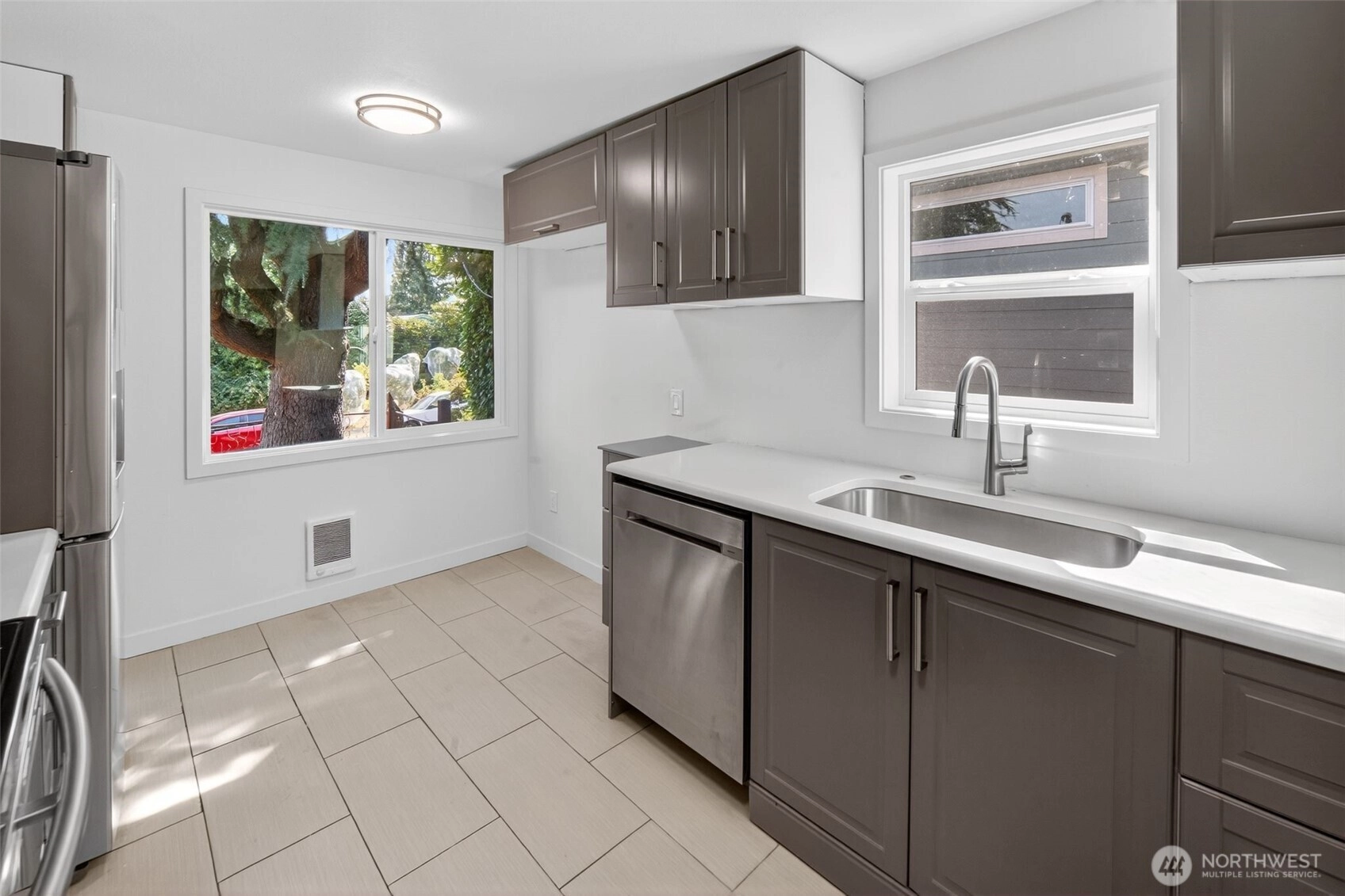 A Seattle Bungalow Nestled in Desirable Neighborhood! Charming updated 3-bed, 1.75-bath offers the perfect blend of vintage charm & contemporary comfort. Step inside to find new vinyl plank flooring, fresh tile in kitchen complemented by SS appliances & newer cabinetry that strikes the ideal balance of style & functionality. Plush new carpet softens each bedroom, while the versatile bonus room in the basement adds flexibility in living space. The upstairs bathroom features classic subway tile, exuding timeless elegance. Fresh interior & exterior paint create a crisp, move-in-ready ambiance, while a private deck invites you to relax in style. Spacious backyard is a blank canvas for your vision, offering room to create your own urban oasis!