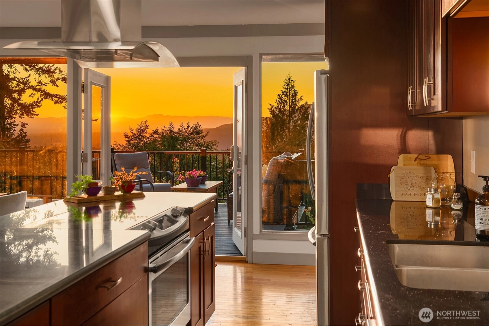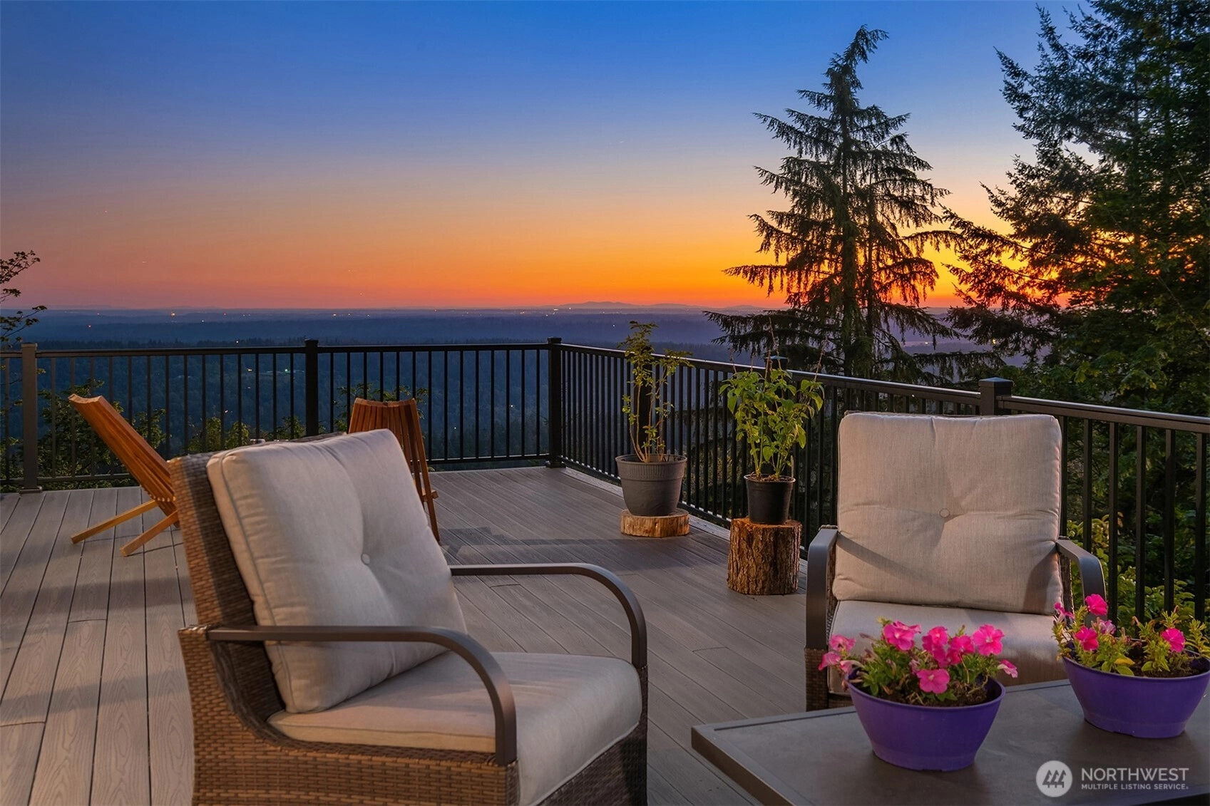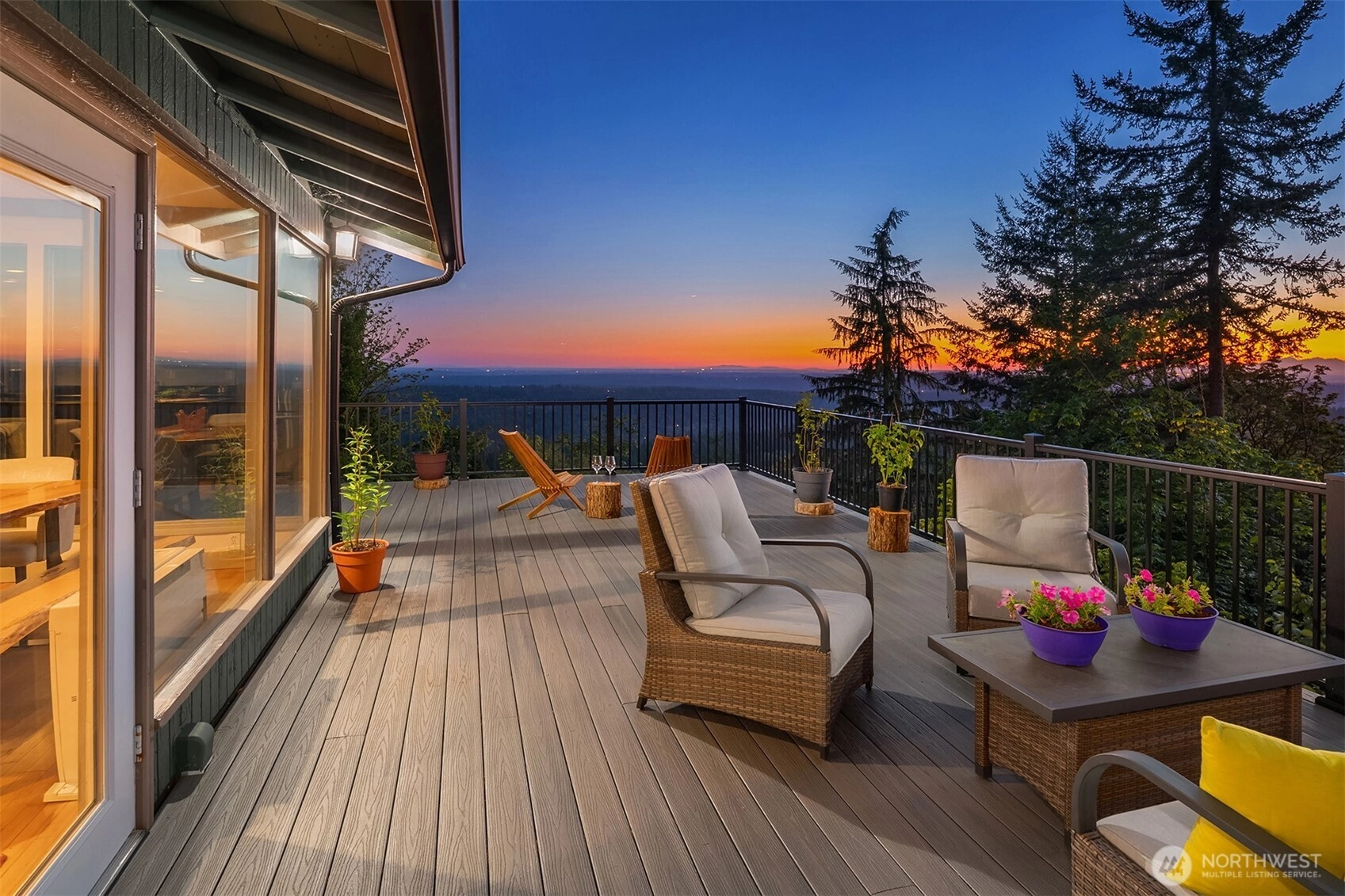 Perched 900 feet overlooking Mirrormont and Maple Valley, this updated 2,200 sq ft Tiger Mountain retreat in Issaquah offers jaw-dropping Olympic views, unforgettable sunsets, and unmatched privacy. Sip coffee with hummingbirds or host guests on the 1,700 sq ft two-level deck. Inside, enjoy a luxurious and spacious chef's kitchen with stainless steel appliances and granite countertops, large windows, and a generous primary suite. Two driveways, two detached outbuildings, and private entries create ideal flexibility for multi-gen living, wfh office or savvy Airbnb investment. No HOA, top Issaquah schools and a deep well with brand-new 2024 tanks. A private, quiet mountain setting just minutes from I-90, SeaTac, and the best of the PNW.