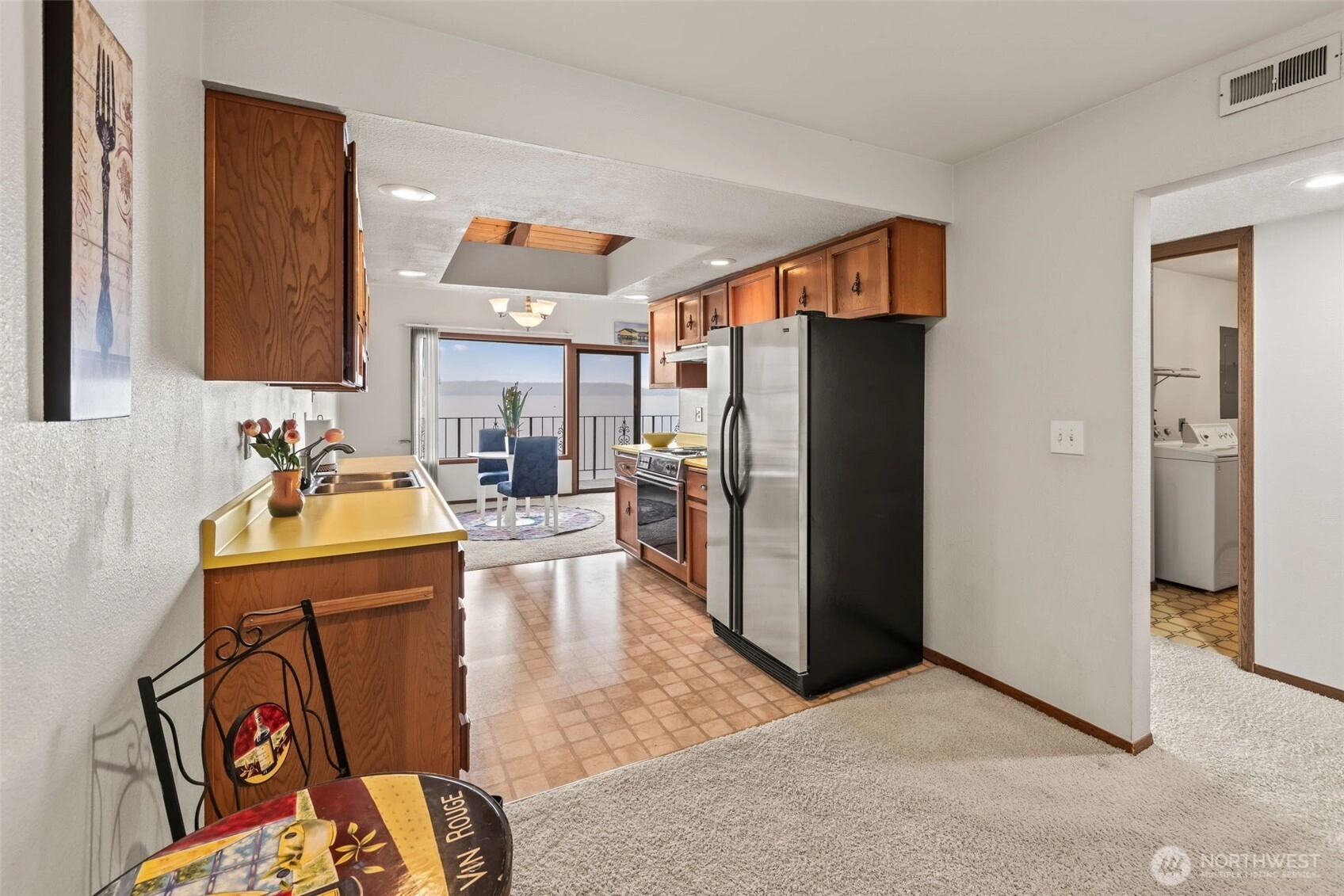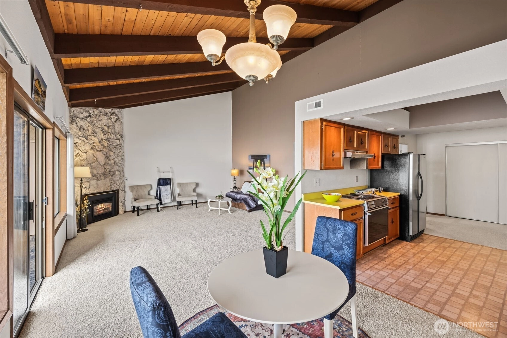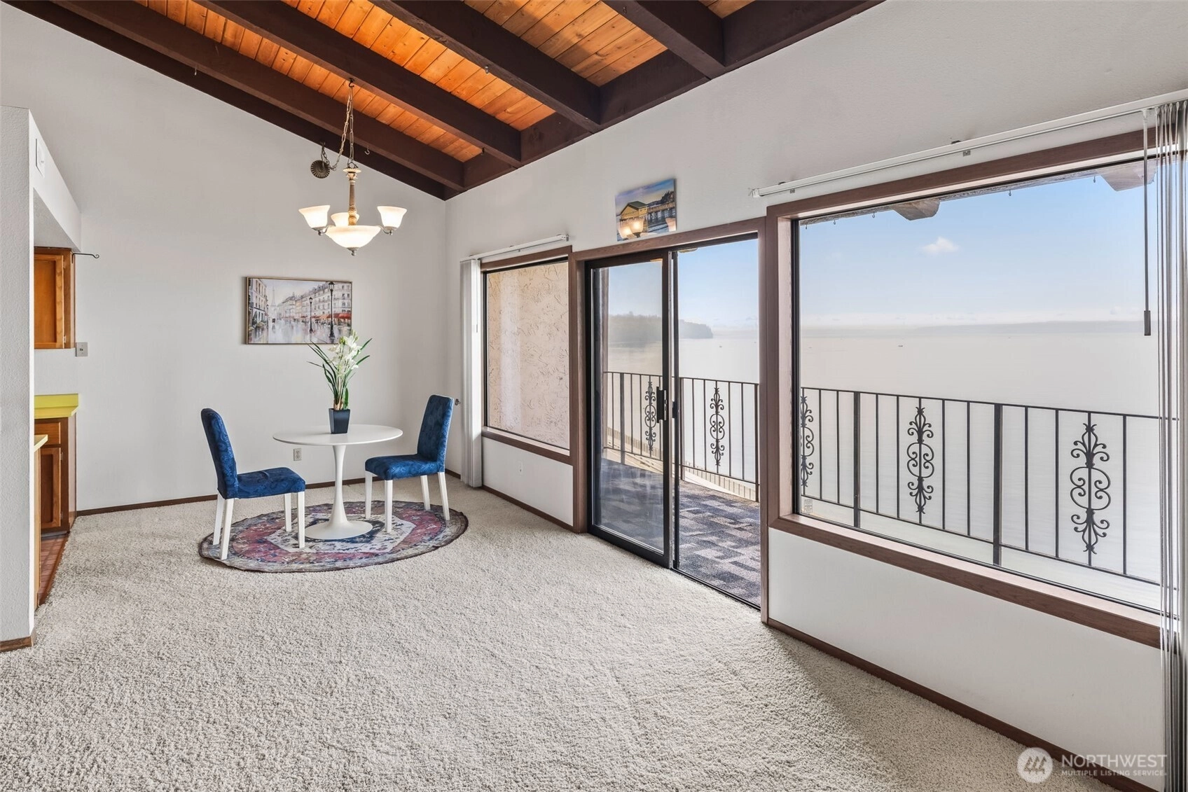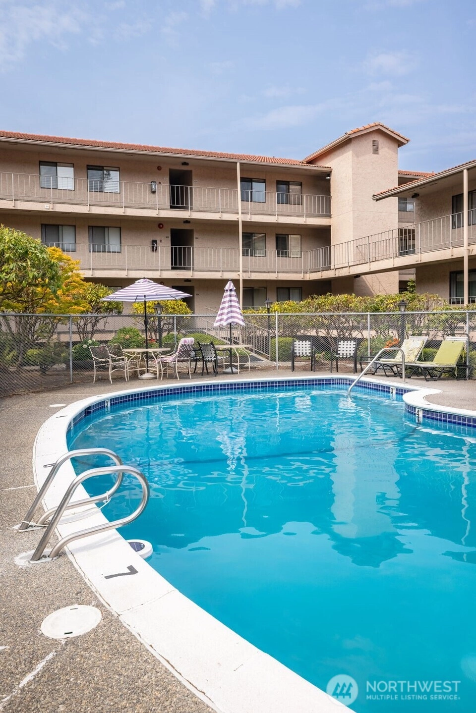 Breathtaking Puget Sound views from this top floor 2-bed, 2-bath condo, just across from Redondo Beach.(elevator access) Enjoy a bright, open living room with soaring vaulted ceilings, cozy fireplace, and a private balcony perfect for soaking in stunning sunsets. This home combines comfort with coastal charm in the highly desirable Redondo Beach Condos. Complete with 1 assigned covered carport parking, and tons of visitor parking. Amenities include a workout room, sauna, and a refreshing outdoor pool, all just steps from your front door. Take a walk on the trails at Wooton Park, right next door, or the beach across the street! Shopping, dining, and the best of the area are only minutes away. Don’t miss your chance to own this Redondo gem!