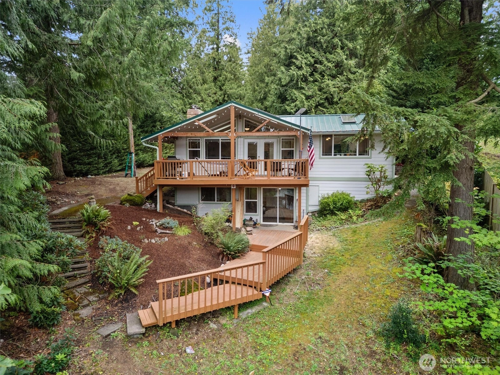 Secluded lakefront retreat on Lake Walker—2,120 sq ft on shy 2 acres of prime waterfront. Updated throughout with hardwood floors, newer appliances, and a spacious eat-in kitchen. Primary suite upstairs with ensuite; two bedrooms down, one with potential to split or use as office. Downstairs includes family room and plumbing for second kitchen—ideal for multi-gen living, entertaining, or Airbnb. Large shop for hobbies, gear, or creative space. Generator hookup, flexible layout, and peaceful surroundings. Front acreage has barn and space for many uses. Minutes to Maple Valley and Enumclaw. Perfect as a full-time residence, vacation getaway, or future investment. Enjoy lake living with privacy, versatility, and endless possibilities!