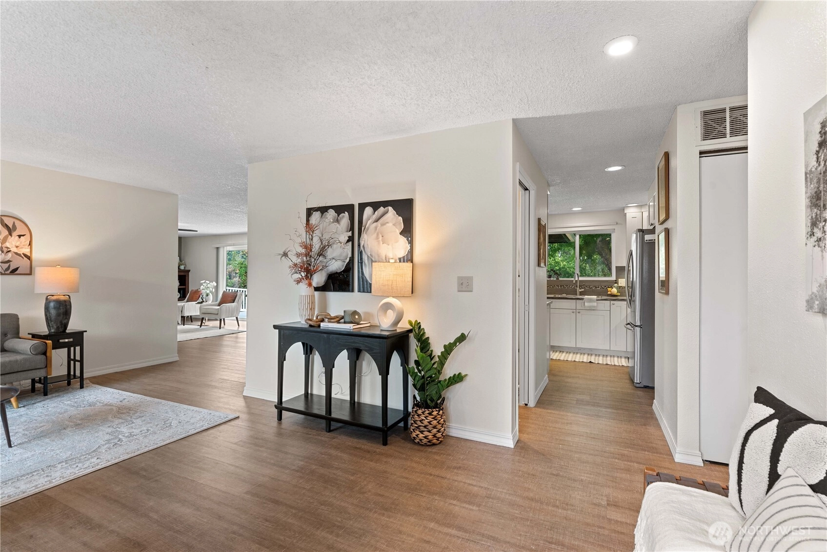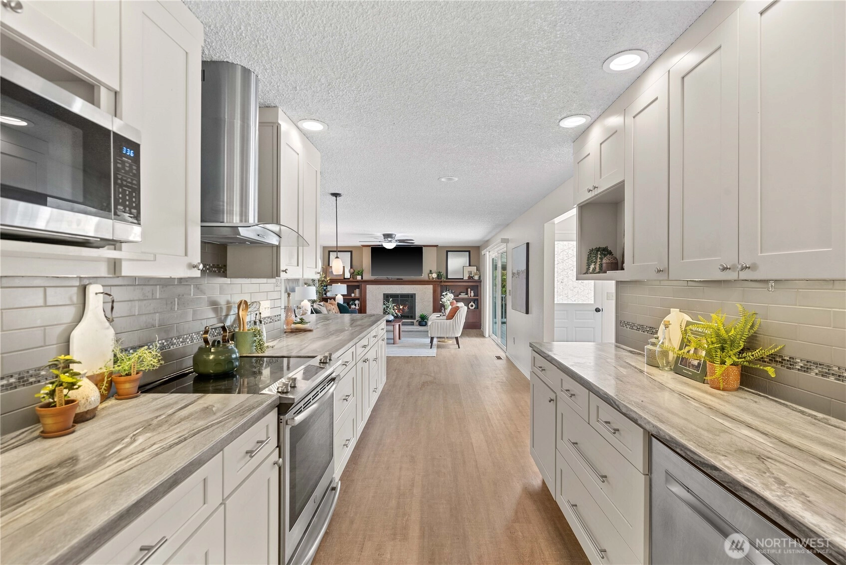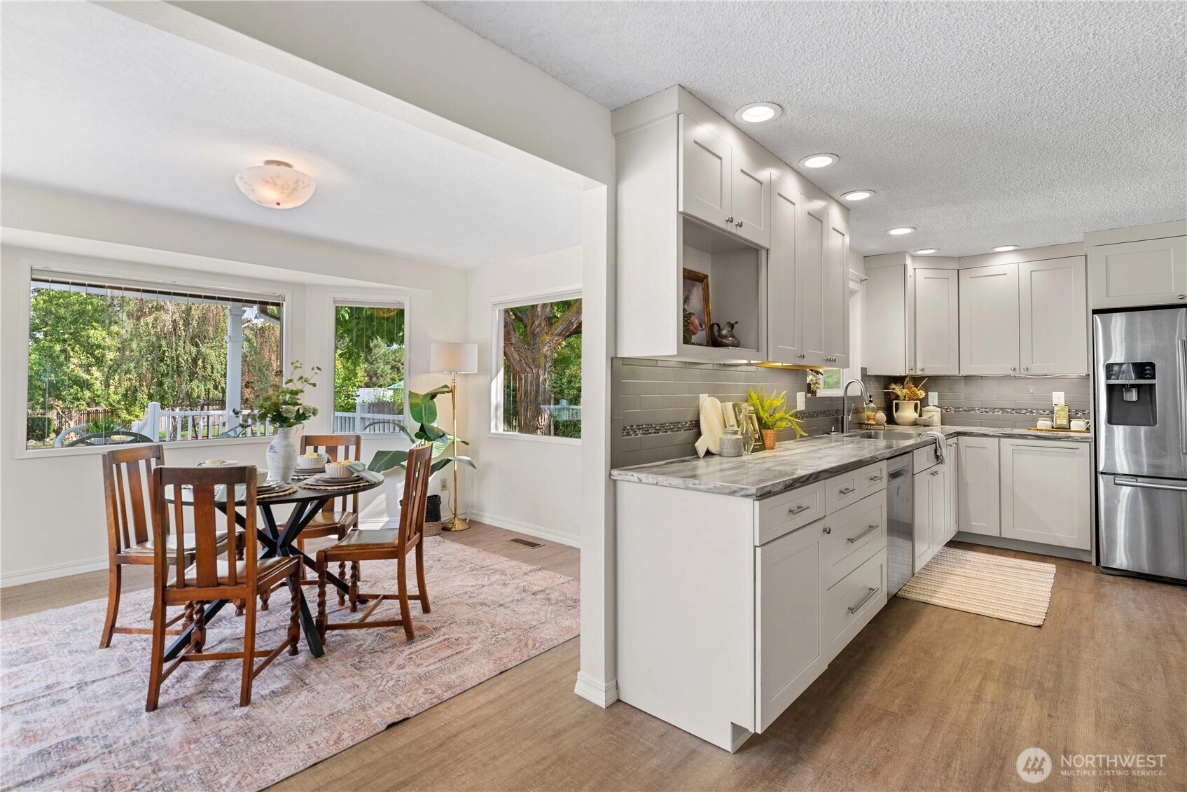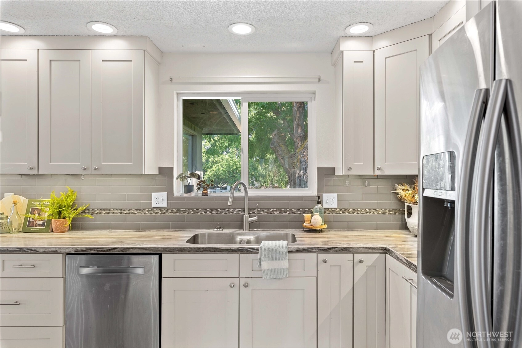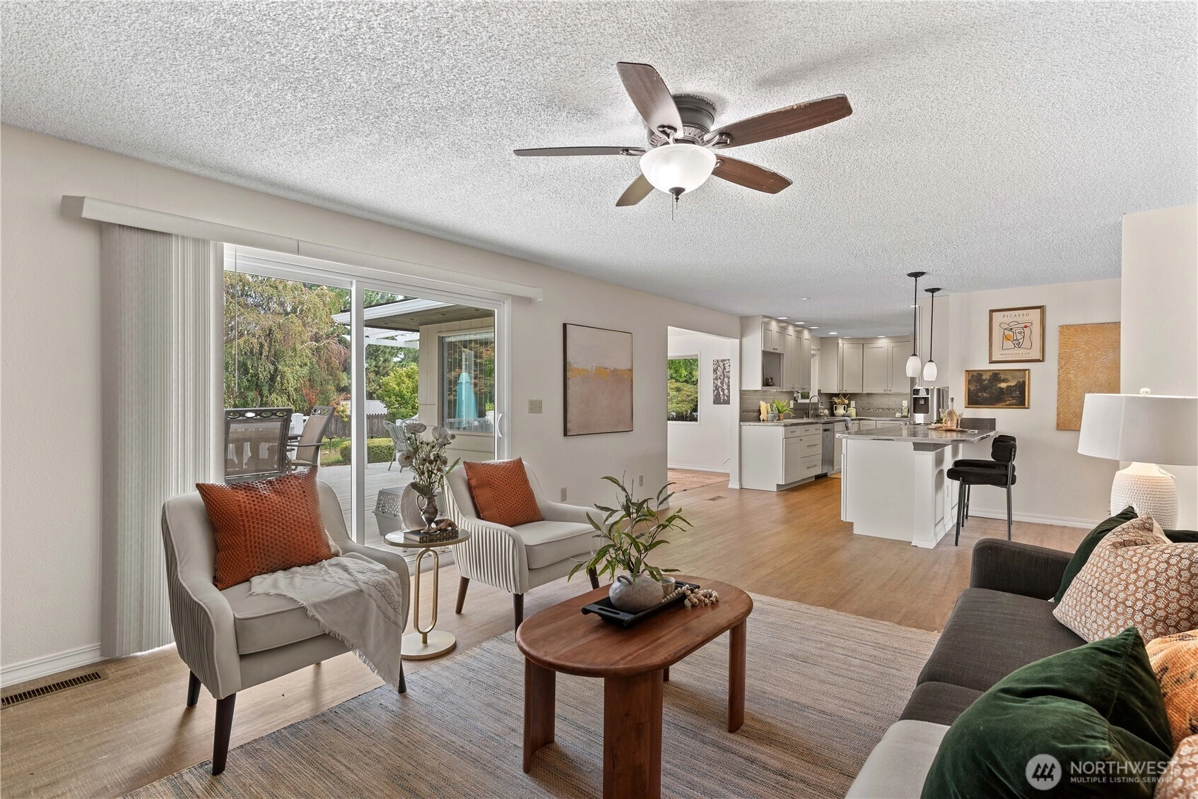Discover the perfect blend of indoor comfort and outdoor serenity in this beautifully updated rambler, ideally situated on a rare double lot. The open-concept floor plan is ideal for entertaining, while the expansive deck invites you to unwind in the park-like backyard setting. Stainless steel appliances, a cozy gas fireplace framed by custom built-ins, stylish laminate hardwood flooring throughout. The home features three bedrooms, a full bath with a brand-new jetted tub (complete with in-line heater for extended warmth), and a second updated bath showcasing a stunning walk-in shower. An oversized garage offers ample space for two vehicles plus storage, Bonus: private alley access to the back parcel adds convenience and flexibility.