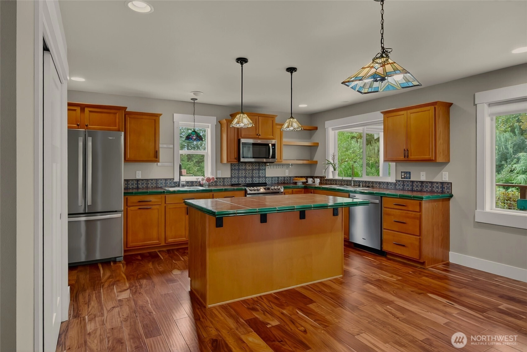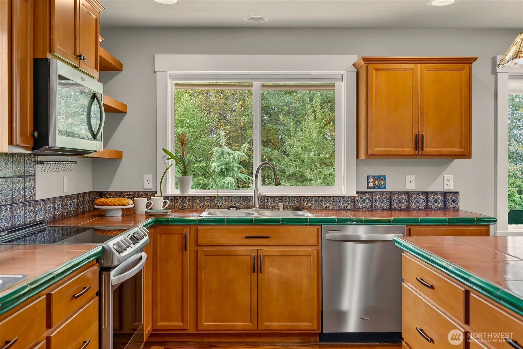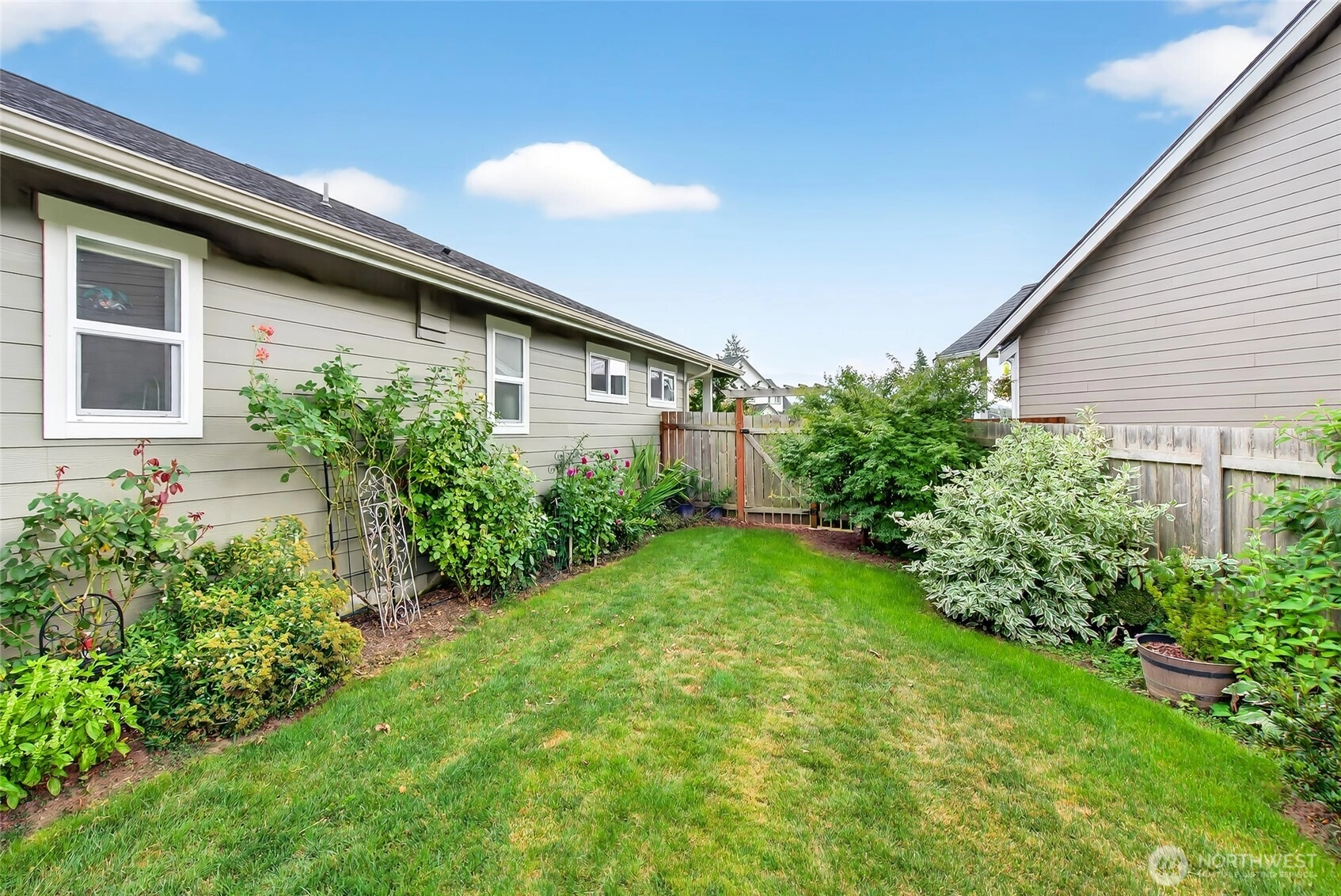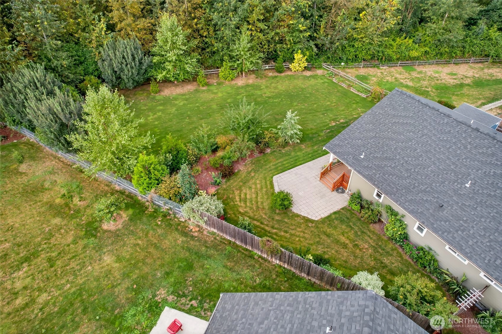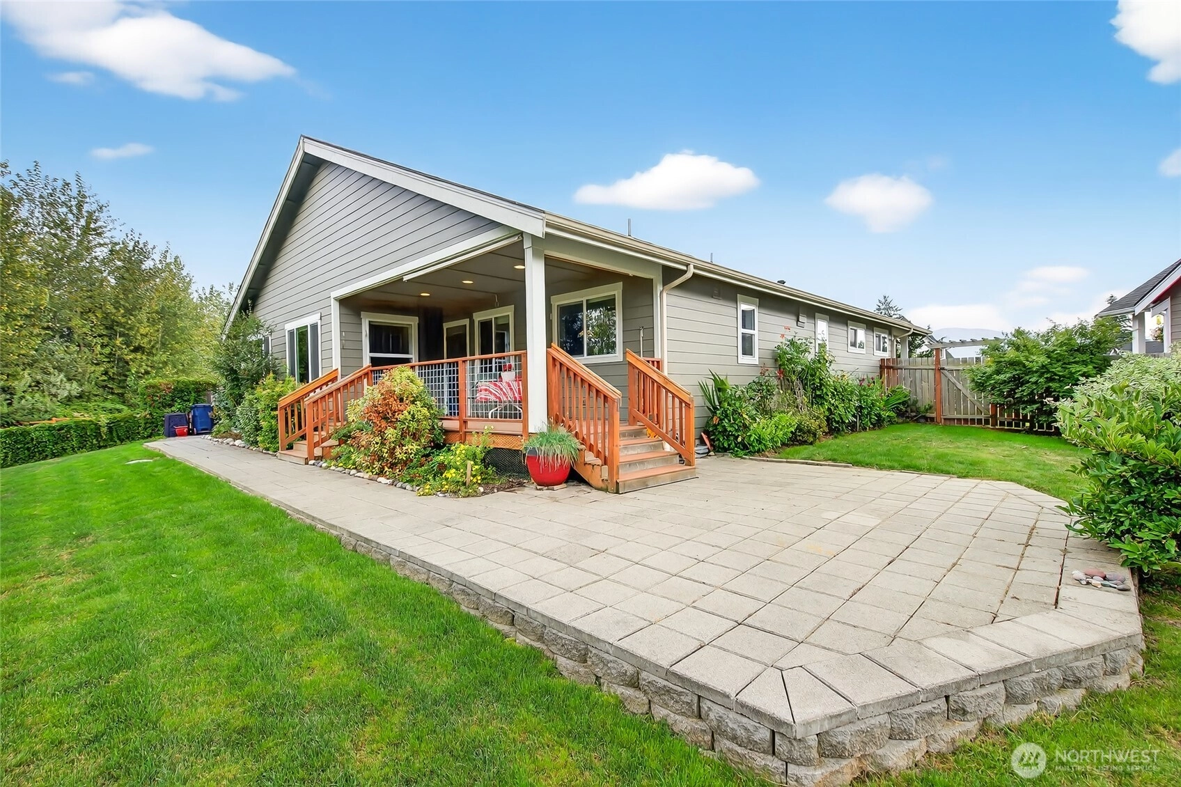 Custom design and finishes welcome you to this single-level peaceful and charming home. One of the largest lots in the neighborhood. The main living area is open to the kitchen with views of your fully fenced, park-like back yard. No houses on the back side. Back door opens onto a XL fully covered deck you can enjoy anytime. The kitchen will spoil you with its plentiful counter space and two separate sink areas for easy meal prep. Double bay garage plus room for storage, a work bench or craft area. Storage shed outside for lawn and outdoor tools. Beautiful views both front and back. Mature landscaping in a quiet and relaxing location. Close to schools and town. Like new, move in ready. What are you waiting for? Come see your new home!
