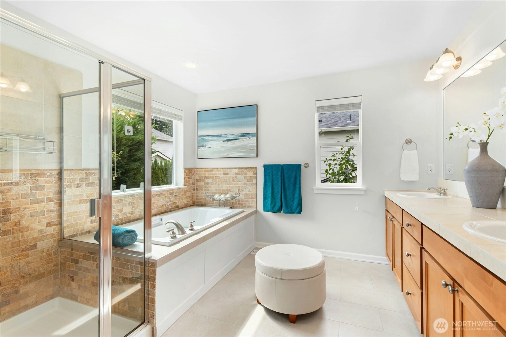 Step into timeless elegance in this Craftsman-style gem in Westcliffe neighborhood. This “Kirkland-like” location is only a few mins. from I-405, w/top Northshore Schools. Open layout w/soaring ceiling. Expansive windows bathe the space in natural lights. Sleek H/W floors span the main level. Sunlit kitchen offers gas range, ample counters & cabinetry. 2nd floor showcases an open library w/ a wall of built-in bookshelves. Newer carpet & interior paint. The desirable corner lot boasts a “magazine-worthy” south-facing garden featuring paver patio, a spa, cozy fire pit, Japanese maples & a vibrant landscaped yard. Newer roof & exterior paint. Stay cool with central A/C in summer. Near the Woodinville wine country. Pre-inspected. Move-in ready.