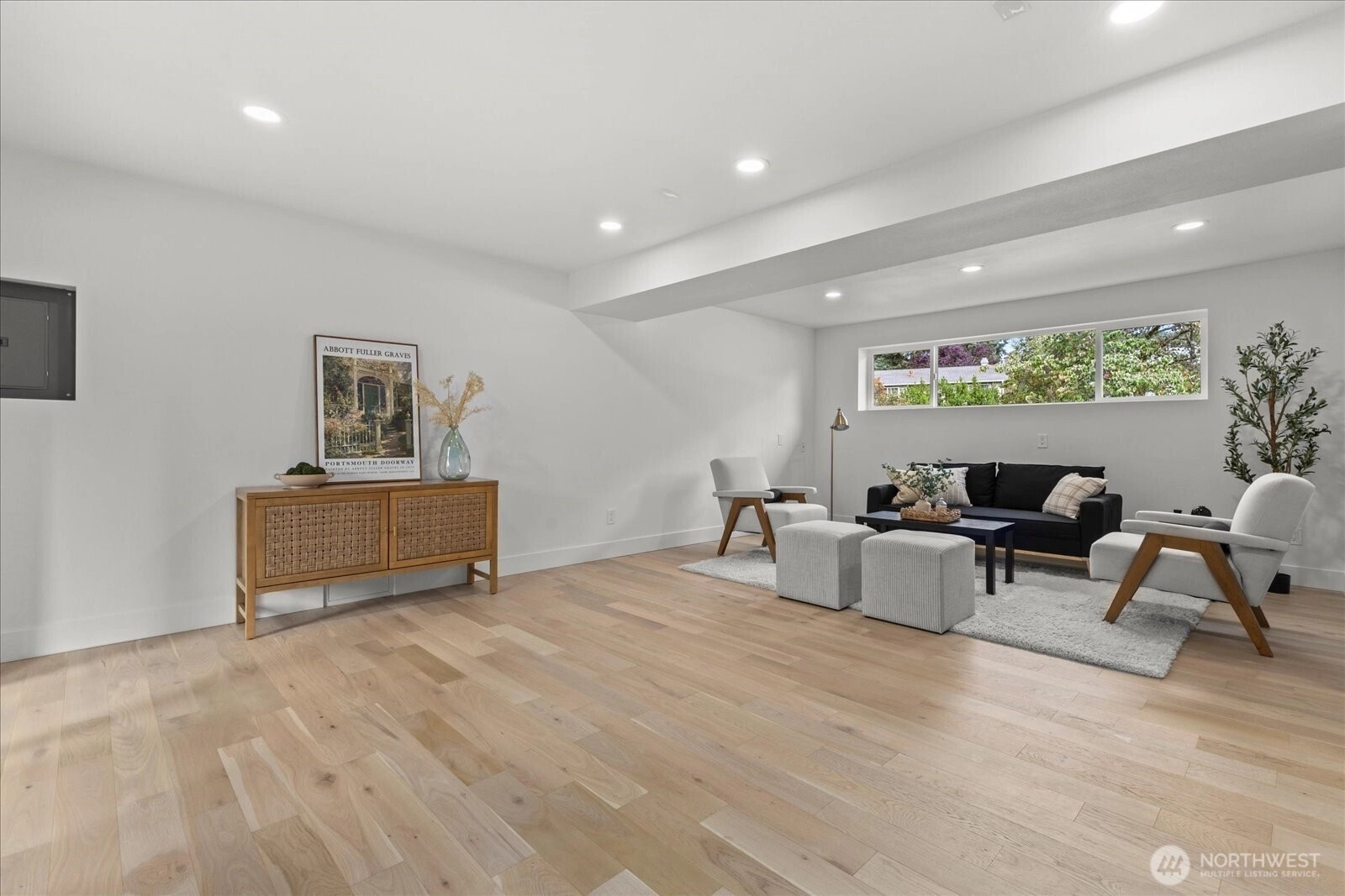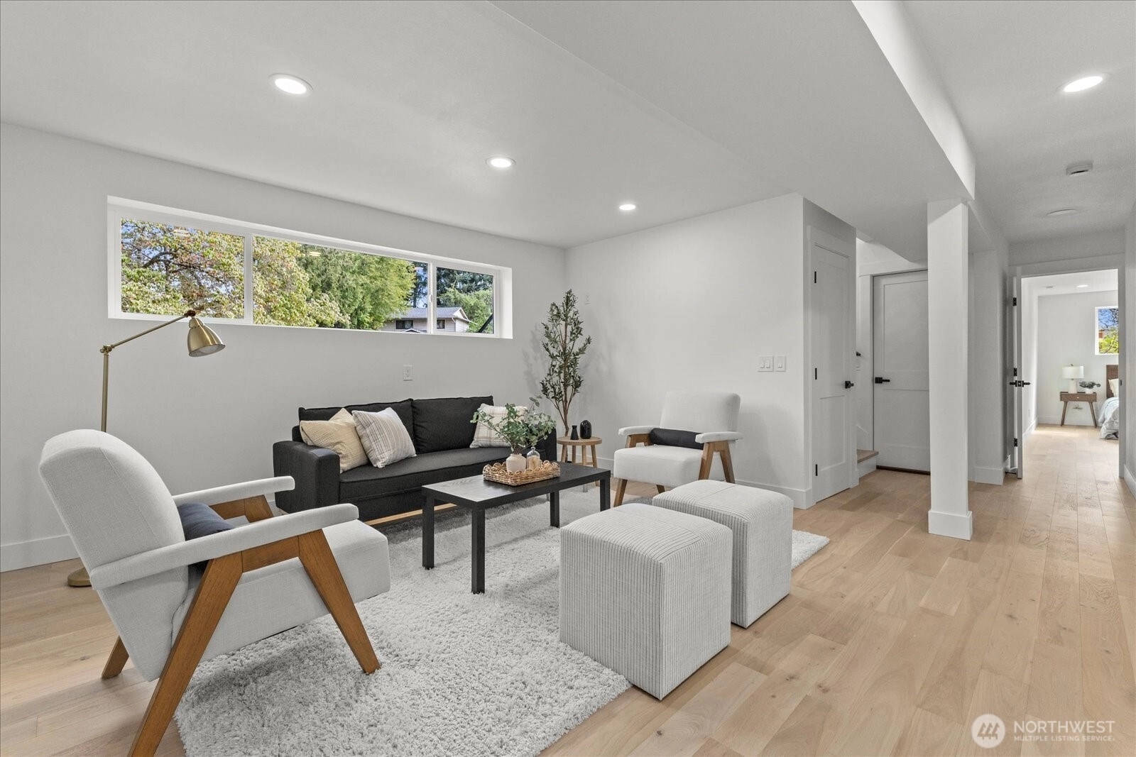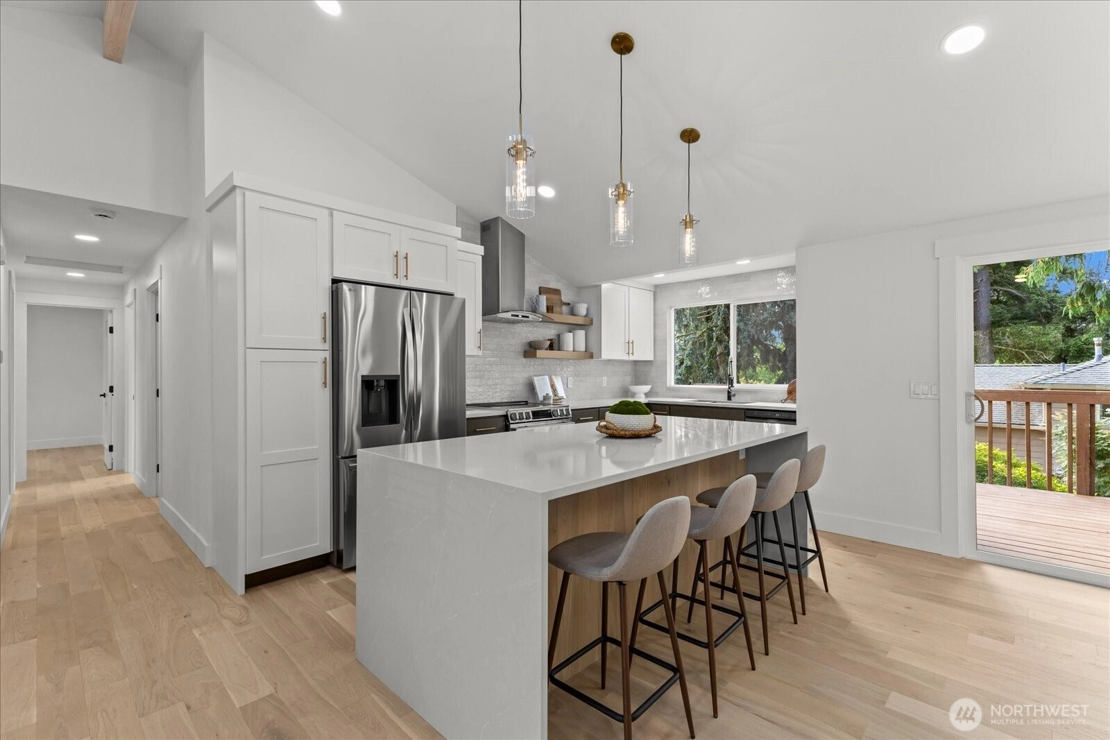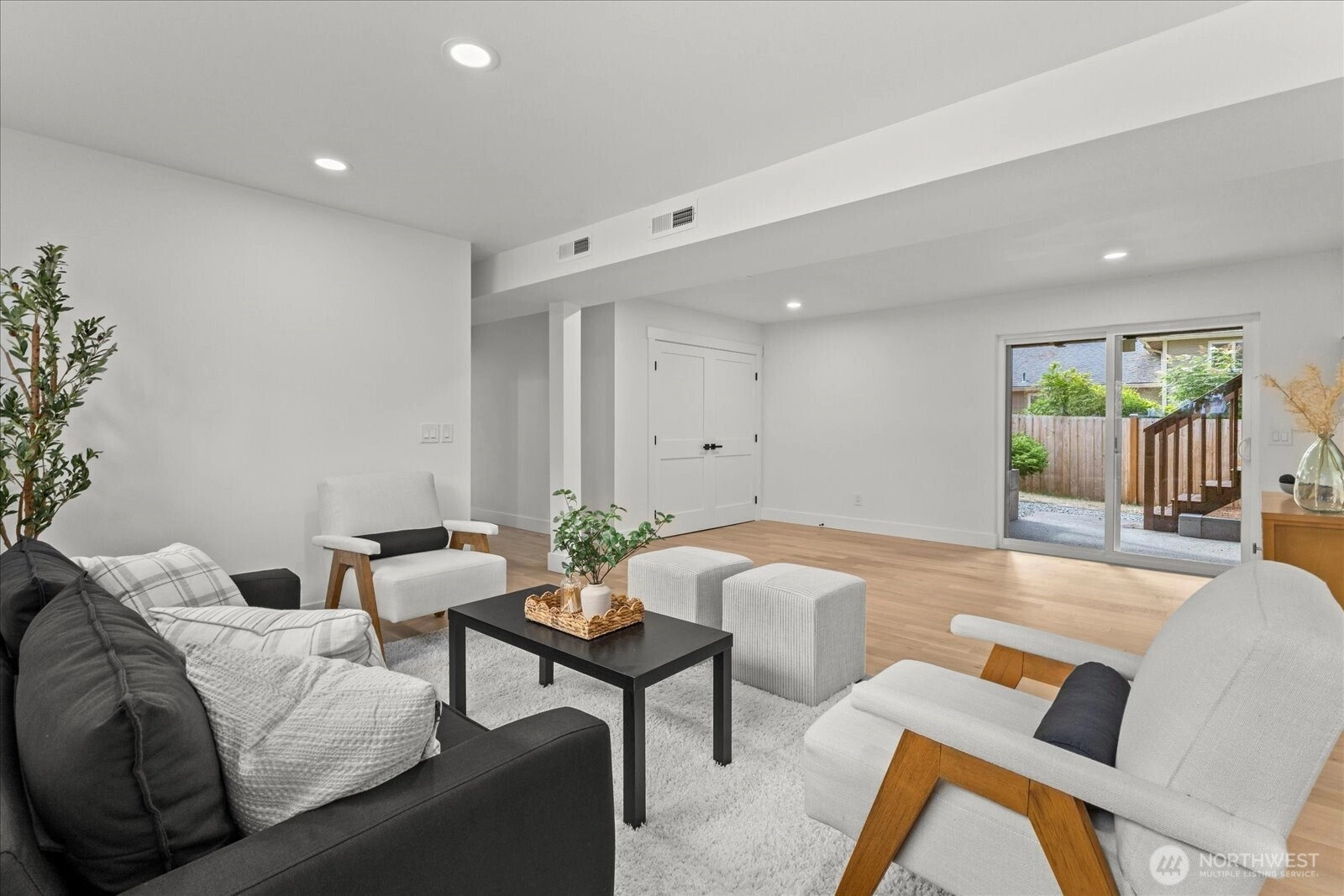 Embrace upscale Kirkland living in this fully renovated home! Situated on a peaceful cul-de-sac lot, STEPS away from Square park. One of the best parks kirkland has to offer. This home offers an exceptional living experience with every detail meticulously designed for style and functionality. Main level feature an open concept kitchen w/ beautiful waterfall quartz counters & new high end LG appliances. Easy access to large deck for entertaining guests or enjoying the PNW beauty overlooking nicely sized backyard. Engineered hardwood throughout the whole house! Primary suite on main level with access to back deck along w/ 2 additional rooms. Lower level features a large living space and a secondary primary suite! AC equipped. Don't miss this!
