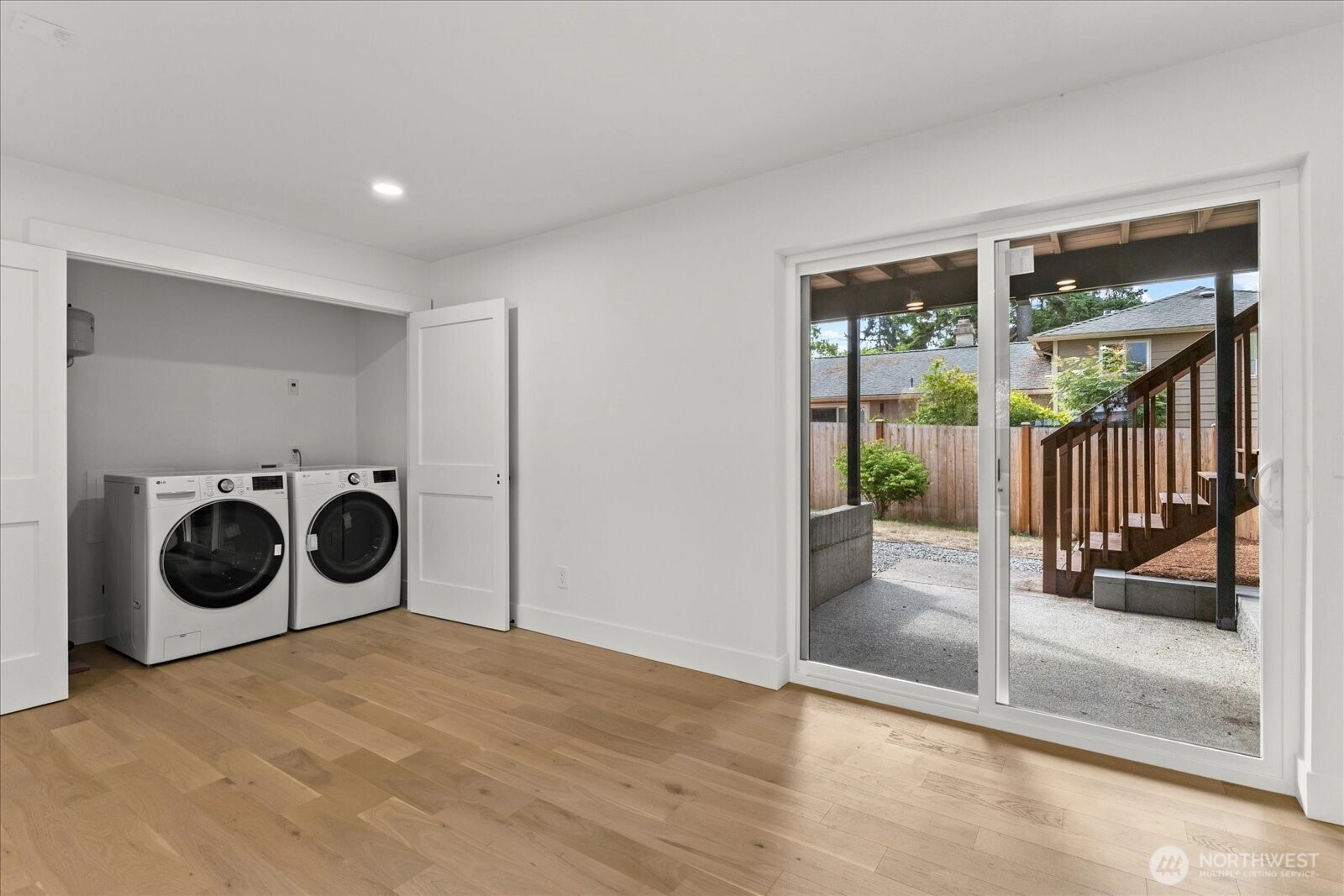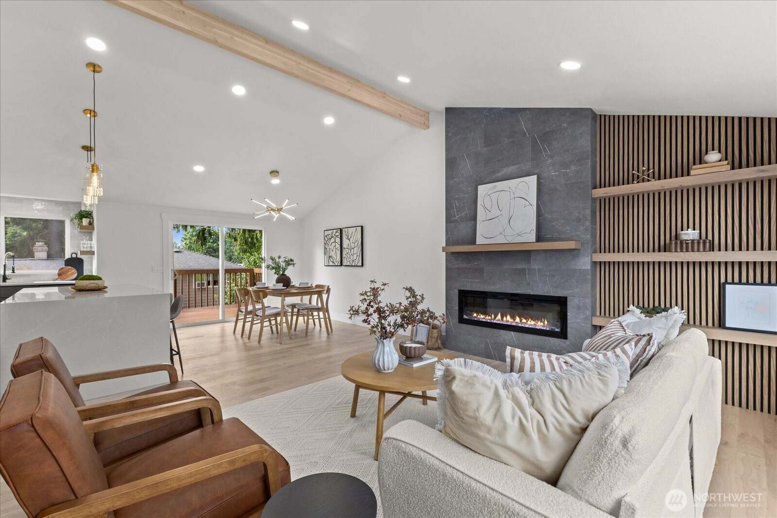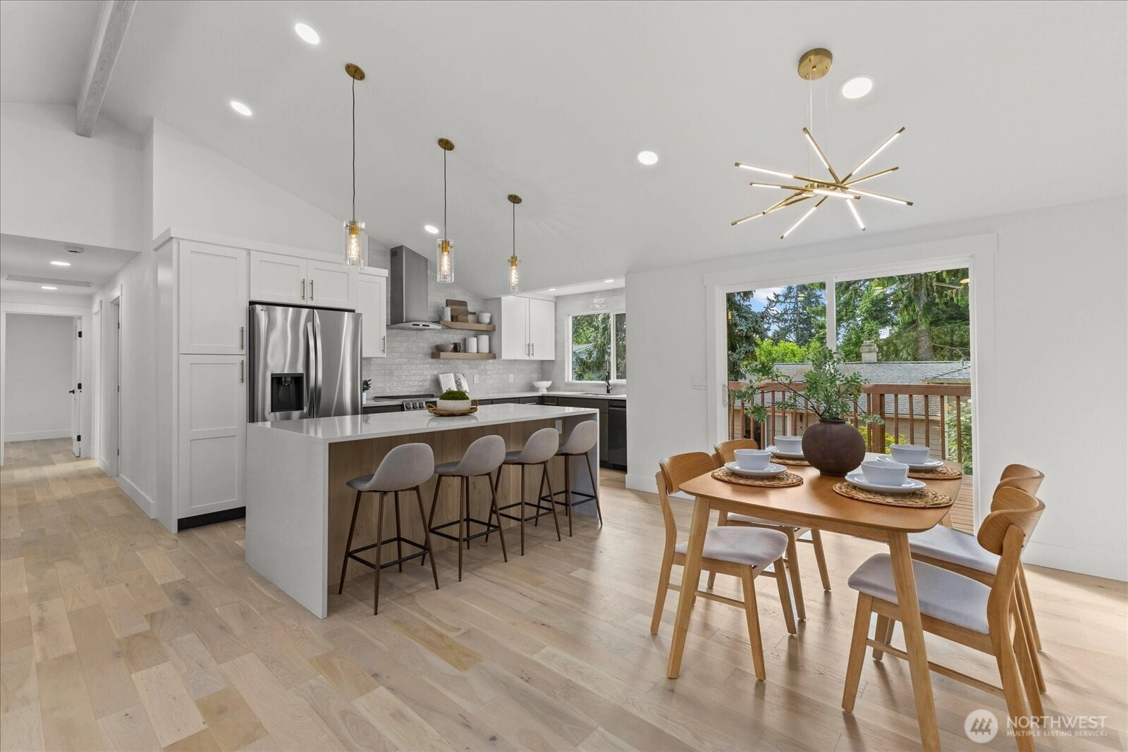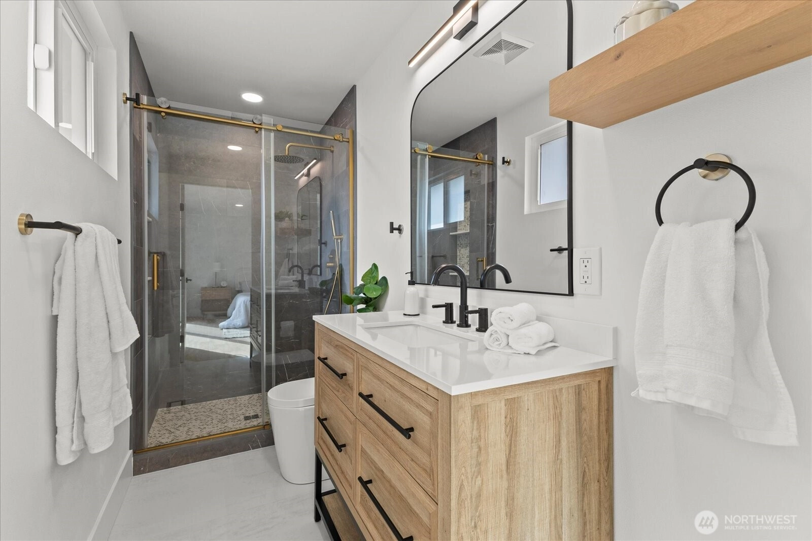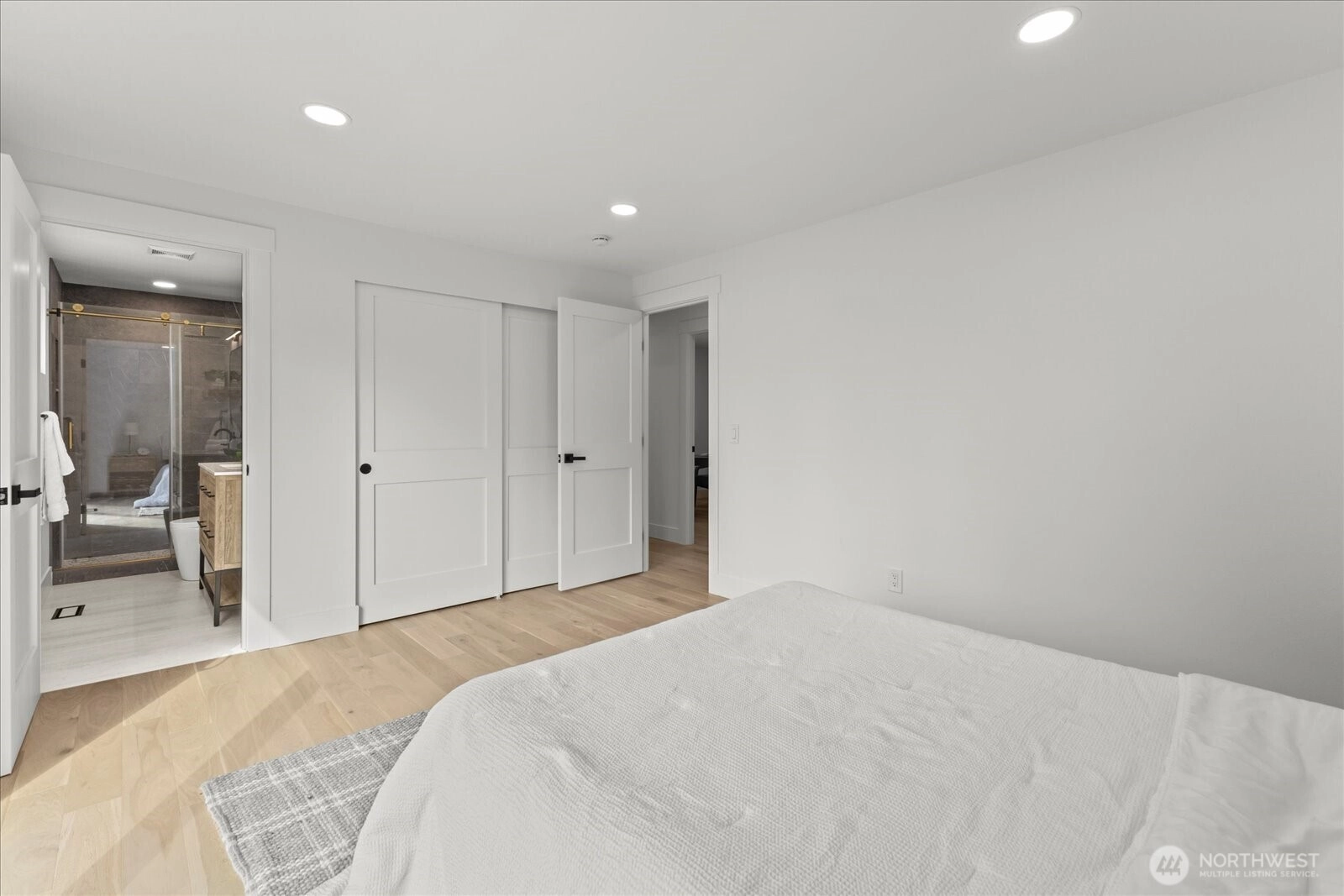 Embrace upscale Kirkland living in this fully renovated home! Situated on a peaceful cul-de-sac lot, STEPS away from Square park. One of the best parks kirkland has to offer. This home offers an exceptional living experience with every detail meticulously designed for style and functionality. Main level feature an open concept kitchen w/ beautiful waterfall quartz counters & new high end LG appliances. Easy access to large deck for entertaining guests or enjoying the PNW beauty overlooking nicely sized backyard. Engineered hardwood throughout the whole house! Primary suite on main level with access to back deck along w/ 2 additional rooms. Lower level features a large living space and a secondary primary suite! AC equipped. Don't miss this!