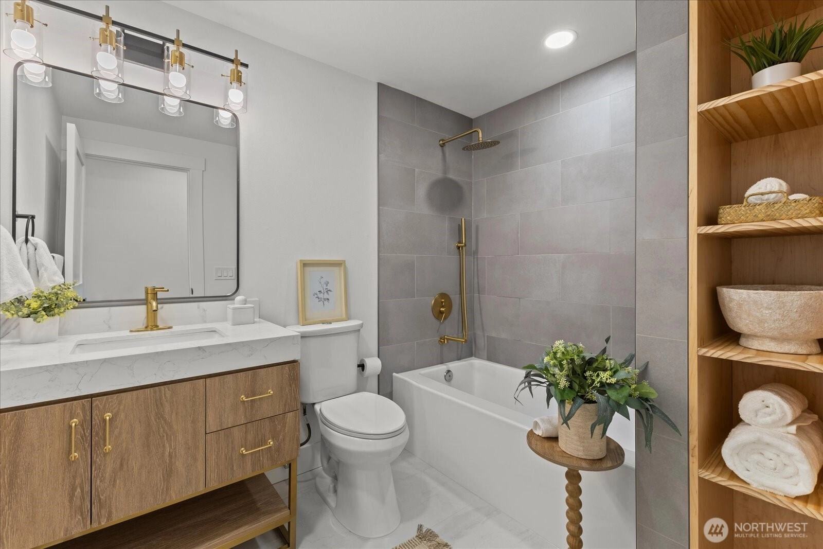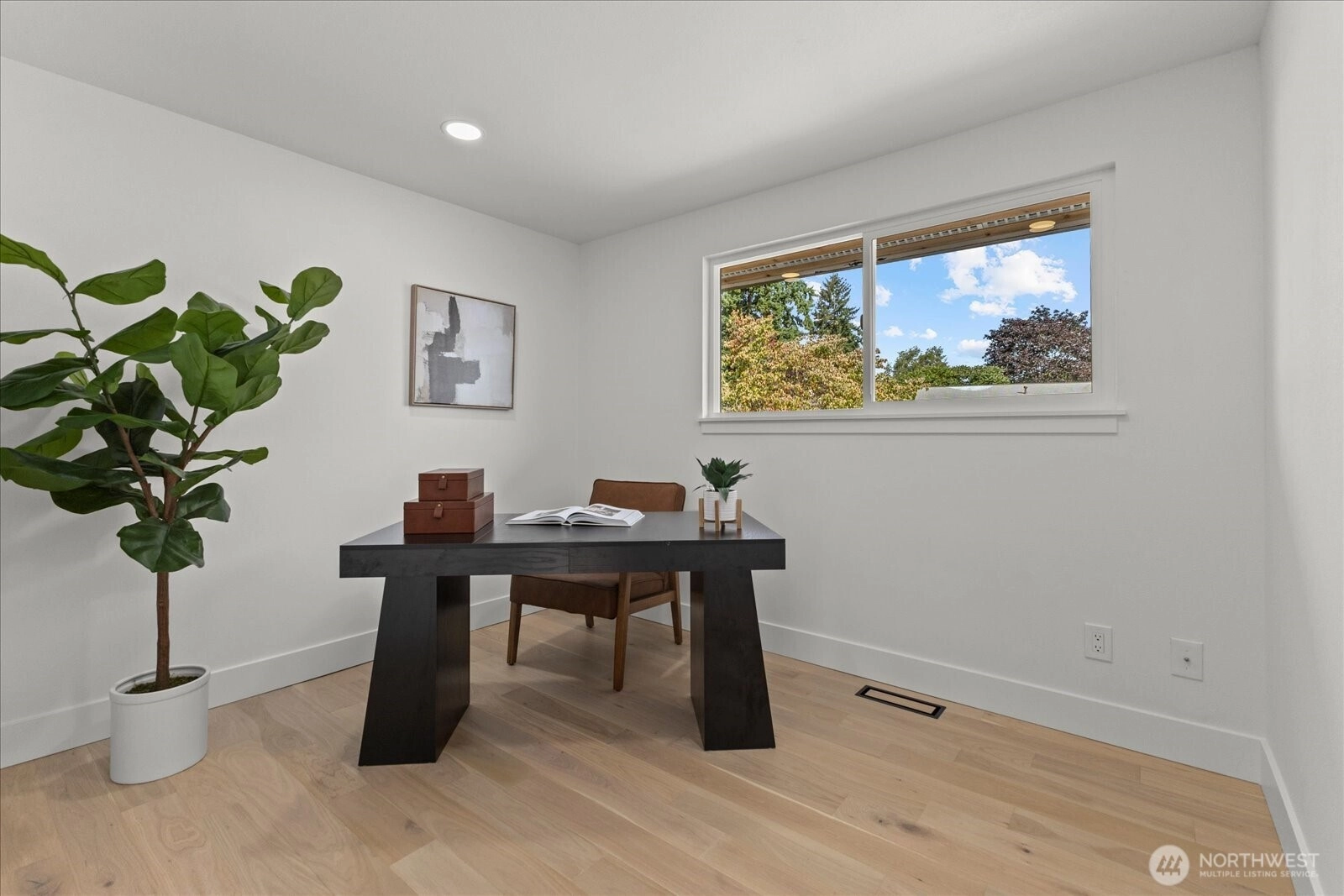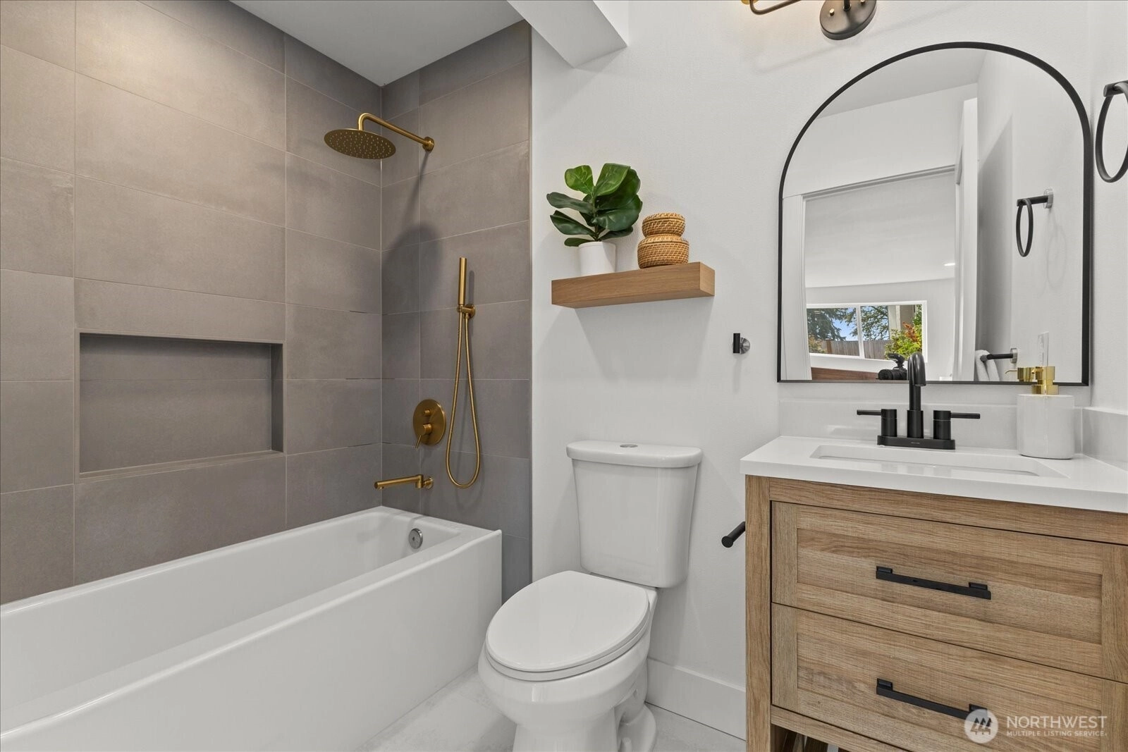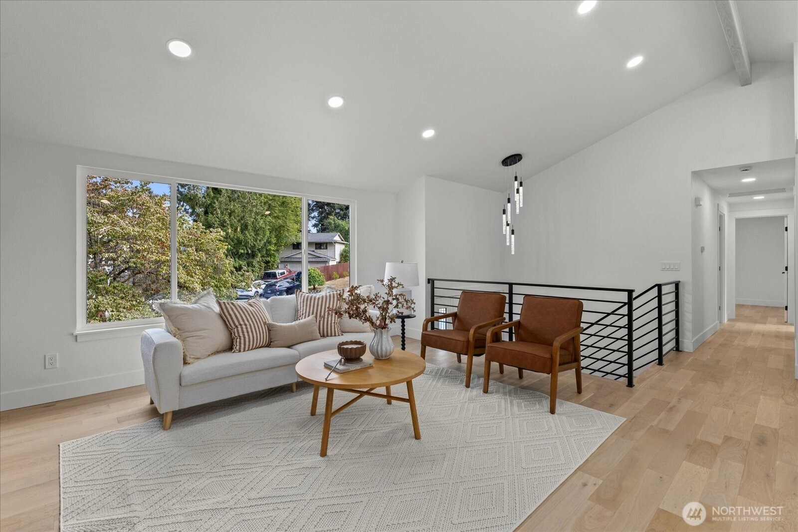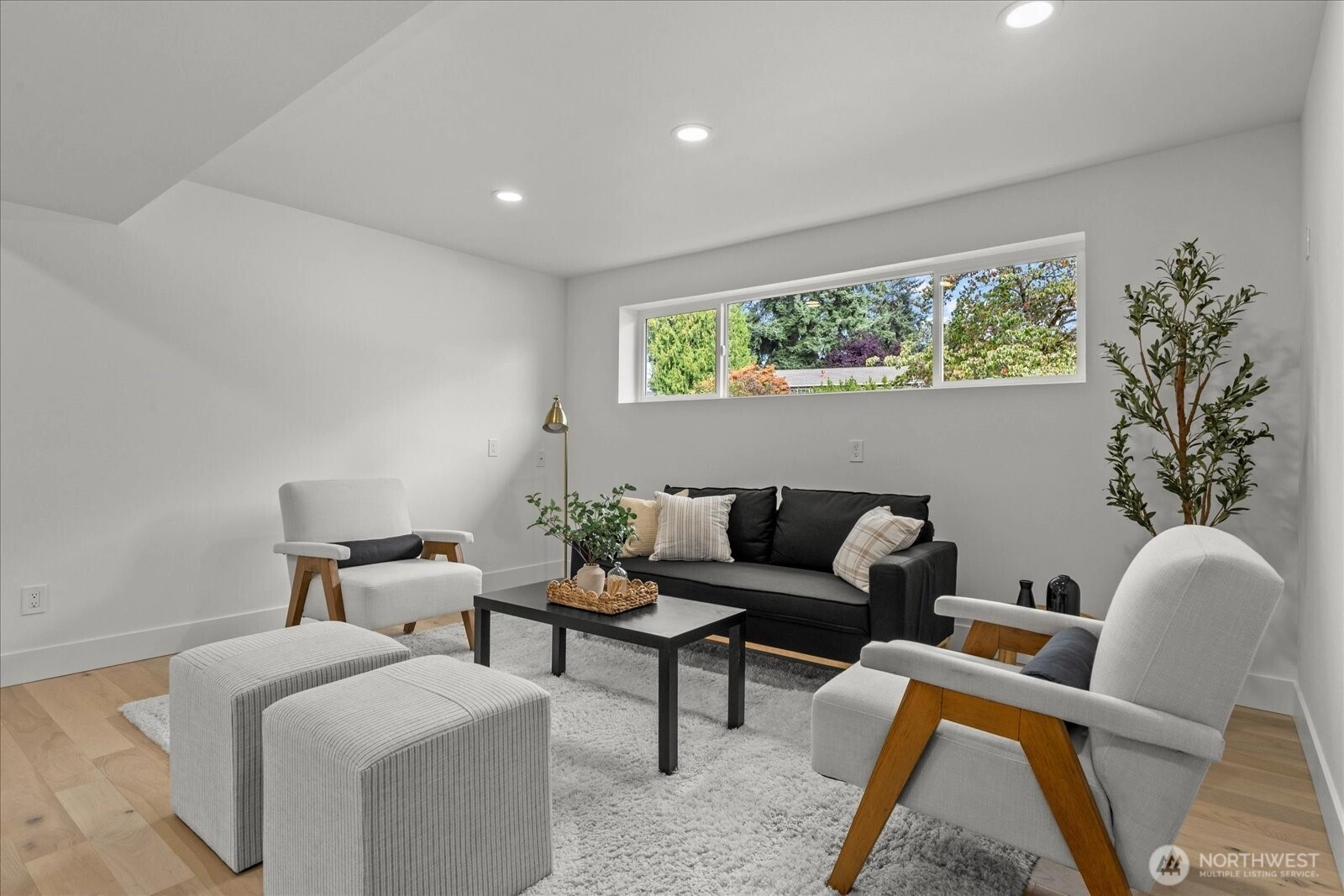 Embrace upscale Kirkland living in this fully renovated home! Situated on a peaceful cul-de-sac lot, STEPS away from Square park. One of the best parks kirkland has to offer. This home offers an exceptional living experience with every detail meticulously designed for style and functionality. Main level feature an open concept kitchen w/ beautiful waterfall quartz counters & new high end LG appliances. Easy access to large deck for entertaining guests or enjoying the PNW beauty overlooking nicely sized backyard. Engineered hardwood throughout the whole house! Primary suite on main level with access to back deck along w/ 2 additional rooms. Lower level features a large living space and a secondary primary suite! AC equipped. Don't miss this!